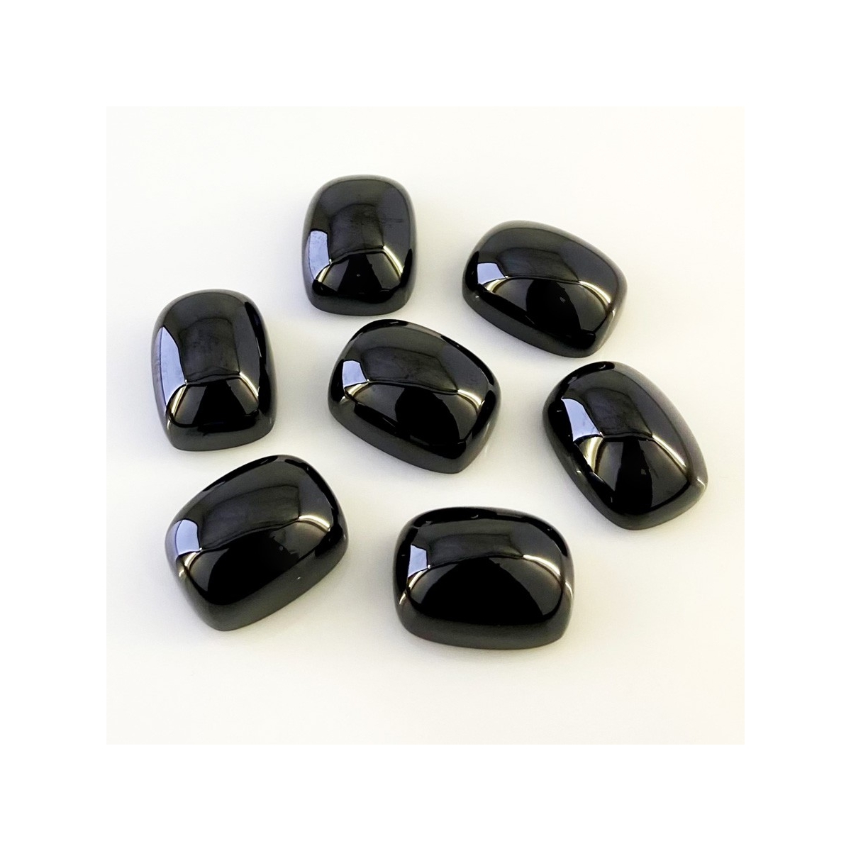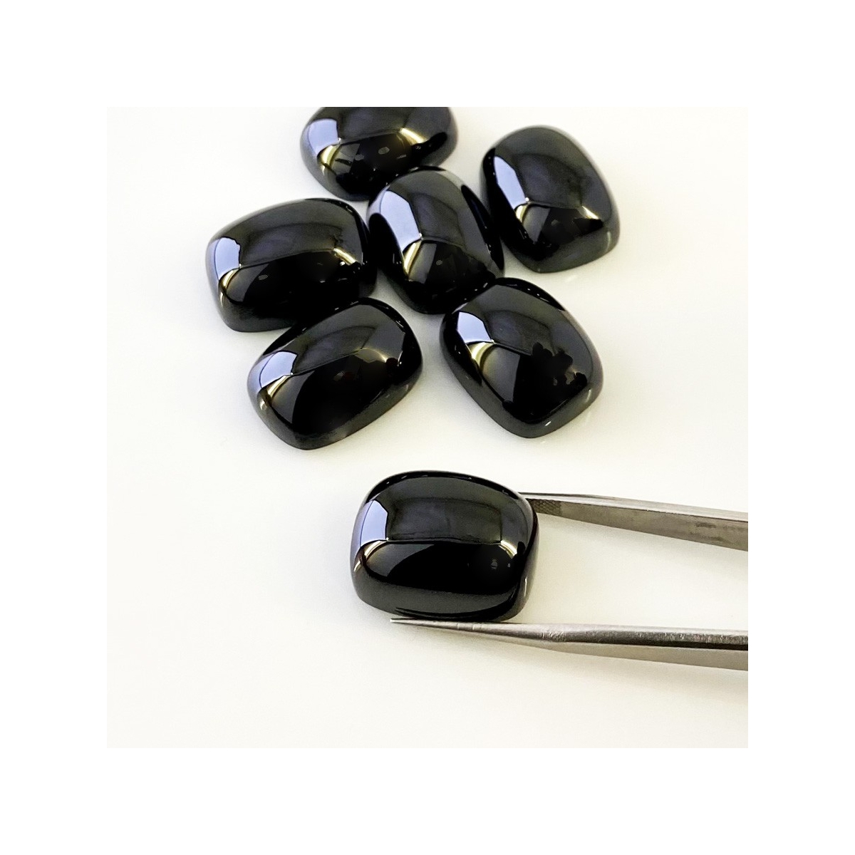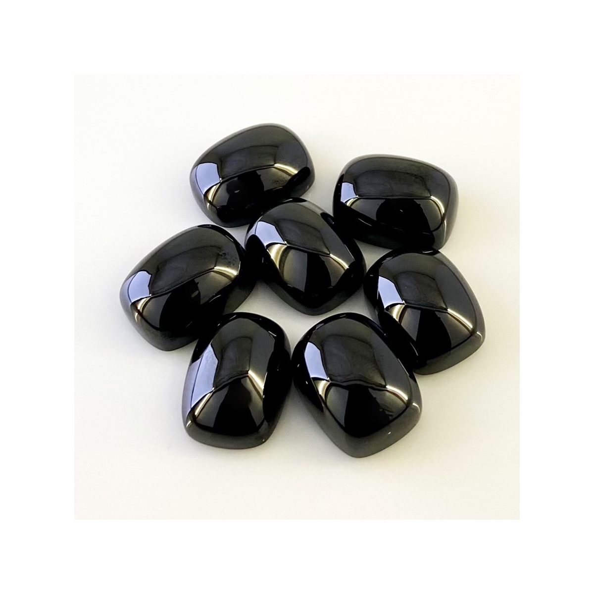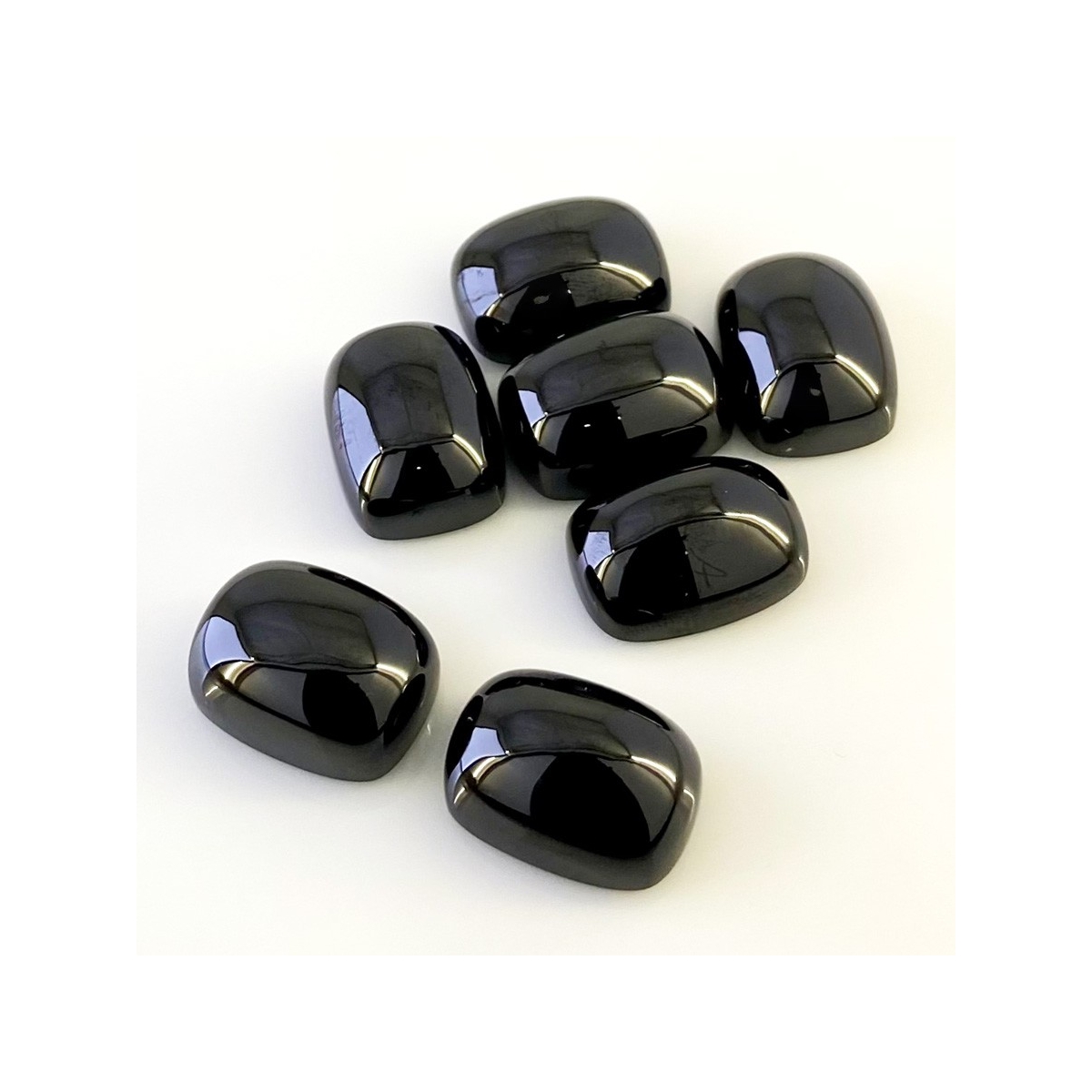 Buy This "AAA" Grade 20x15mm Smooth Cushion Shape Natural Black Spinel (Un-Treated) Cabochons Parcel. You Will Receive 7 Pcs. With a Total Weight of 248.15 Carats. This Black Spinel Stone is Originated From Africa and Masterfully Handcrafted by The Experienced Artisans of Jaipur (India).
