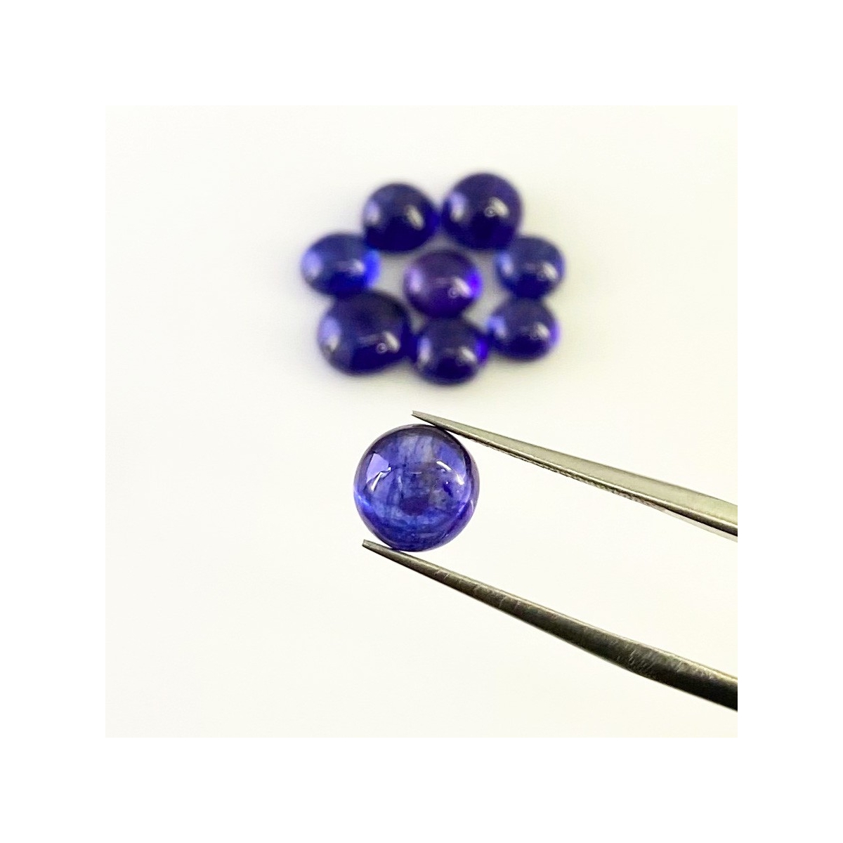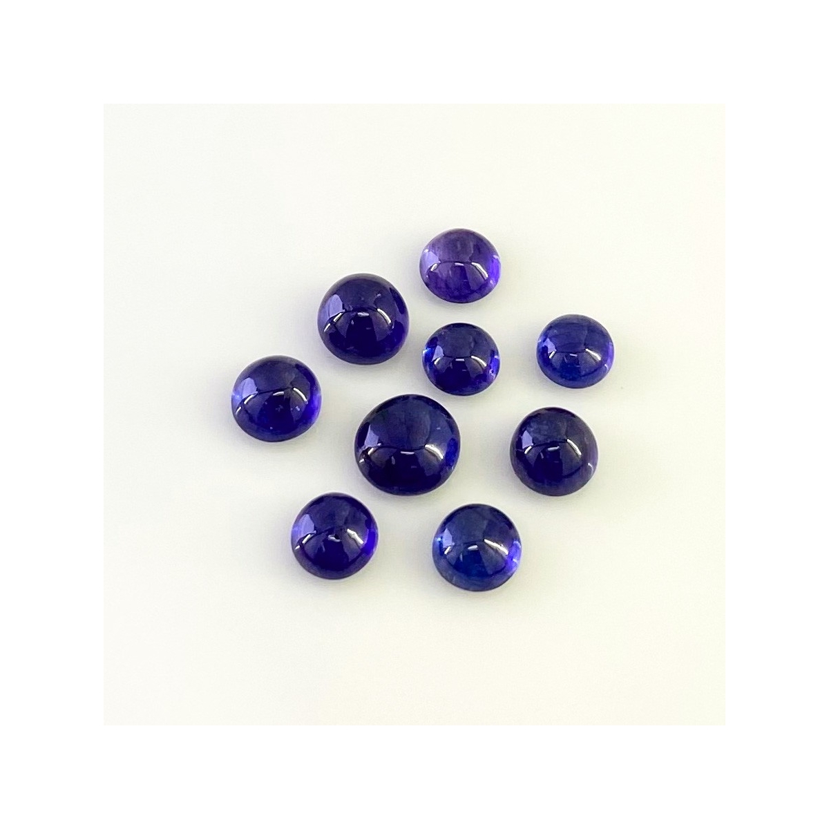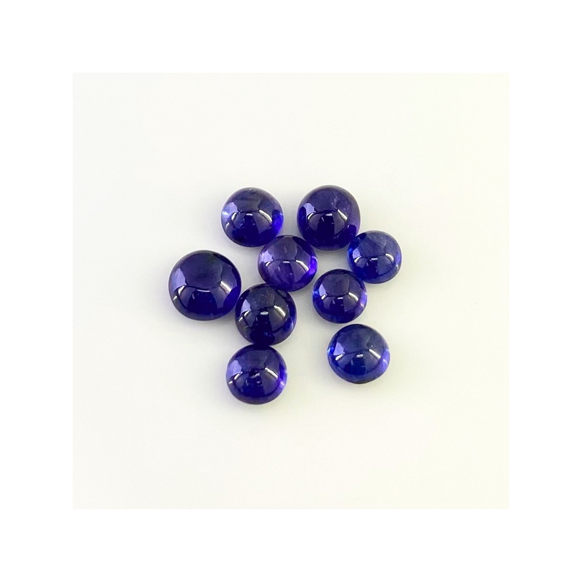 Buy This "AA" Grade 6.5-8.5mm Smooth Round Shape Natural Blue Sapphire (Glass Filled) Cabochons Parcel. You Will Receive 9 Pcs. With a Total Weight of 20.75 Carat. This Blue Sapphire Stone is Originated From Africa and Masterfully Handcrafted by The Experienced Artisans of Jaipur (India).