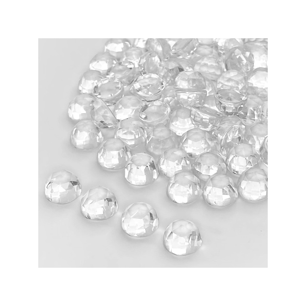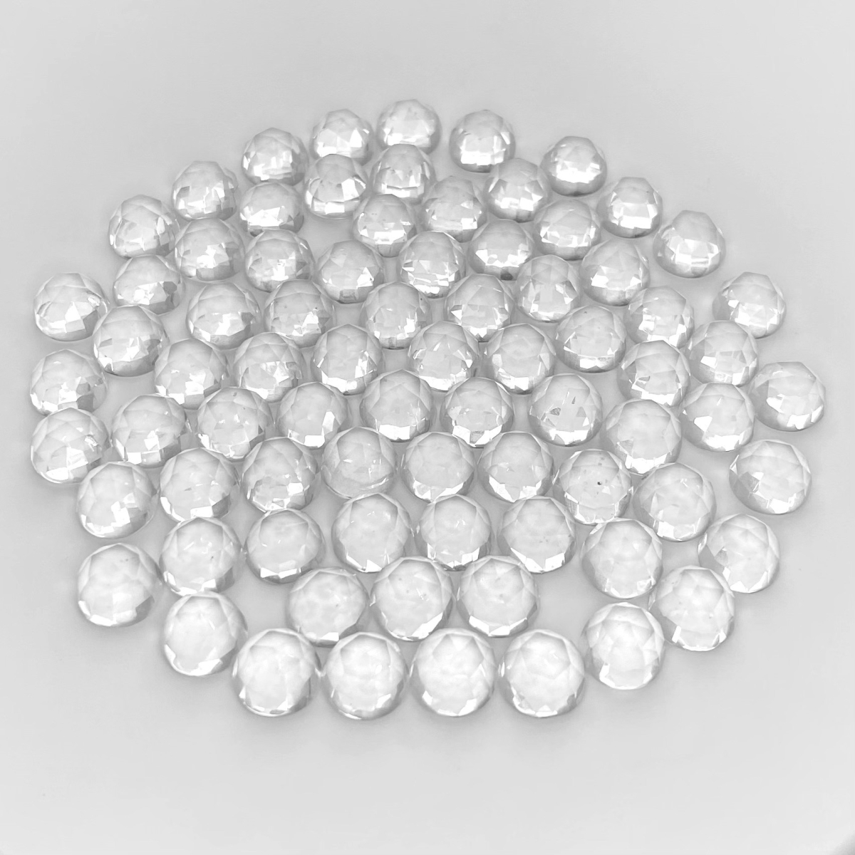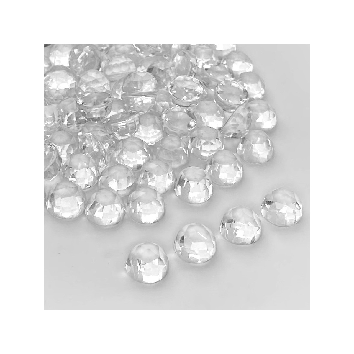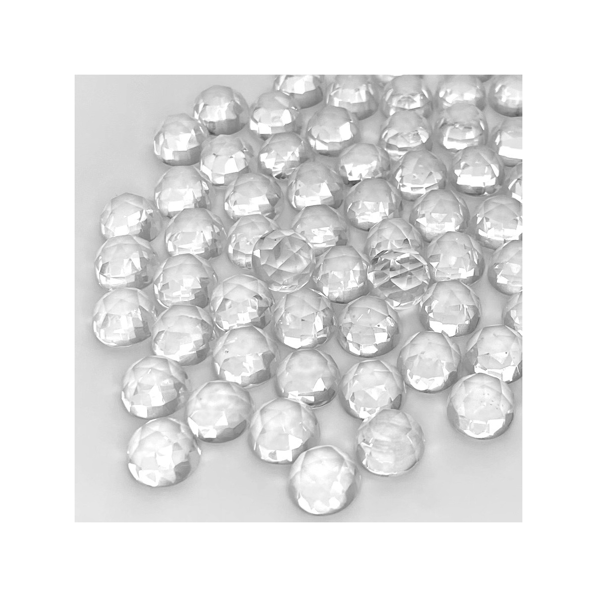 Buy This "AAA" Grade 10mm Faceted Round Shape Natural Crystal Quartz (Un-Treated) Cabochons Parcel. You Will Receive 94 Pcs. With a Total Weight of 396 Cts.. This Crystal Quartz Stone is Originated From Brazil and Masterfully Handcrafted by The Experienced Artisans of Jaipur (India).