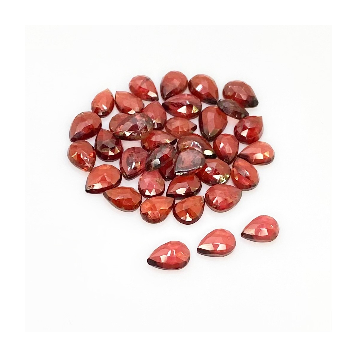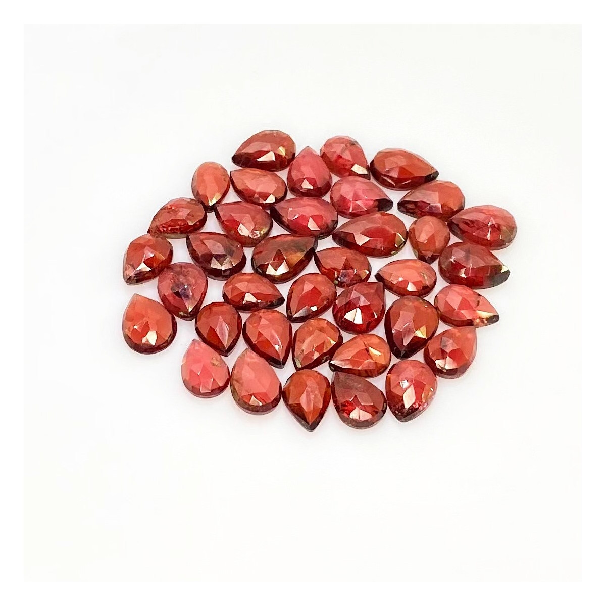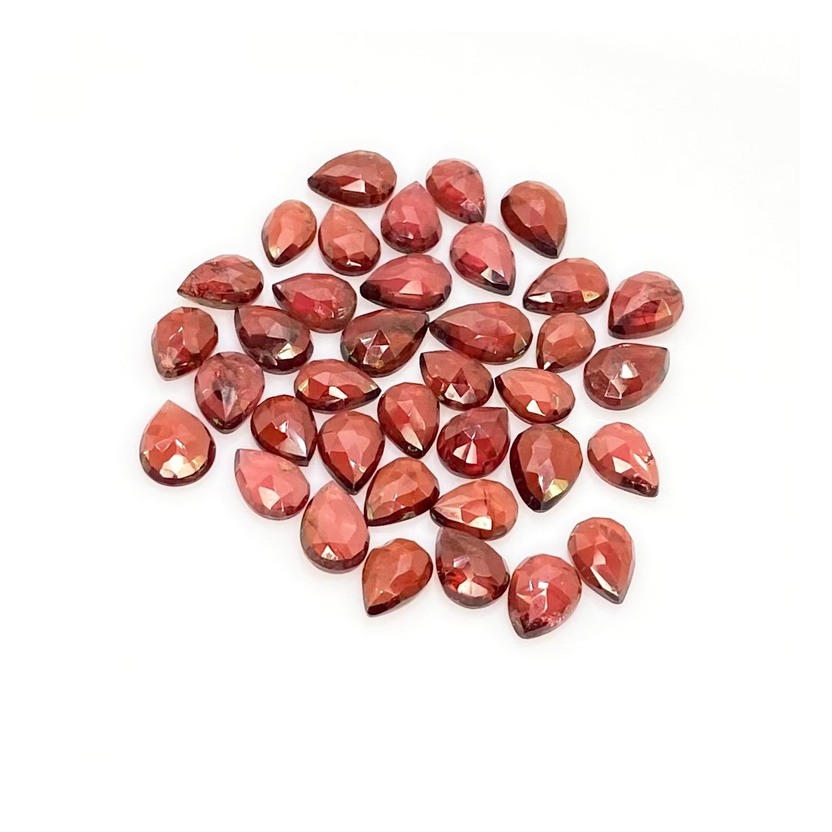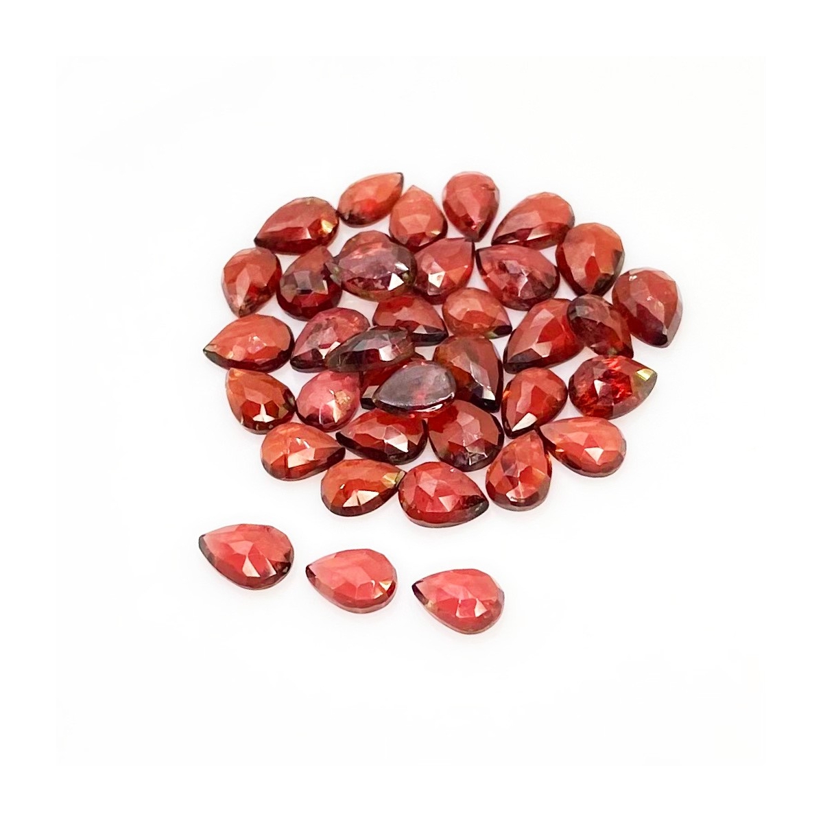 Buy This "AA" Grade 7x5-8x5.5mm Rose Cut Pear Shape Natural Garnet (Un-Treated) Cabochons Parcel. You Will Receive 37 Pcs. With a Total Weight of 36.82 Carat. This Garnet Stone is Originated From Mozambique and Masterfully Handcrafted by The Experienced Artisans of Jaipur (India).