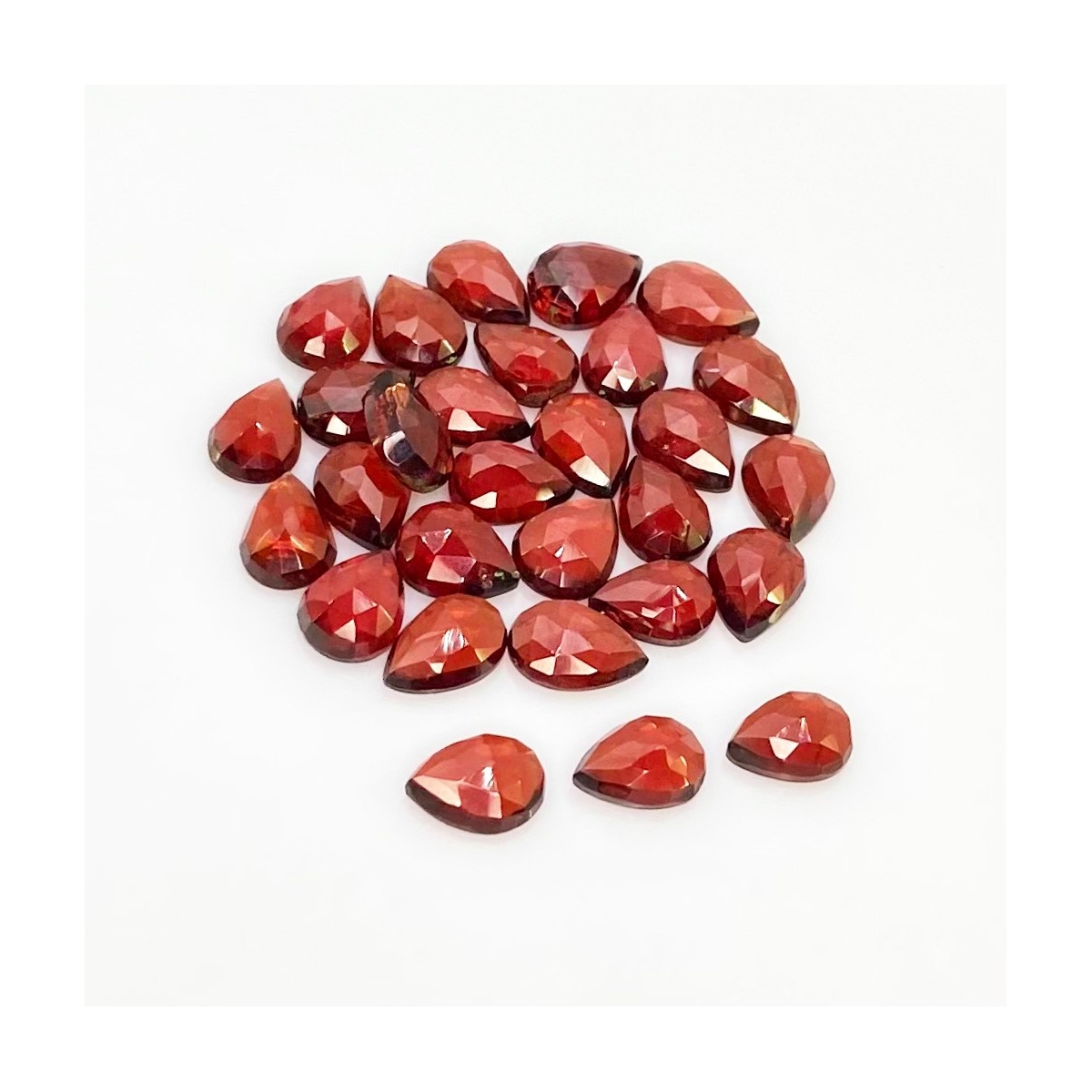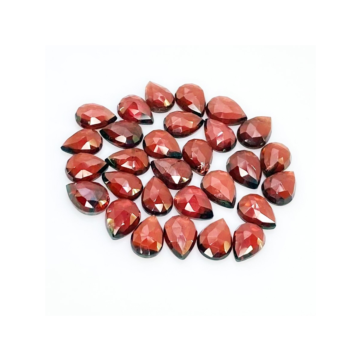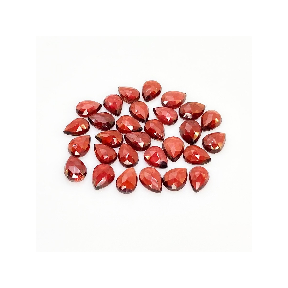 Buy This "AA" Grade 8x6mm Rose Cut Pear Shape Natural Garnet (Un-Treated) Cabochons Parcel. You Will Receive 29 Pcs. With a Total Weight of 39.5 Carat. This Garnet Stone is Originated From Mozambique and Masterfully Handcrafted by The Experienced Artisans of Jaipur (India).