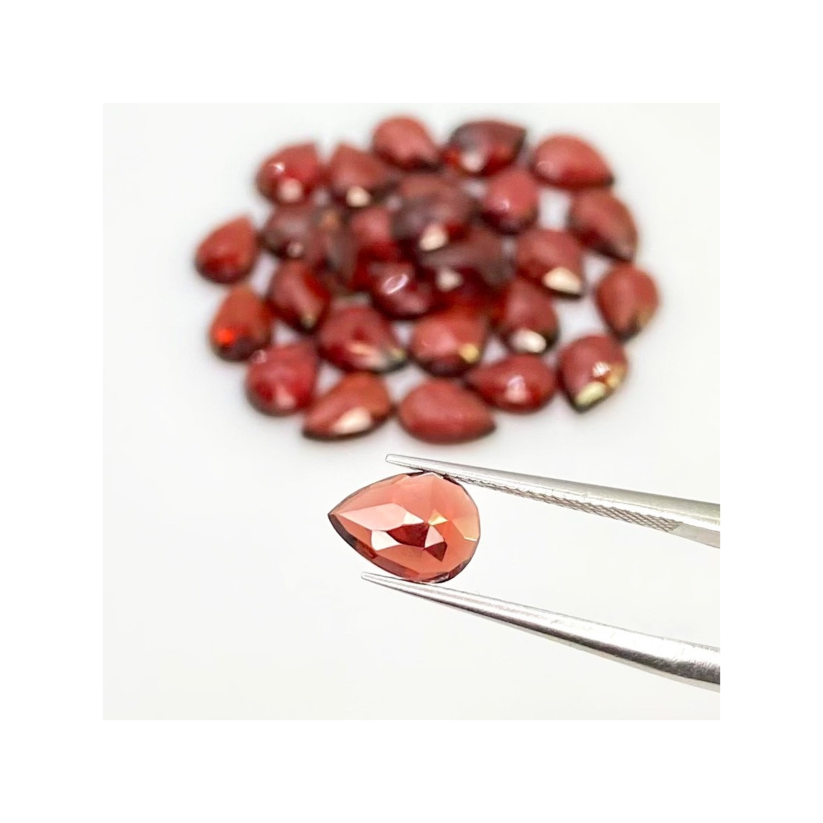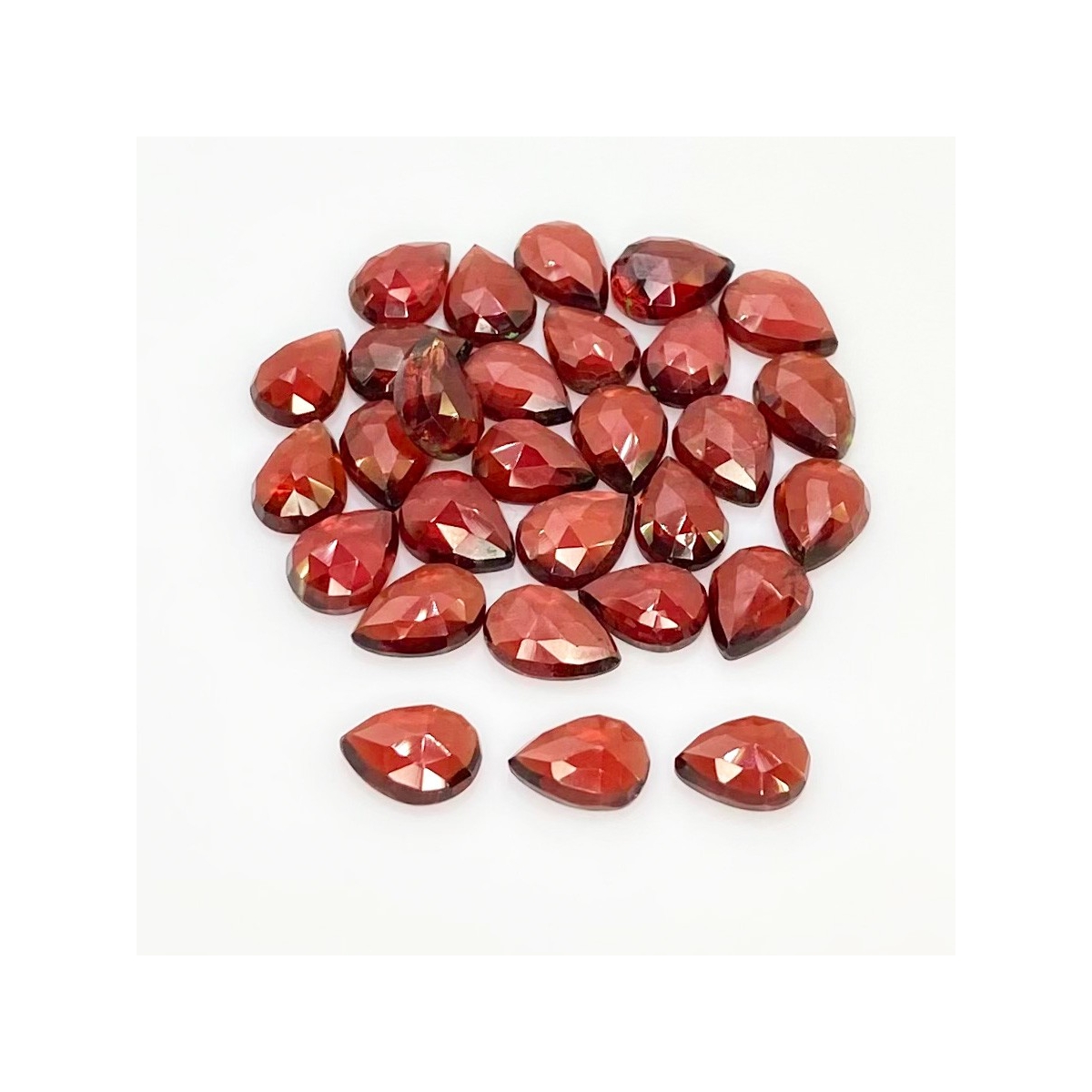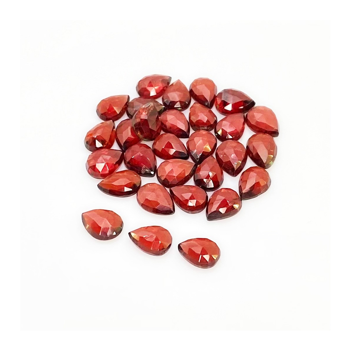 Buy This "AA" Grade 8x6mm Rose Cut Pear Shape Natural Garnet (Un-Treated) Cabochons Parcel. You Will Receive 29 Pcs. With a Total Weight of 39.5 Carat. This Garnet Stone is Originated From Mozambique and Masterfully Handcrafted by The Experienced Artisans of Jaipur (India).