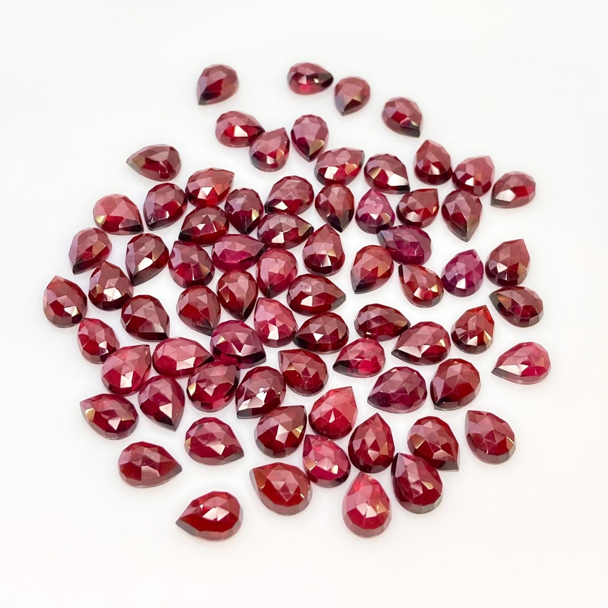 Buy This "AA" Grade 8x6mm Rose Cut Pear Shape Natural Garnet (Un-Treated) Cabochons Parcel. You Will Receive 72 Pcs. With a Total Weight of 119 Carat. This Garnet Stone is Originated From Mozambique and Masterfully Handcrafted by The Experienced Artisans of Jaipur (India).