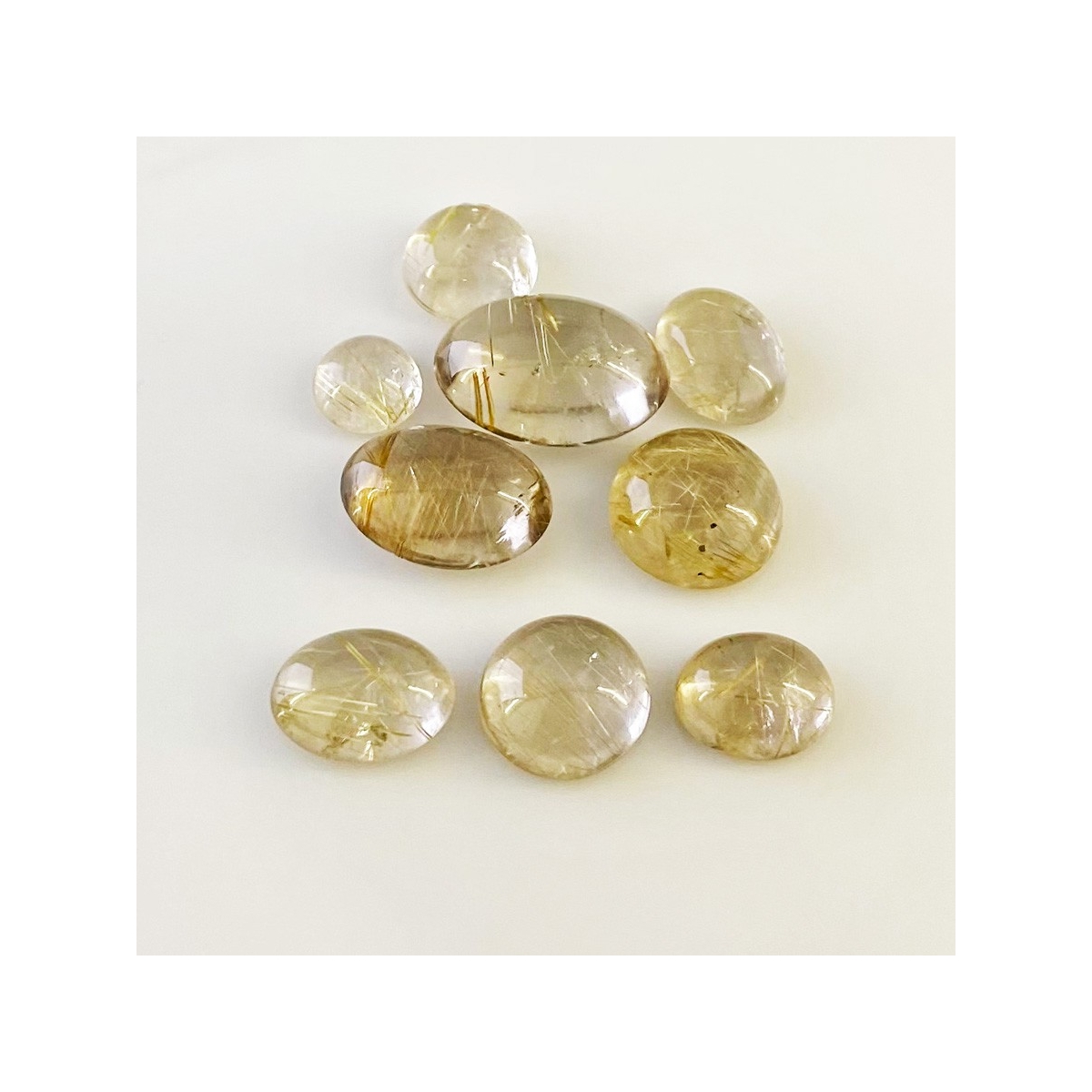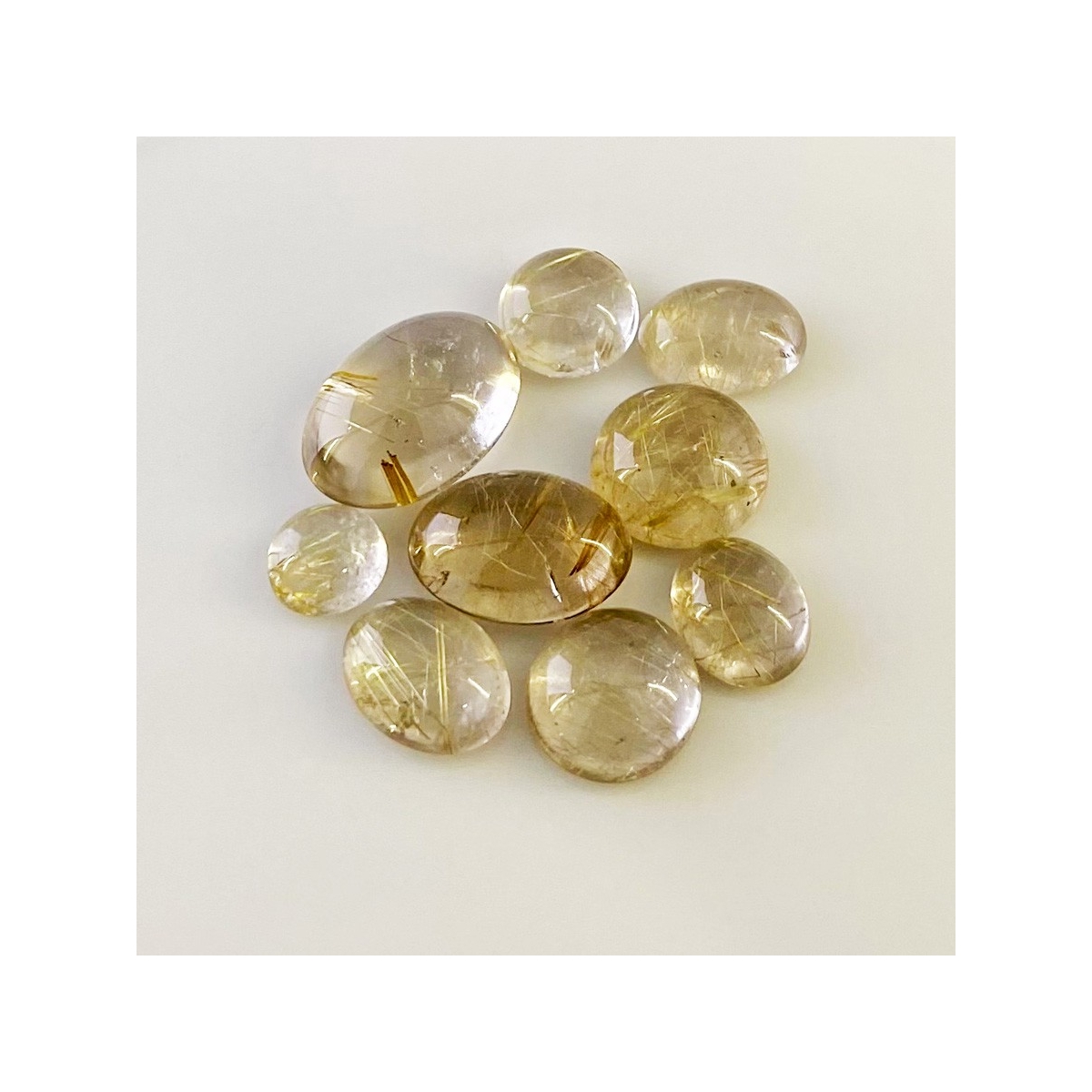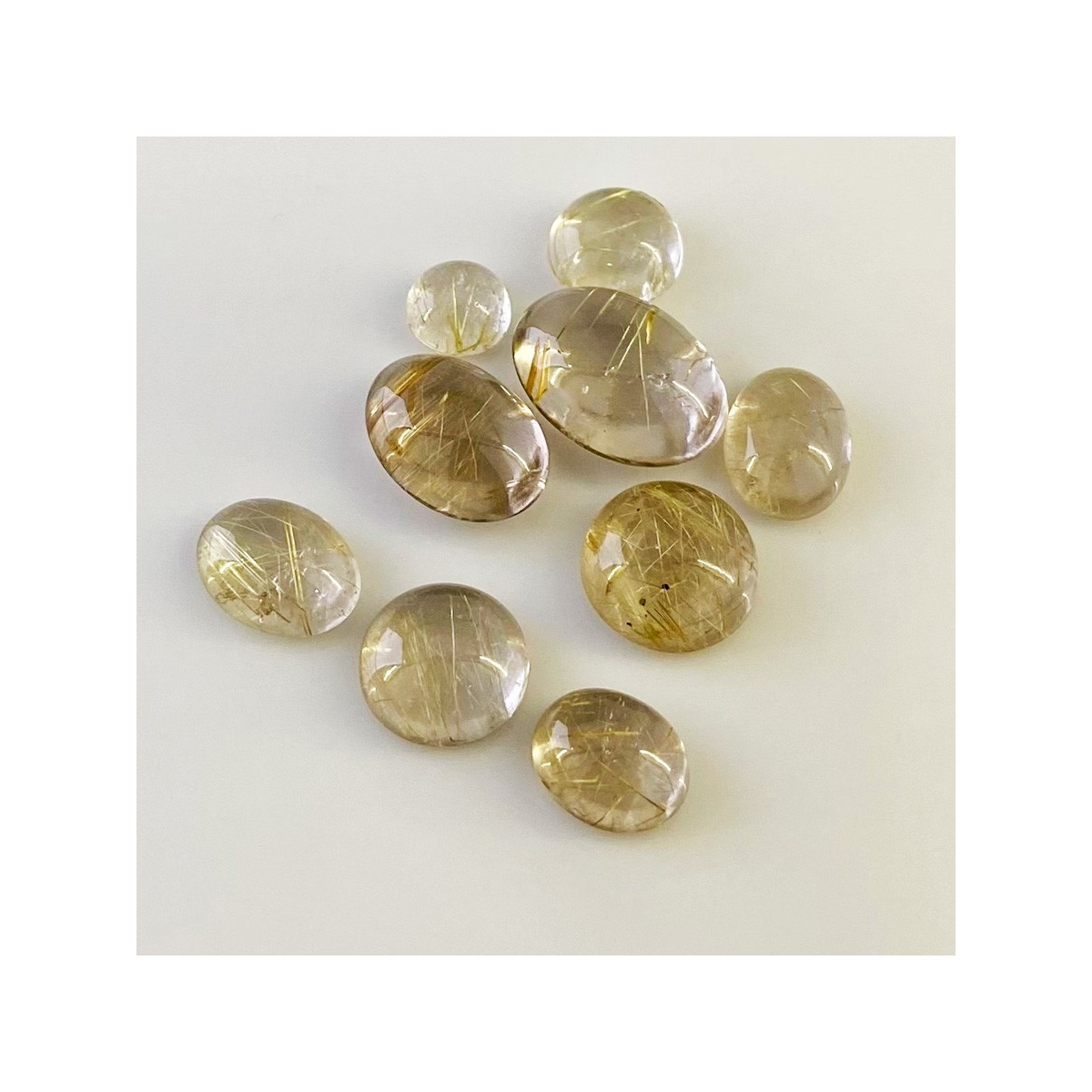Buy This "A" Grade 2.65-15.20mm Smooth Mix Shape Natural Golden Rutile (Un-Treated) Cabochons Parcel. You Will Receive 9 Pcs. With a Total Weight of 65.35 Carat. This Golden Rutile Stone is Originated From Brazil and Masterfully Handcrafted by The Experienced Artisans of Jaipur (India).