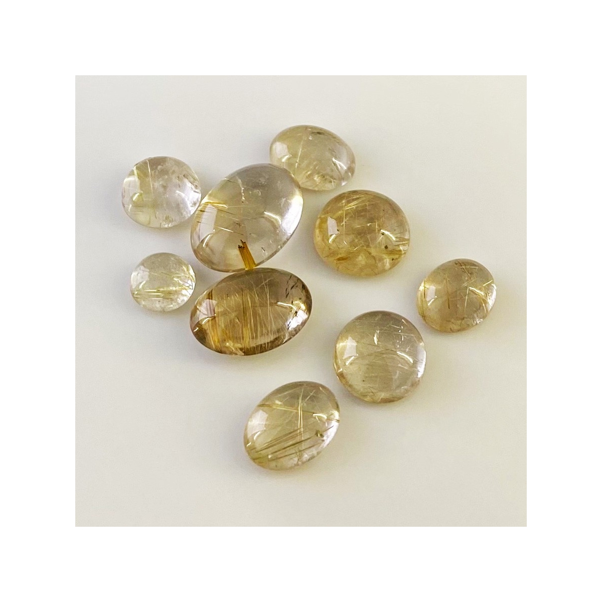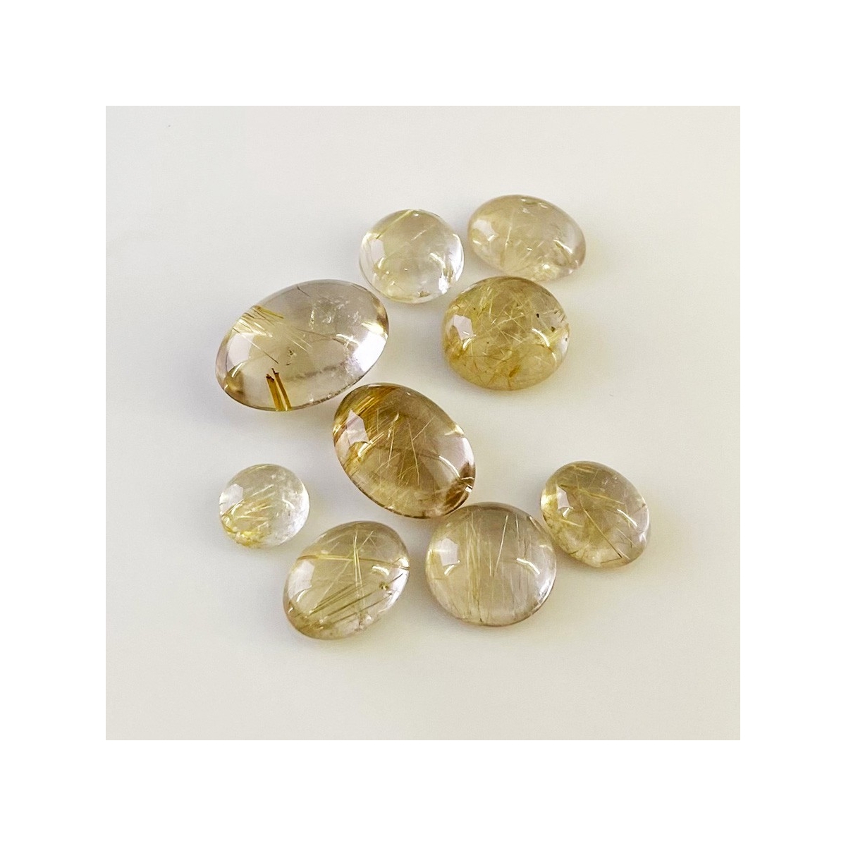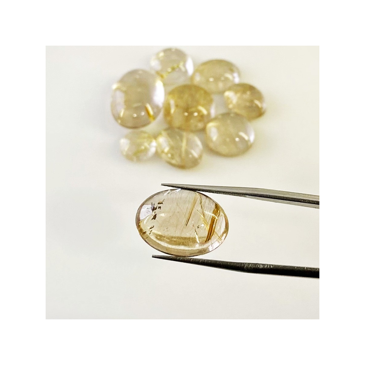 Buy This "A" Grade 2.65-15.20mm Smooth Mix Shape Natural Golden Rutile (Un-Treated) Cabochons Parcel. You Will Receive 9 Pcs. With a Total Weight of 65.35 Carat. This Golden Rutile Stone is Originated From Brazil and Masterfully Handcrafted by The Experienced Artisans of Jaipur (India).