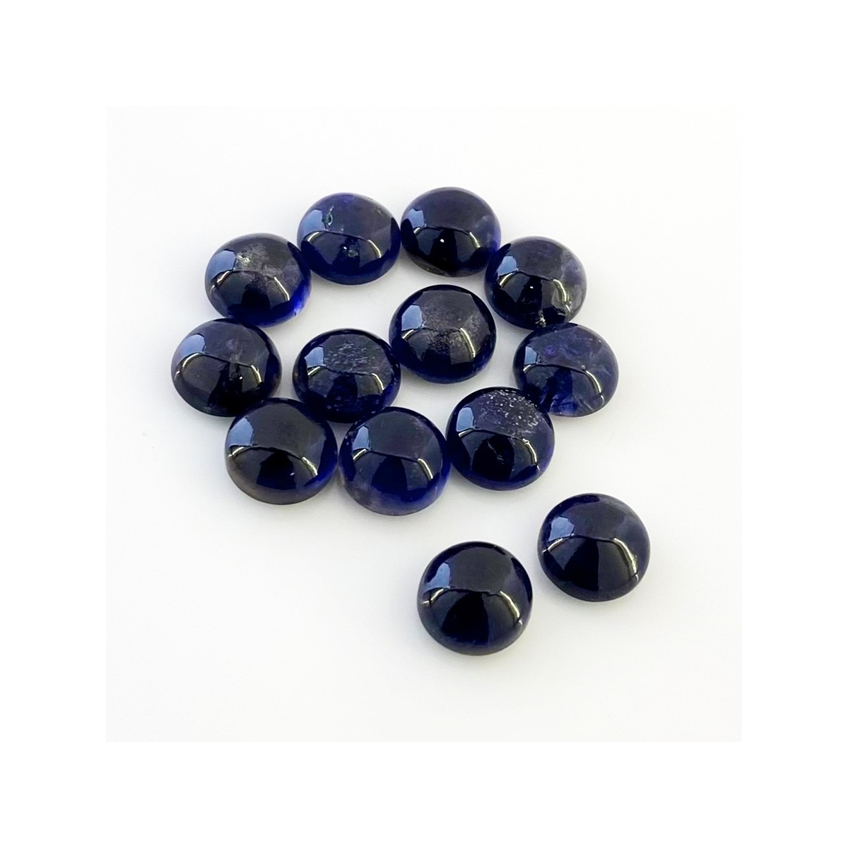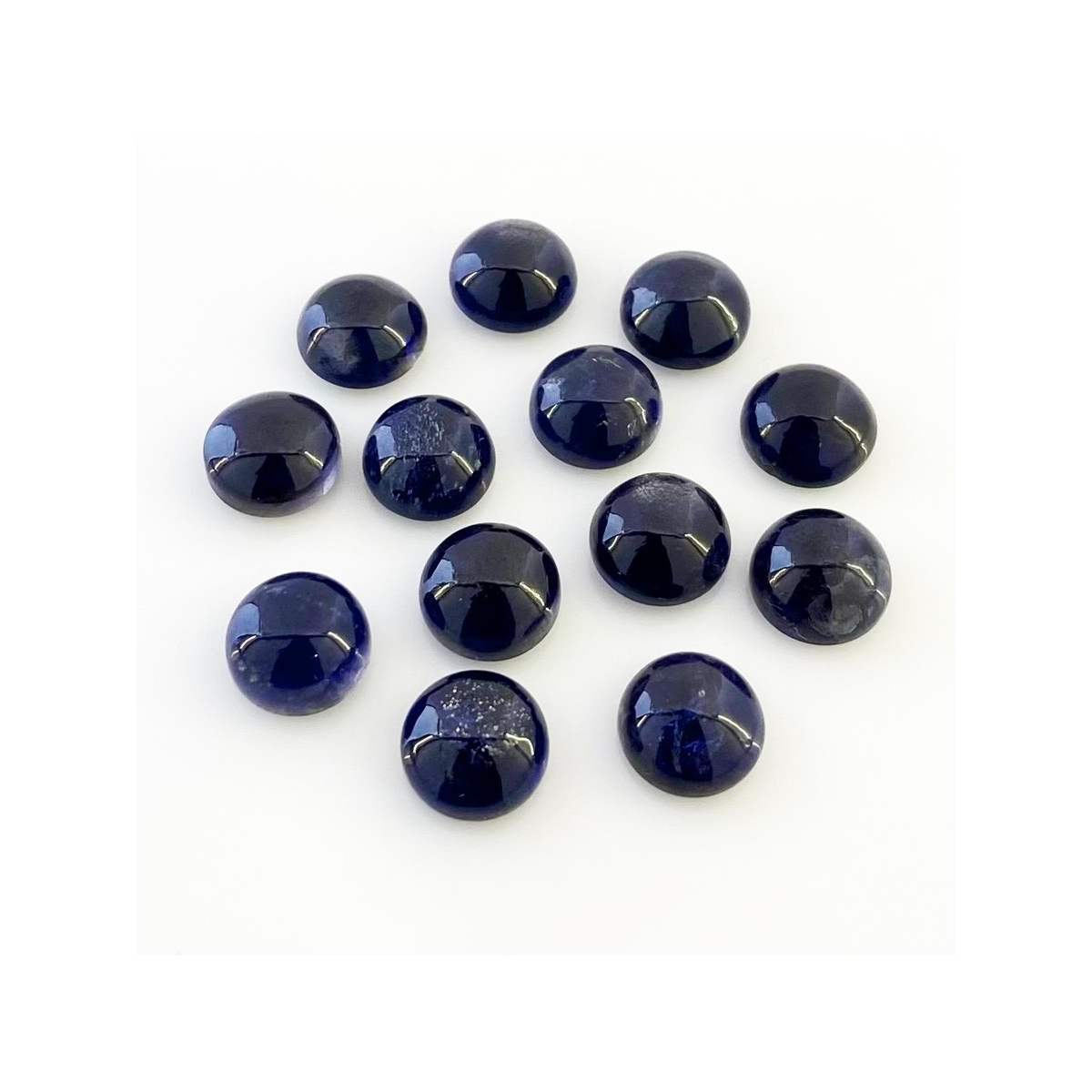 Buy This "A" Grade 9mm Smooth Round Shape Natural Iolite (Un-Treated) Cabochons Parcel. You Will Receive 13 Pcs. With a Total Weight of 35.20 Carat. This Iolite Stone is Originated From India and Masterfully Handcrafted by The Experienced Artisans of Jaipur (India).