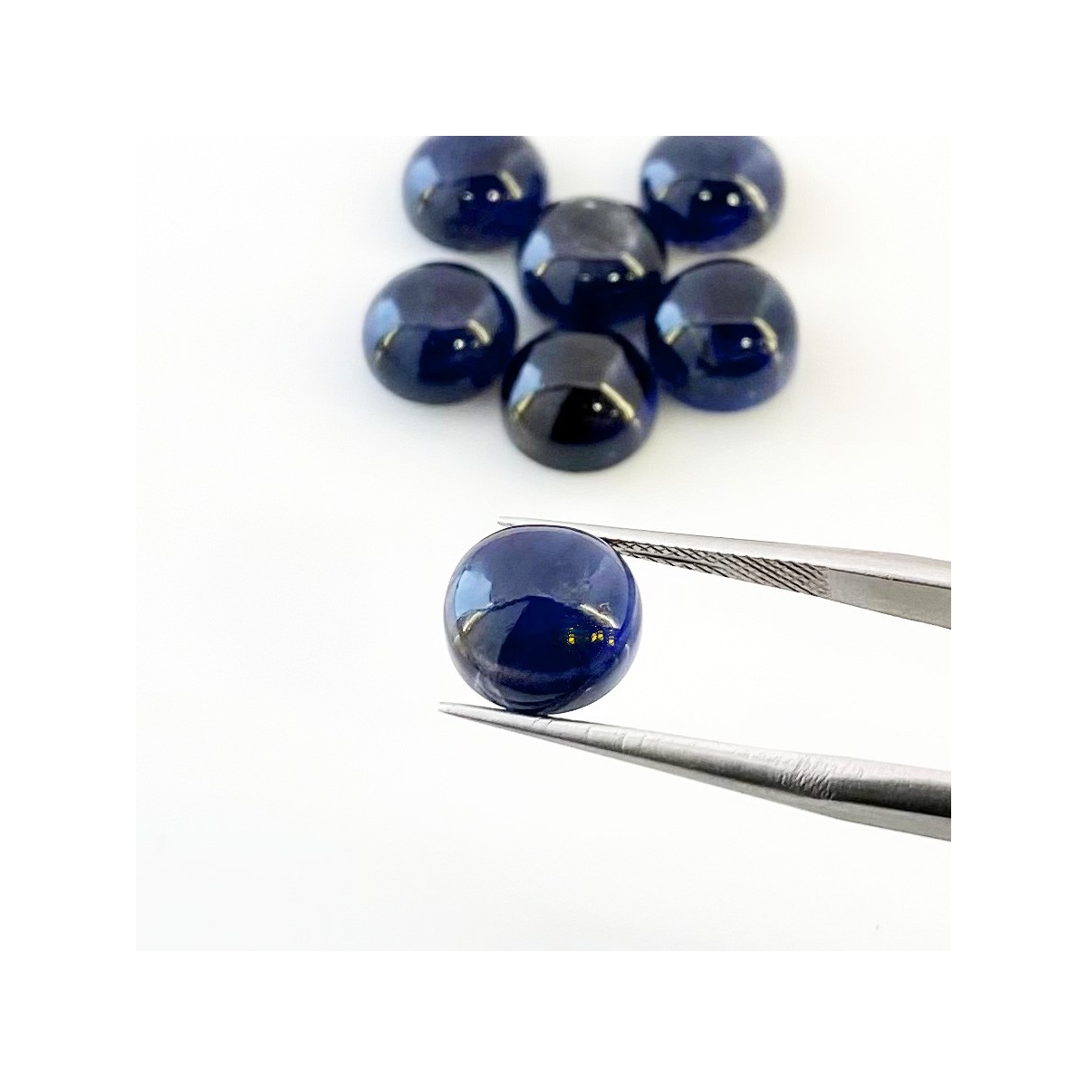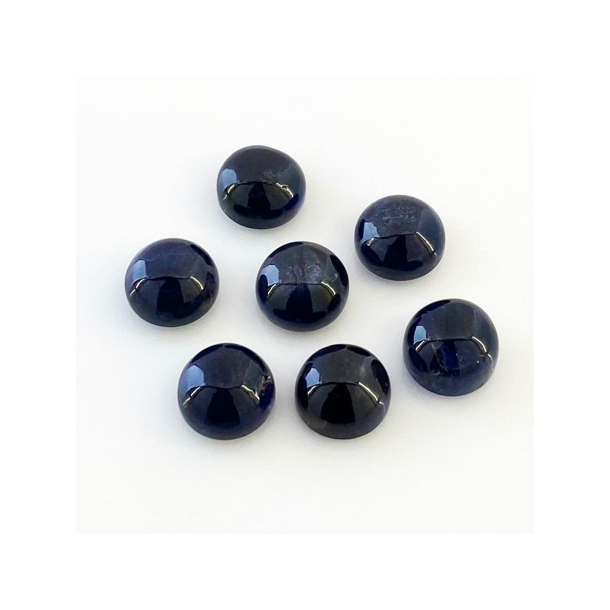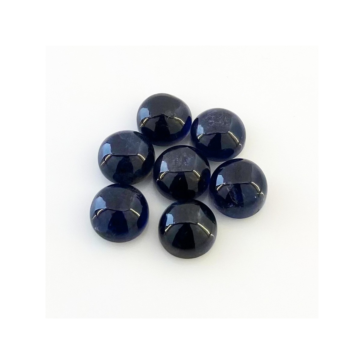Buy This "A" Grade 9mm Smooth Round Shape Natural Iolite (Un-Treated) Cabochons Parcel. You Will Receive 7 Pcs. With a Total Weight of 22.60 Carat. This Iolite Stone is Originated From India and Masterfully Handcrafted by The Experienced Artisans of Jaipur (India).
