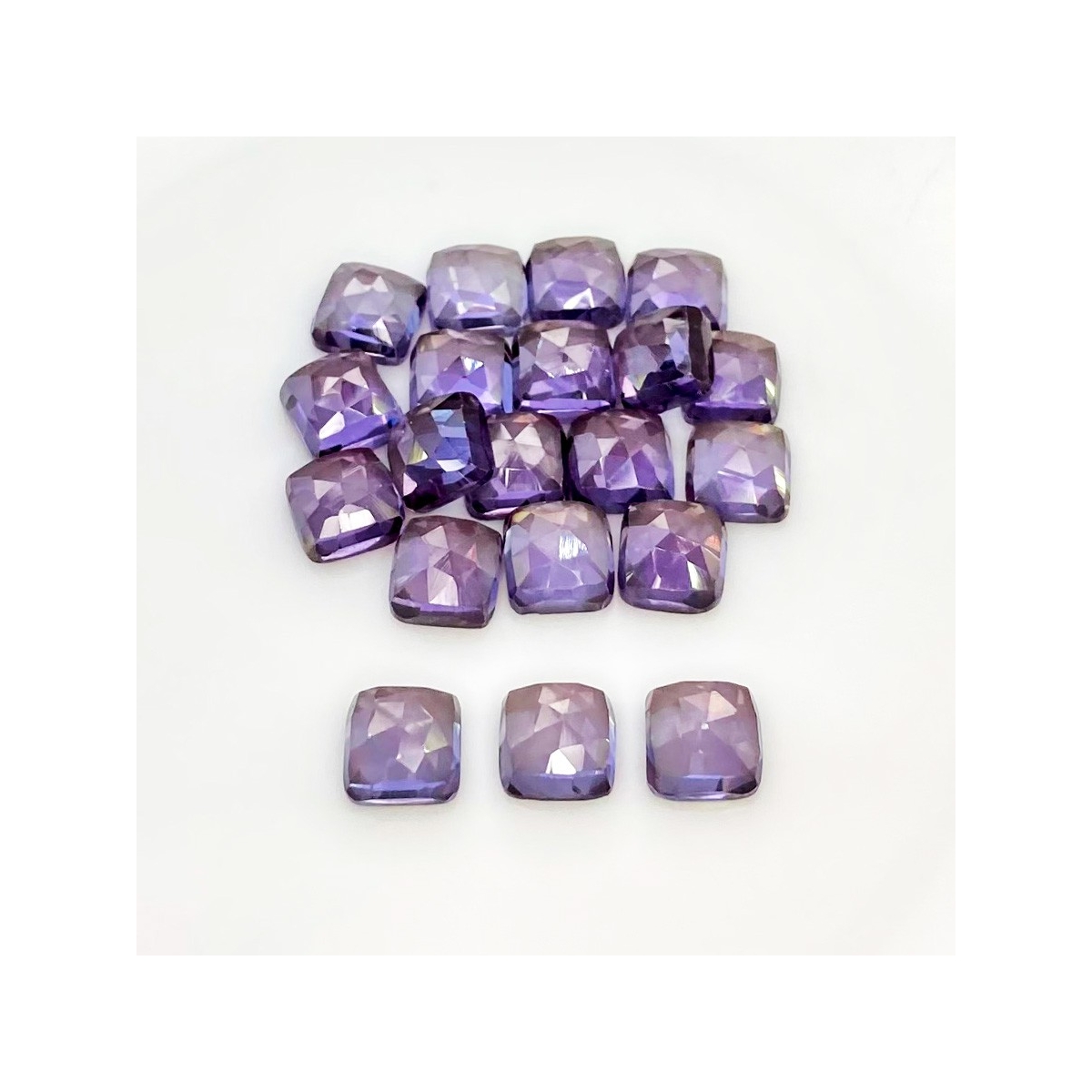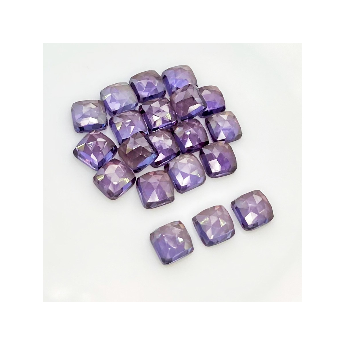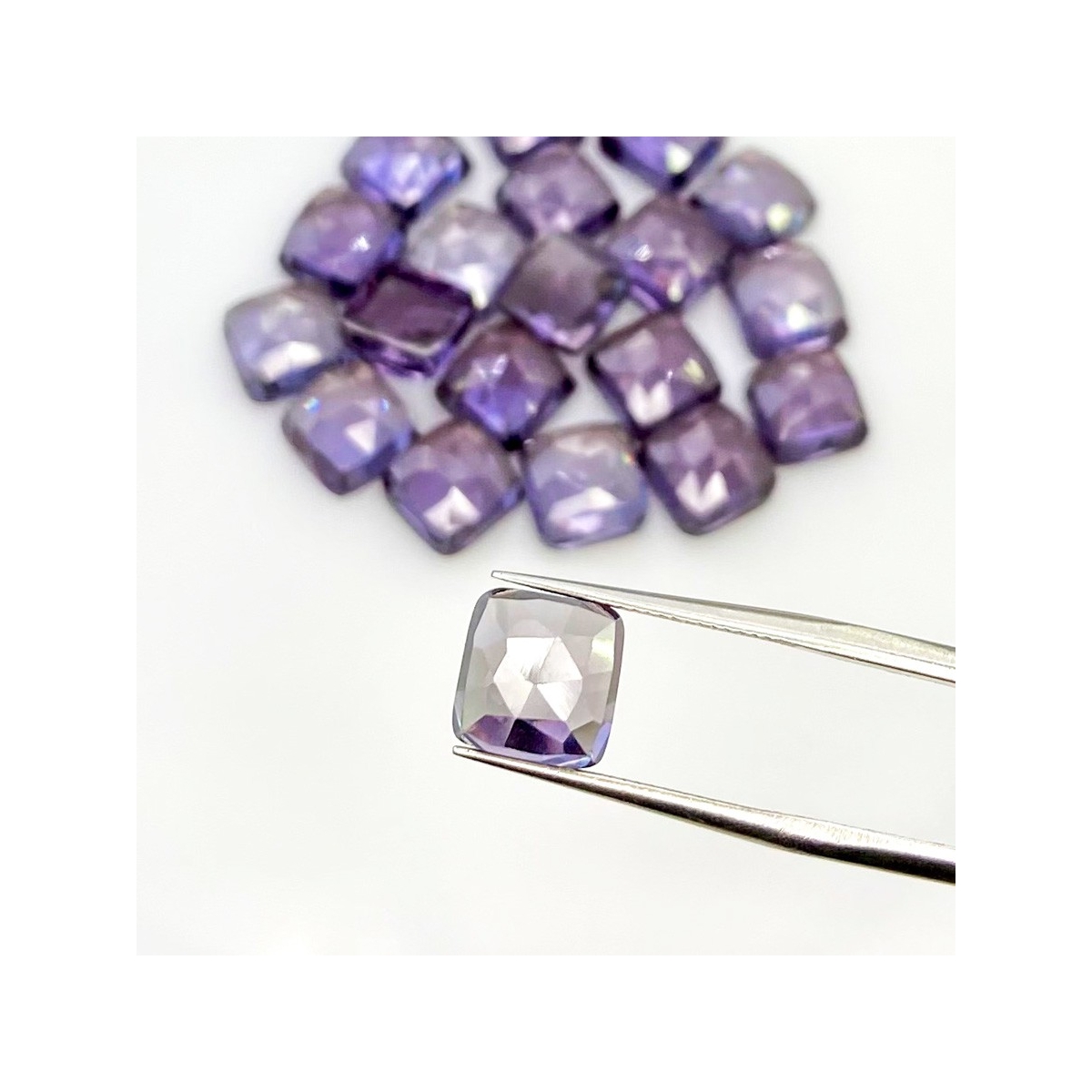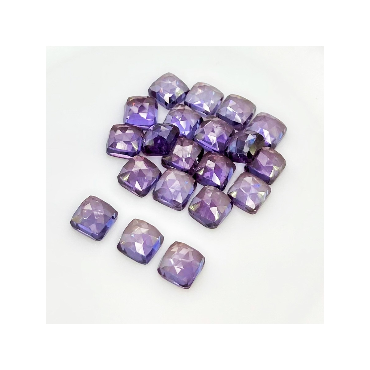 Buy This "AAA" Grade 8mm Rose Cut Square Cushion Shape Created Lab Alexandrite (Lab Grown) Cabochons Parcel. You Will Receive 20 Pcs. With a Total Weight of 80.55 Cts.. This Lab Alexandrite Stone is Originated From Russia and Masterfully Handcrafted by The Experienced Artisans of Jaipur (India).