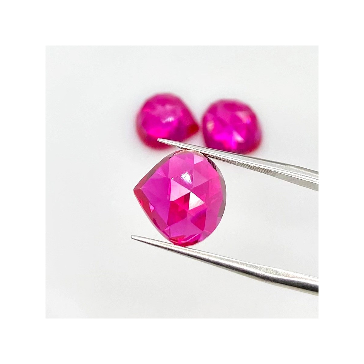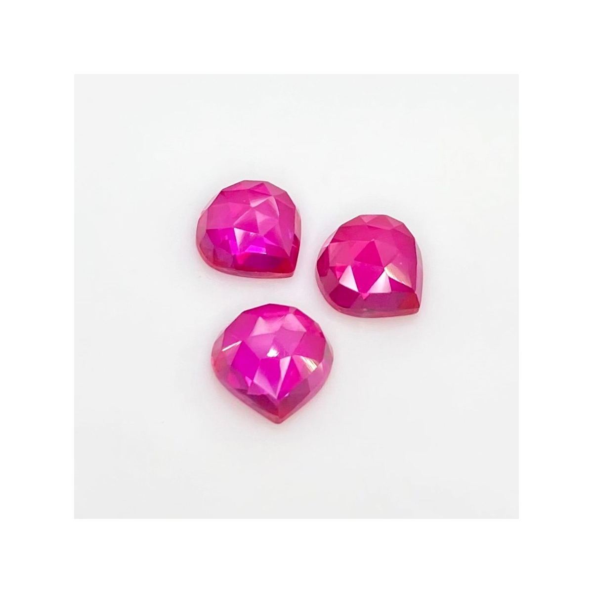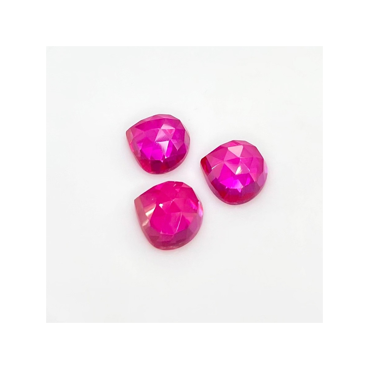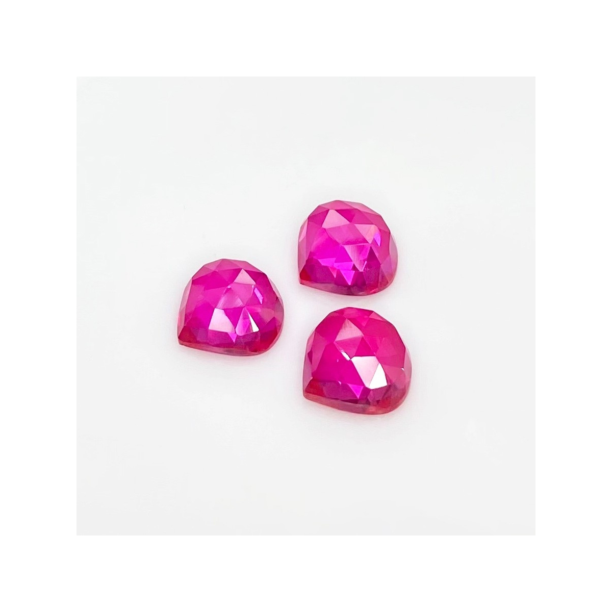 Buy This "AAA" Grade 12mm Rose Cut Heart Shape Created Lab Ruby (Lab Grown) Cabochons Parcel. You Will Receive 3 Pcs. With a Total Weight of 24 Carat. This Lab Ruby Stone is Originated From Russia and Masterfully Handcrafted by The Experienced Artisans of Jaipur (India).