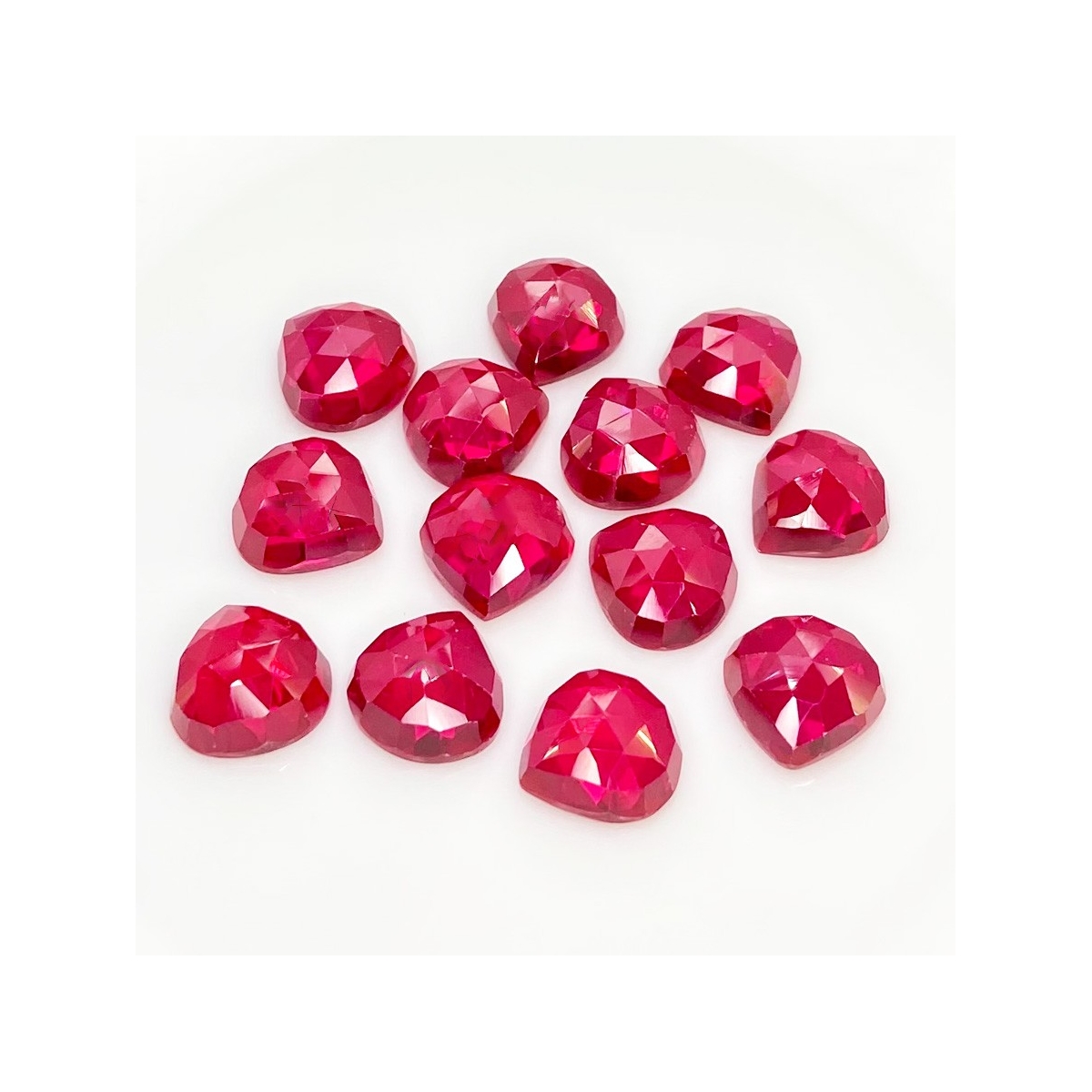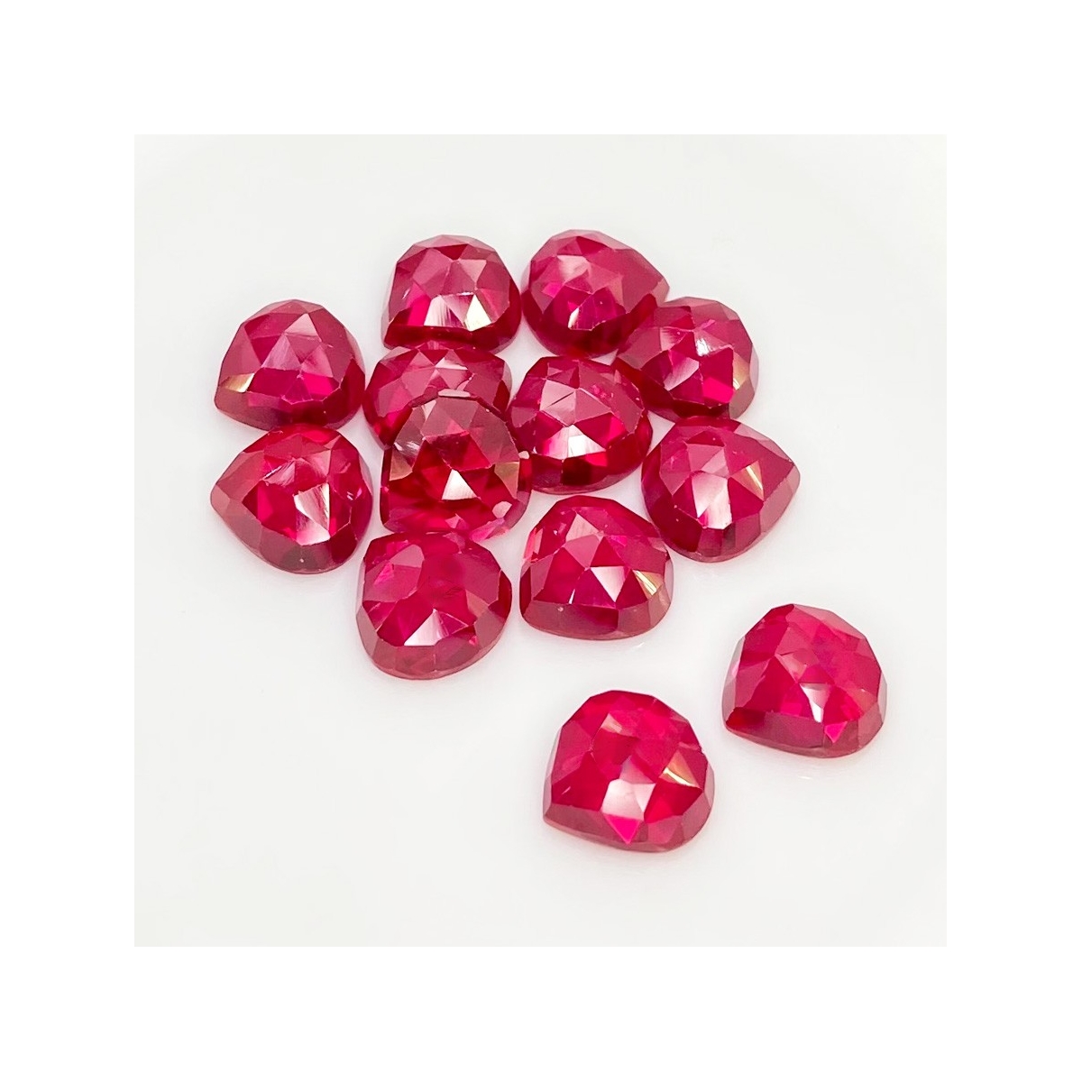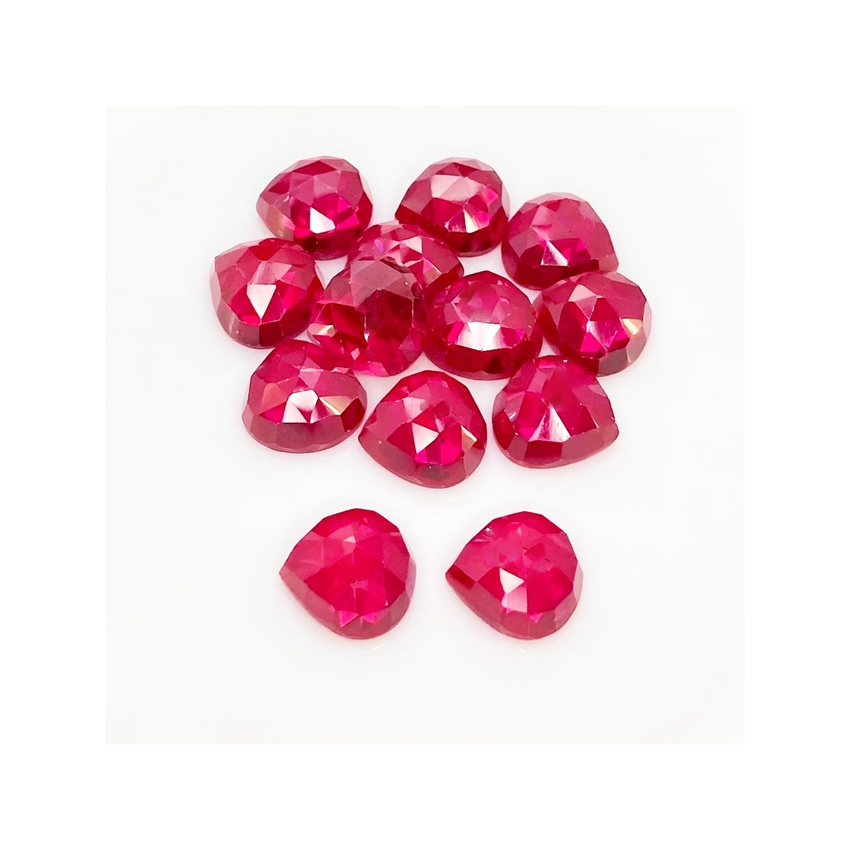 Buy This "AAA" Grade 12mm Rose Cut Heart Shape Created Lab Ruby (Lab Grown) Cabochons Parcel. You Will Receive 13 Pcs. With a Total Weight of 106.45 Cts.. This Lab Ruby Stone is Originated From Russia and Masterfully Handcrafted by The Experienced Artisans of Jaipur (India).