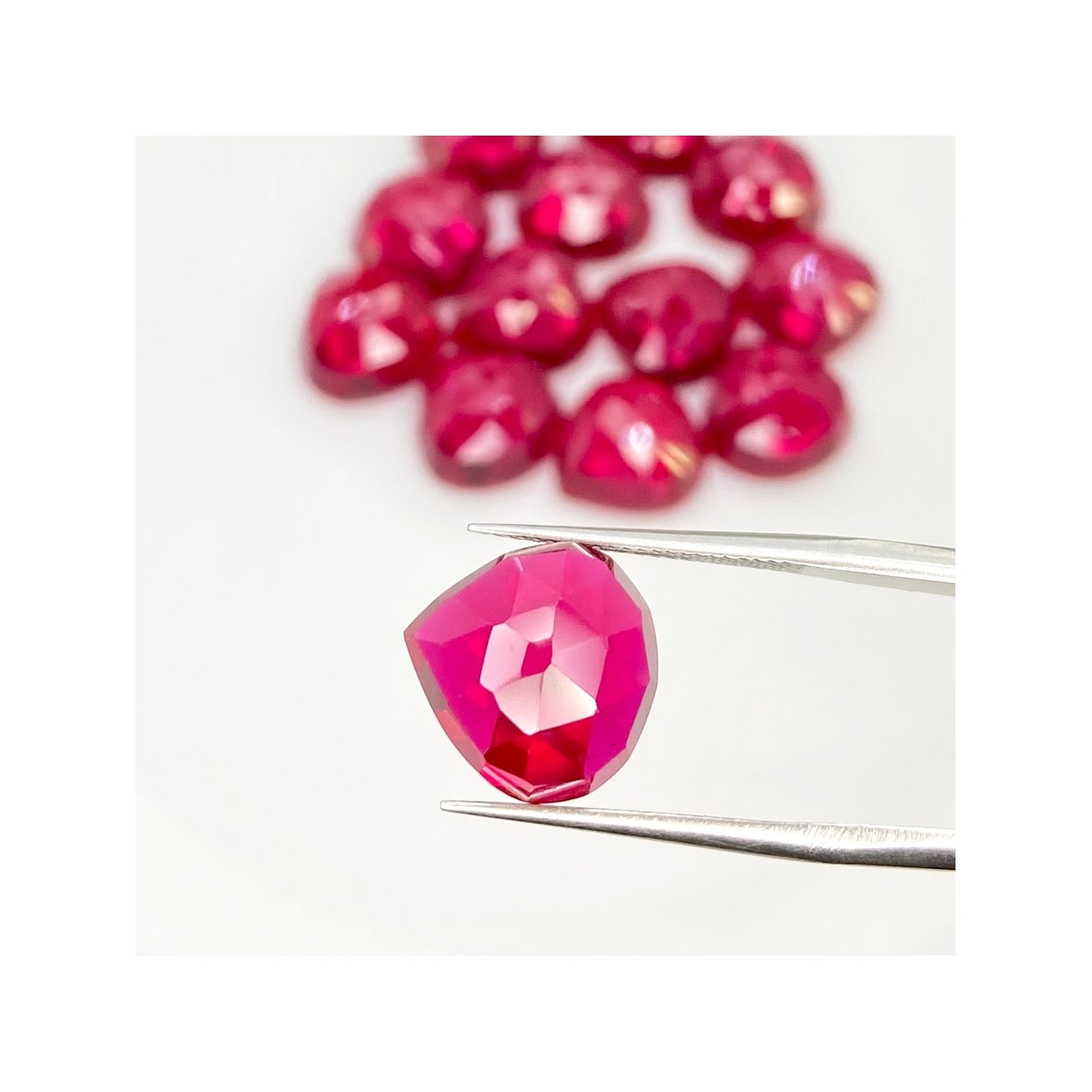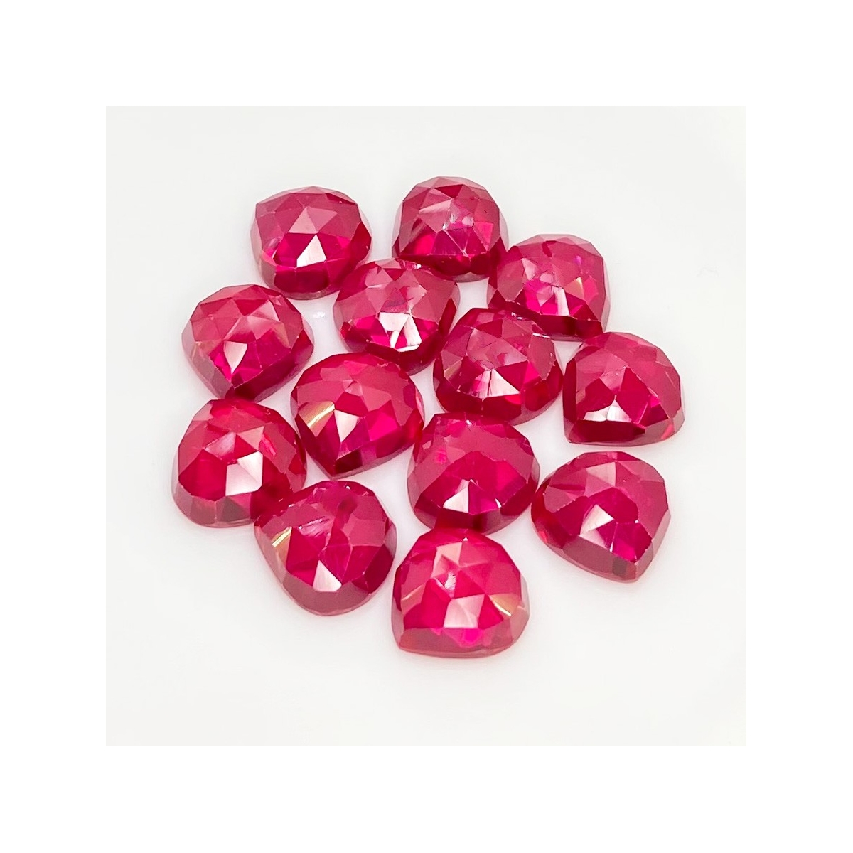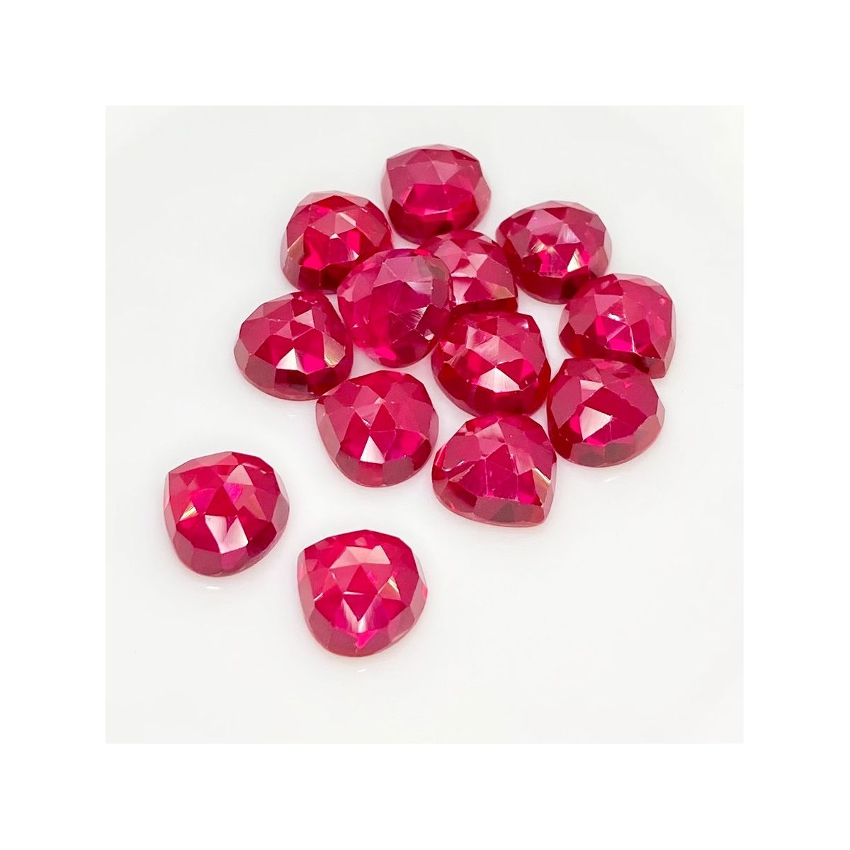 Buy This "AAA" Grade 12mm Rose Cut Heart Shape Created Lab Ruby (Lab Grown) Cabochons Parcel. You Will Receive 13 Pcs. With a Total Weight of 106.45 Cts.. This Lab Ruby Stone is Originated From Russia and Masterfully Handcrafted by The Experienced Artisans of Jaipur (India).