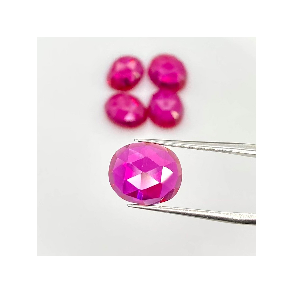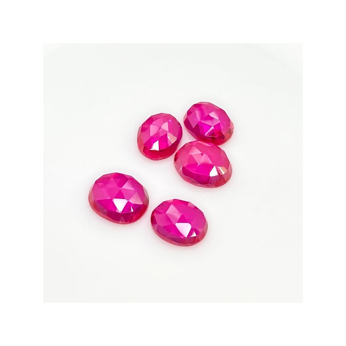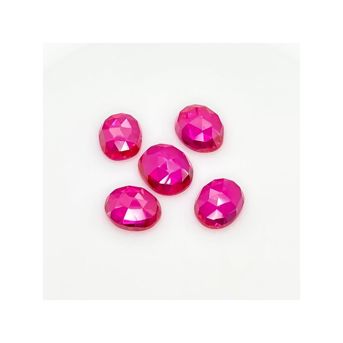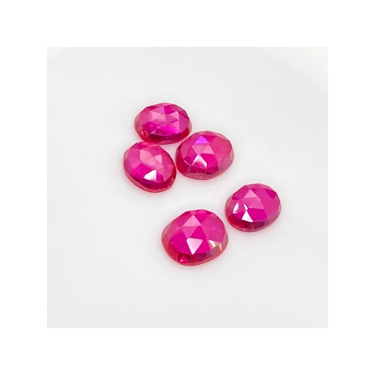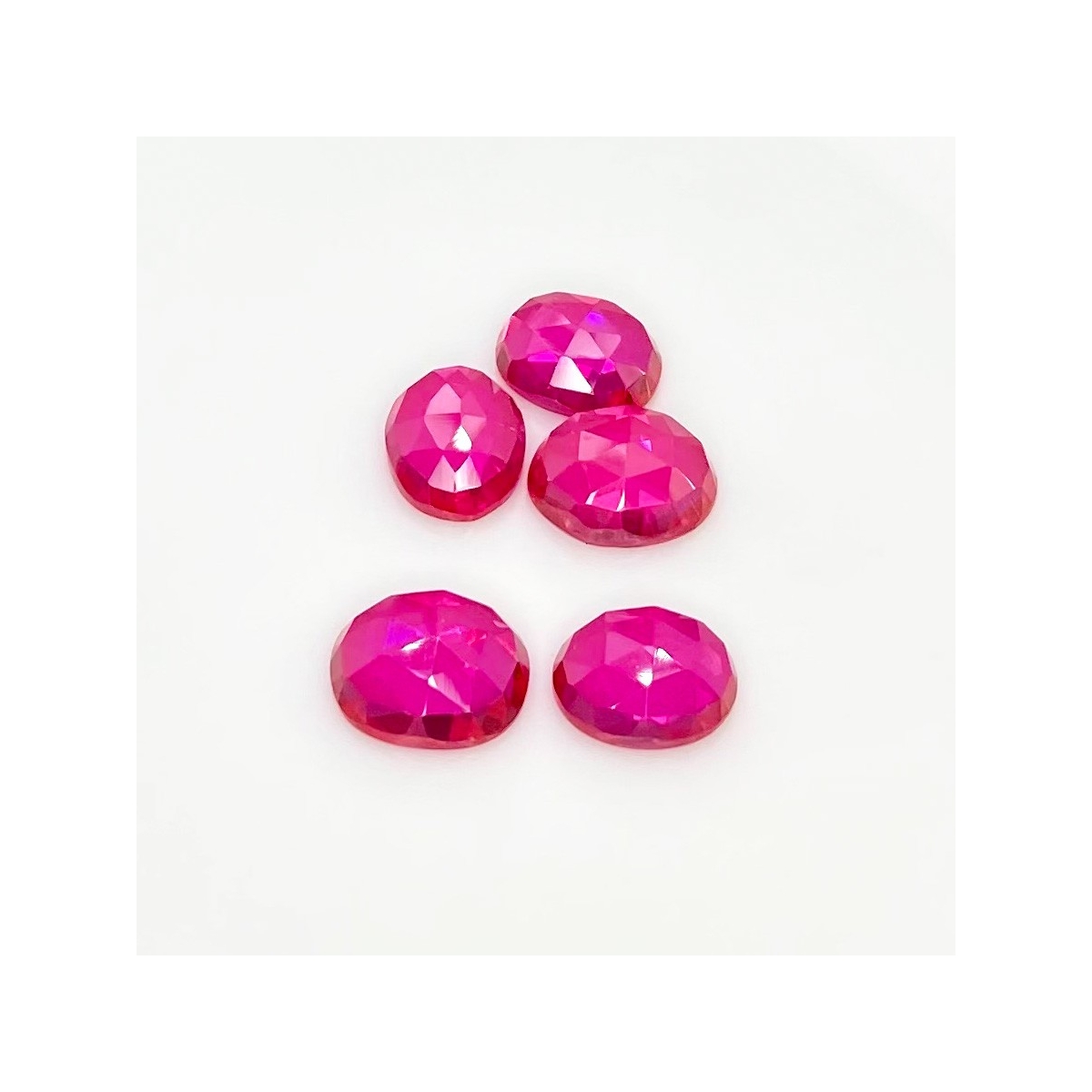 Buy This "AAA" Grade 11x9-12x10 Rose Cut Oval Shape Created Lab Ruby (Lab Grown) Cabochons Parcel. You Will Receive 5 Pcs. With a Total Weight of 26.85 Carat. This Lab Ruby Stone is Originated From Russia and Masterfully Handcrafted by The Experienced Artisans of Jaipur (India).