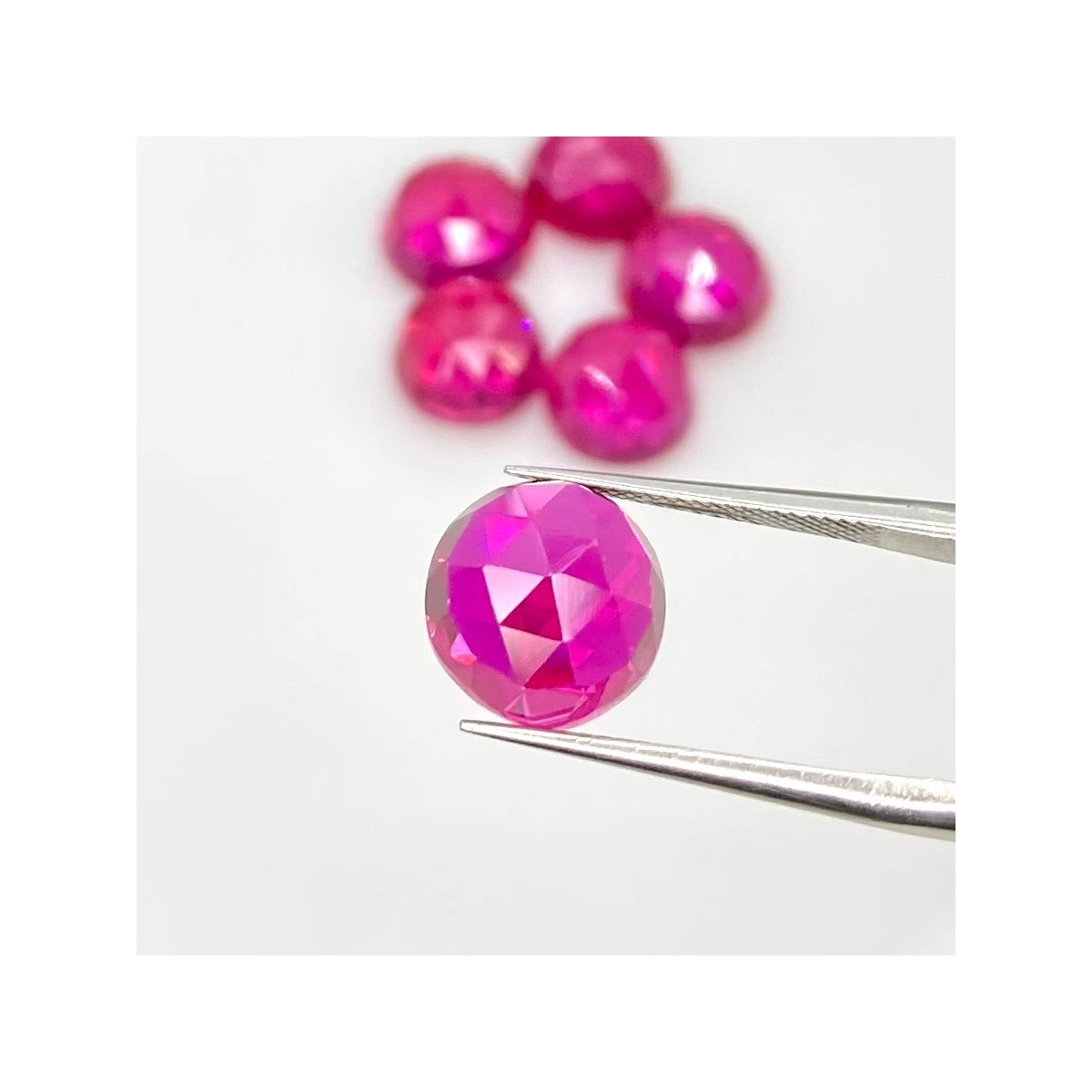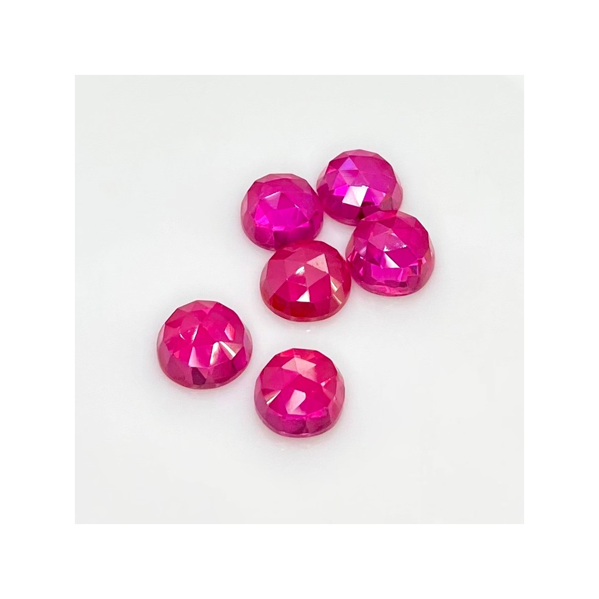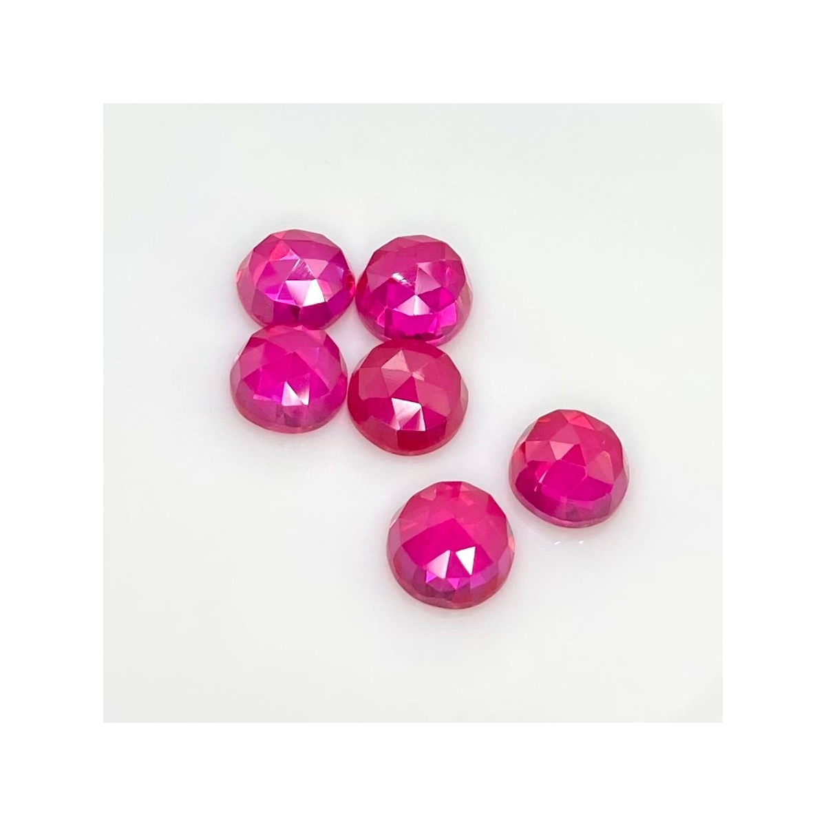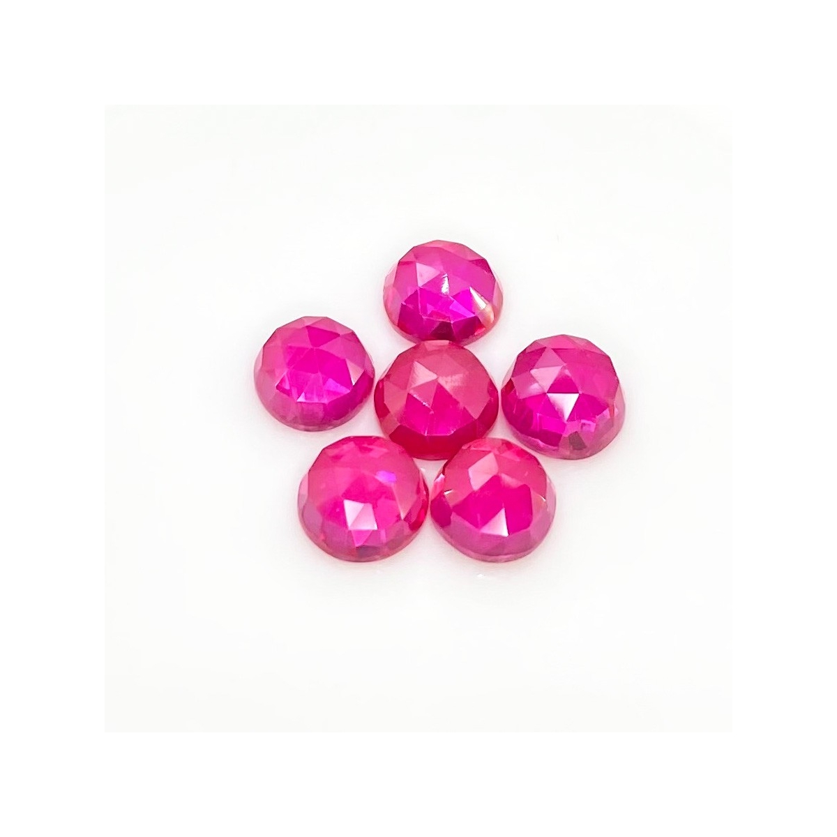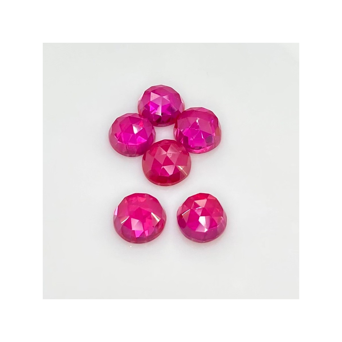 Buy This "AAA" Grade 10mm Rose Cut Round Shape Created Lab Ruby (Lab Grown) Cabochons Parcel. You Will Receive 6 Pcs. With a Total Weight of 34.25 Carat. This Lab Ruby Stone is Originated From Russia and Masterfully Handcrafted by The Experienced Artisans of Jaipur (India).