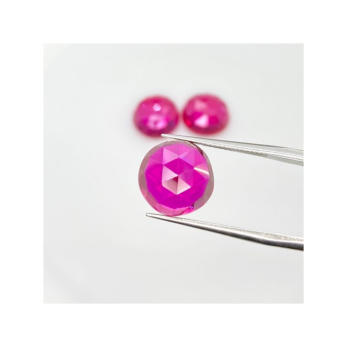 Buy This "AAA" Grade 11mm Rose Cut Round Shape Created Lab Ruby (Lab Grown) Cabochons Parcel. You Will Receive 3 Pcs. With a Total Weight of 21.35 Carat. This Lab Ruby Stone is Originated From Russia and Masterfully Handcrafted by The Experienced Artisans of Jaipur (India).