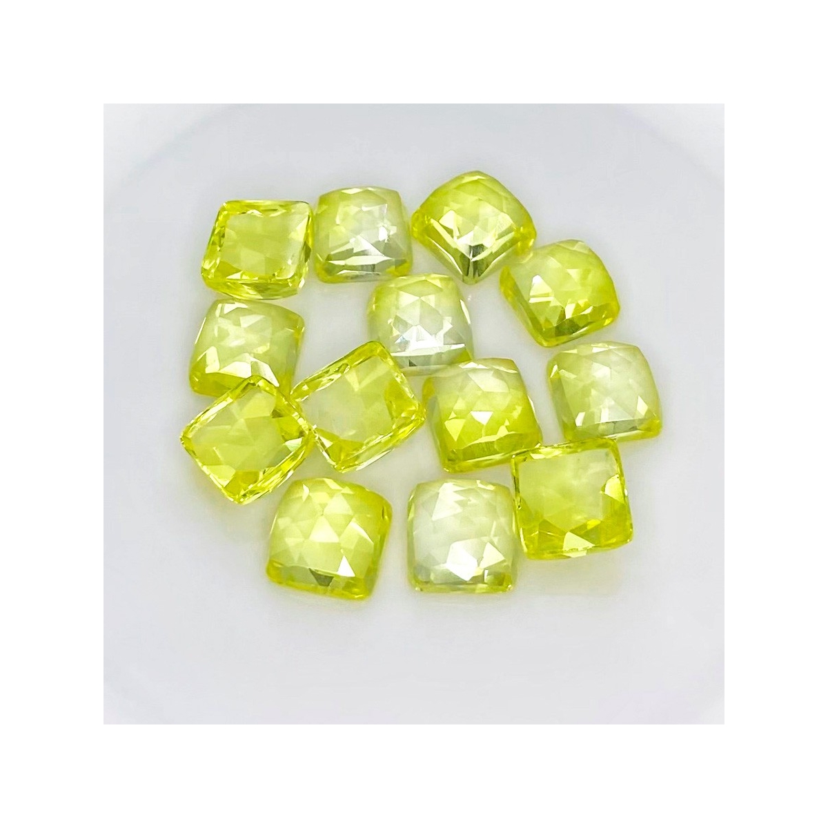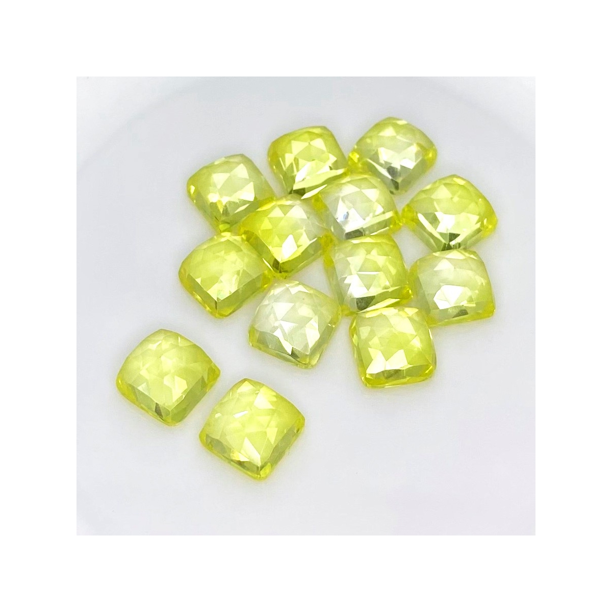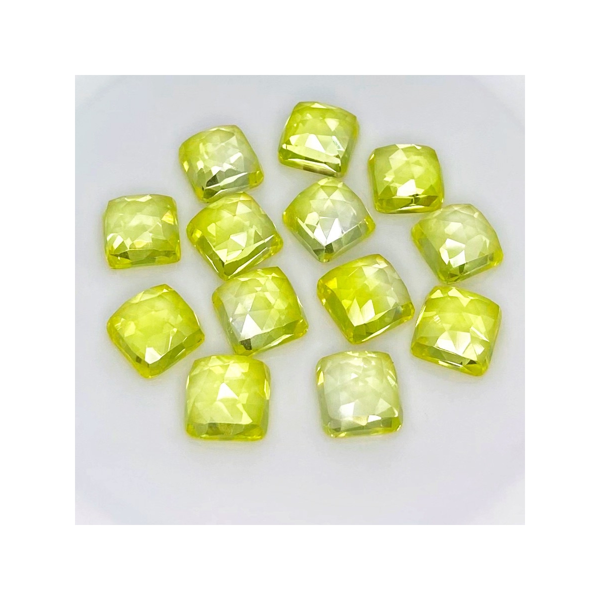 Buy This "AAA" Grade 10mm Rose Cut Square Cushion Shape Created Lab Yellow Sapphire (Lab Grown) Cabochons Parcel. You Will Receive 13 Pcs. With a Total Weight of 105.85 Cts.. This Lab Yellow Sapphire Stone is Originated From Russia and Masterfully Handcrafted by The Experienced Artisans of Jaipur (India).
