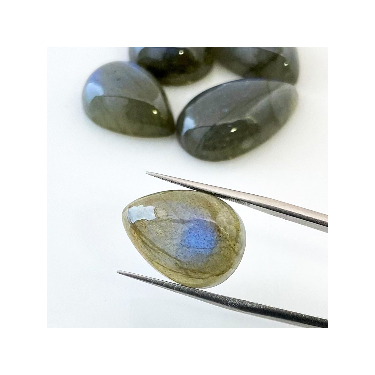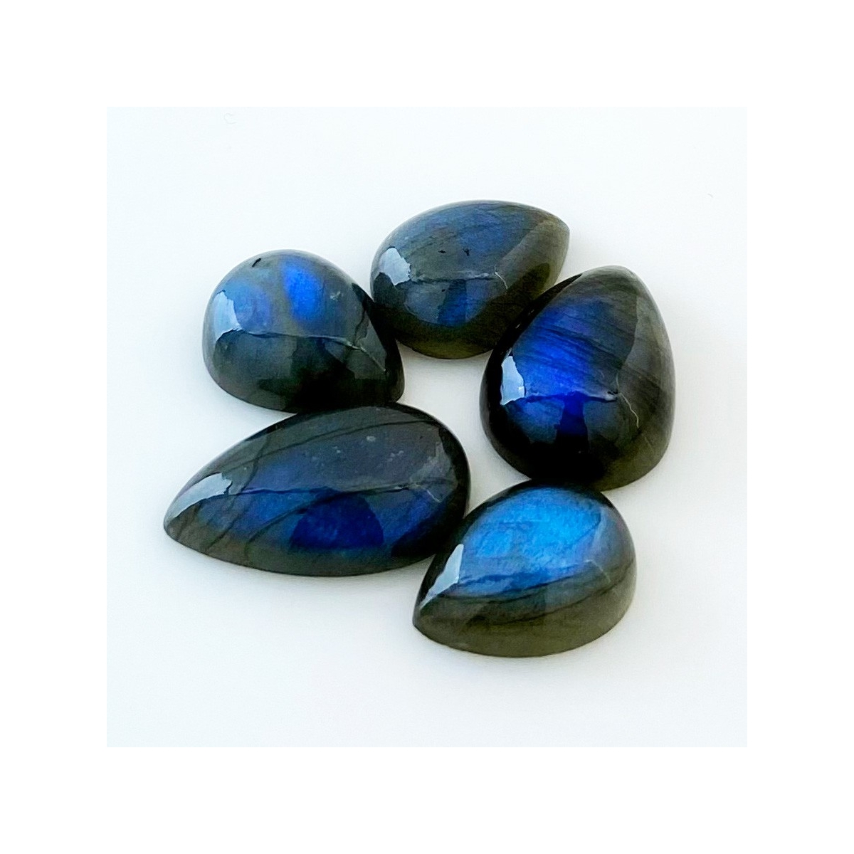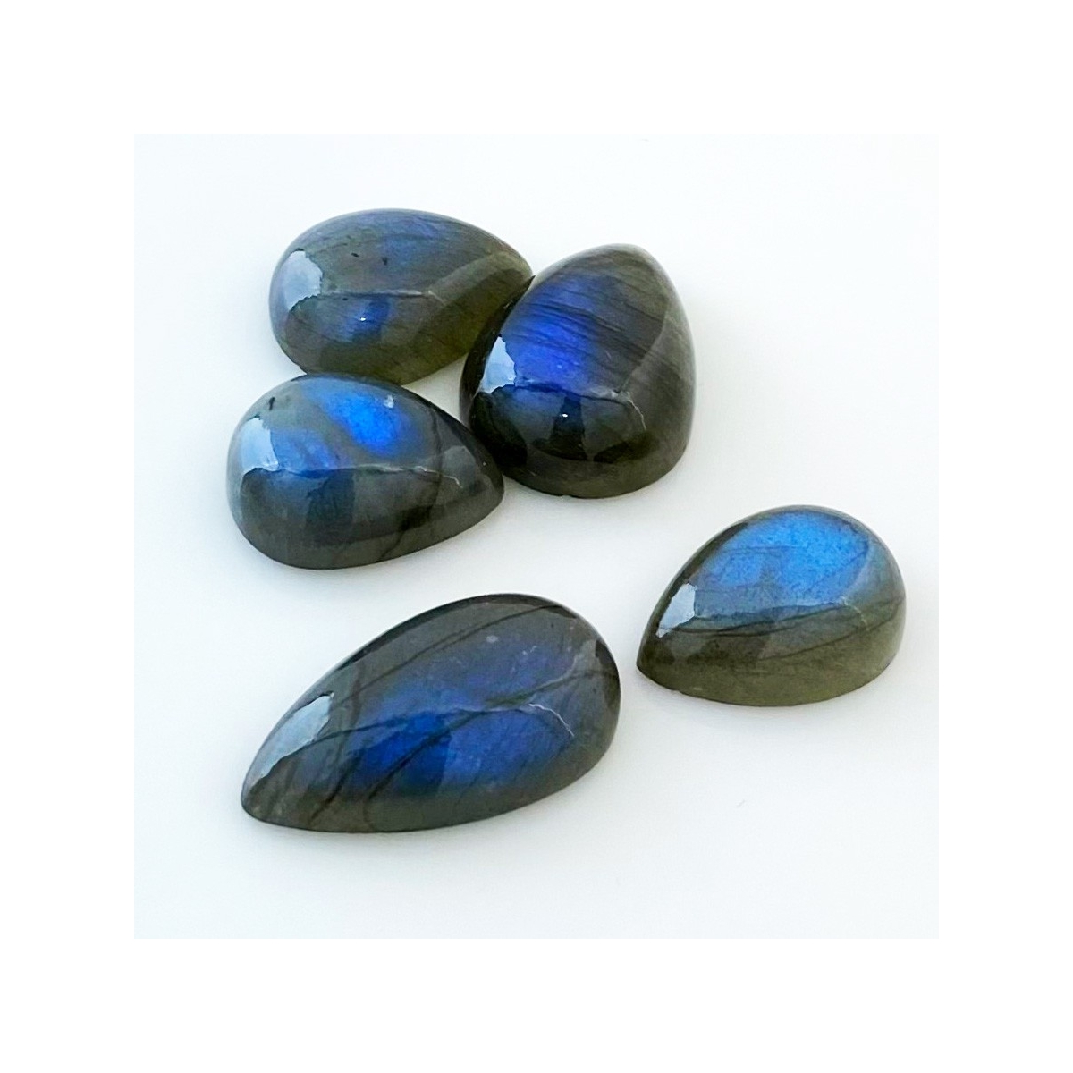 Buy This "AA" Grade 19x14-26x15mm Smooth Pear Shape Natural Labradorite (Un-Treated) Cabochons Parcel. You Will Receive 5 Pcs. With a Total Weight of 91.5 Carat. This Labradorite Stone is Originated From Africa and Masterfully Handcrafted by The Experienced Artisans of Jaipur (India).