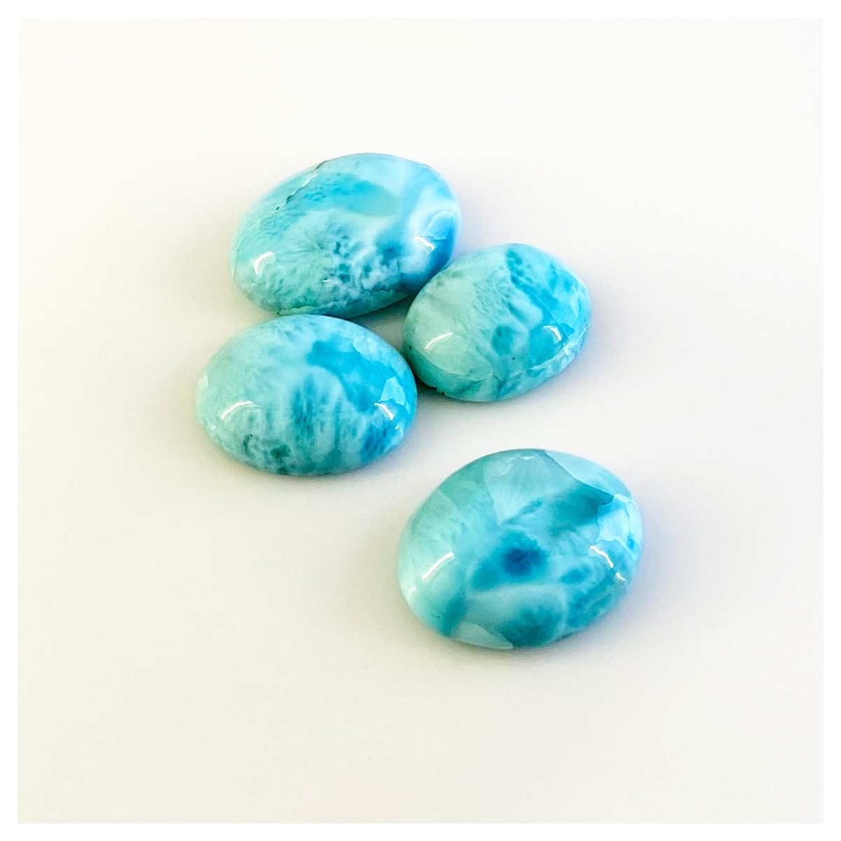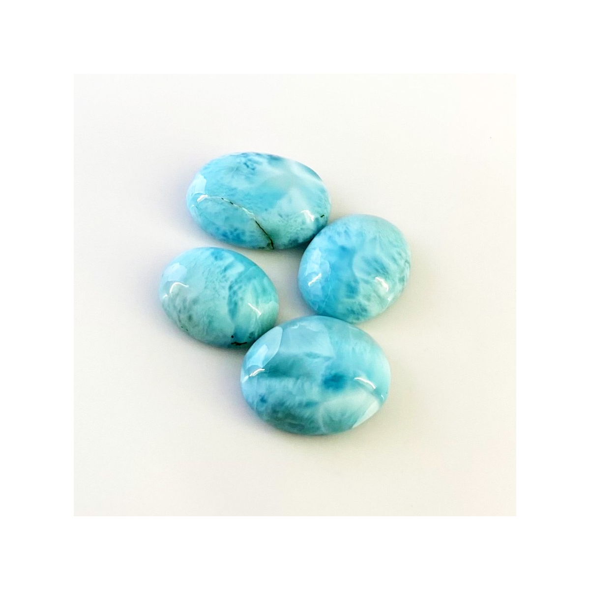 Buy This "AA" Grade 18x14-22x16mm Smooth Oval Shape Natural Larimar (Un-Treated) Cabochons Parcel. You Will Receive 4 Pcs. With a Total Weight of 67.3 Carat. This Larimar Stone is Originated From Domonica and Masterfully Handcrafted by The Experienced Artisans of Jaipur (India).