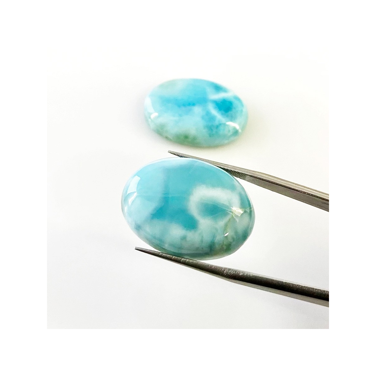 Buy This "AA" Grade 25x18mm Smooth Oval Shape Natural Larimar (Un-Treated) Cabochons Parcel. You Will Receive 2 Pcs. With a Total Weight of 53.55 Carat. This Larimar Stone is Originated From Domonica and Masterfully Handcrafted by The Experienced Artisans of Jaipur (India).