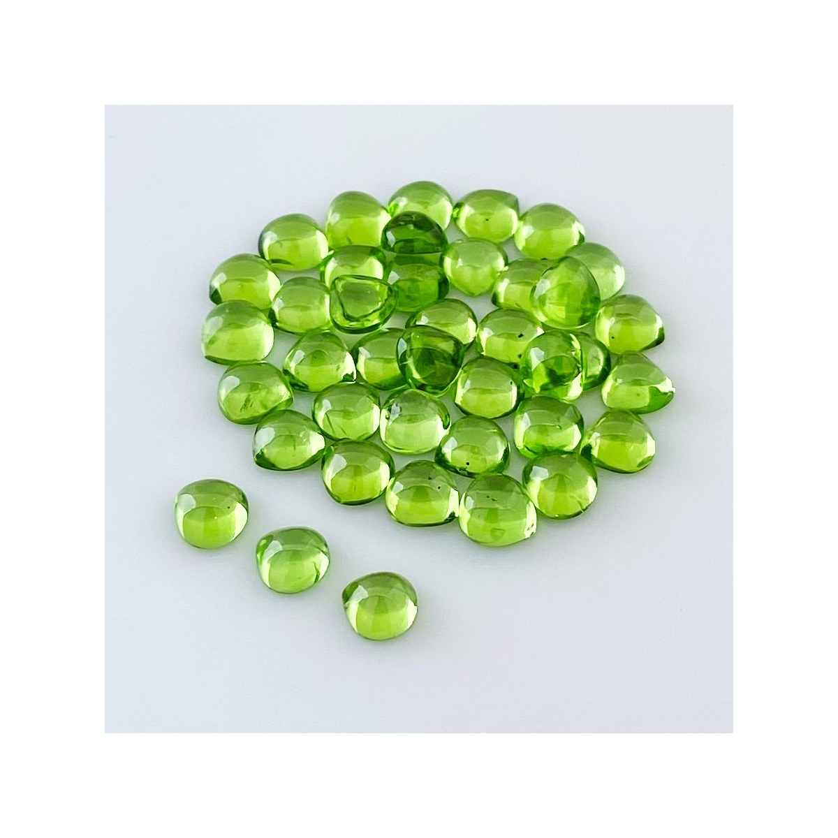 Buy This "AAA" Grade 6mm Smooth Heart Shape Natural Peridot (Un-Treated) Cabochons Parcel. You Will Receive 40 Pcs. With a Total Weight of 35.05 Carat. This Peridot Stone is Originated From Arizona and Masterfully Handcrafted by The Experienced Artisans of Jaipur (India).