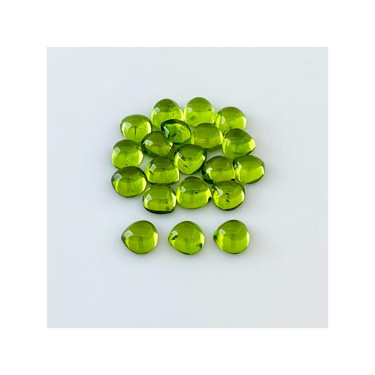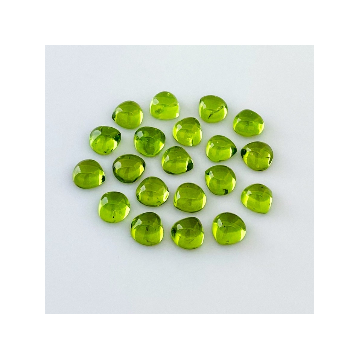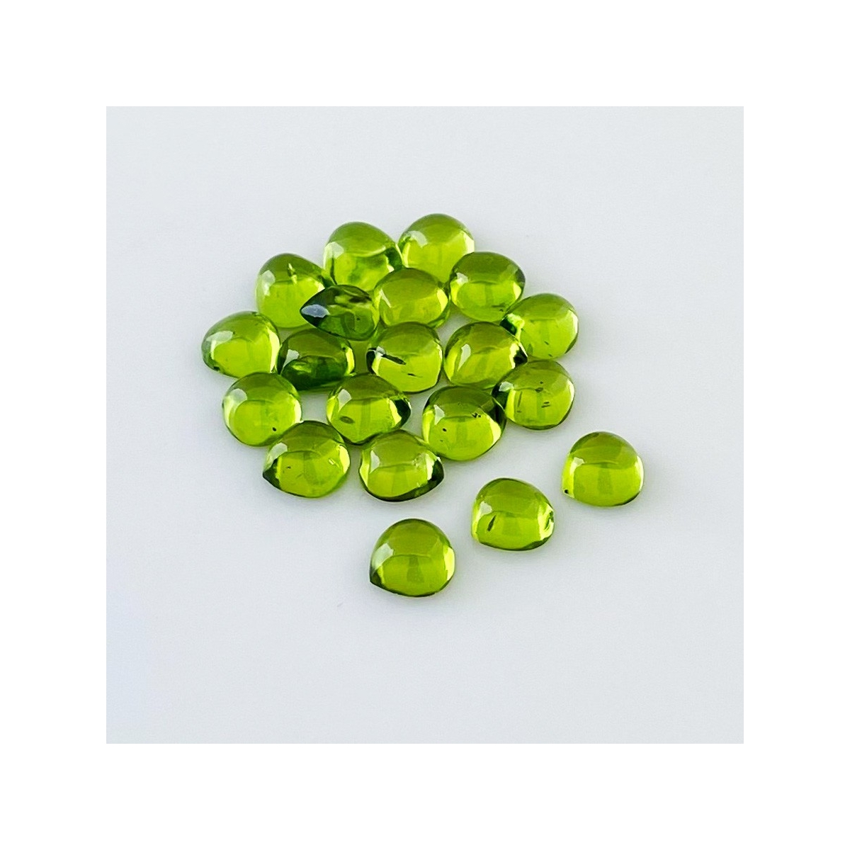 Buy This "AAA" Grade 7mm Smooth Heart Shape Natural Peridot (Un-Treated) Cabochons Parcel. You Will Receive 20 Pcs. With a Total Weight of 31.40 Carat. This Peridot Stone is Originated From Arizona and Masterfully Handcrafted by The Experienced Artisans of Jaipur (India).