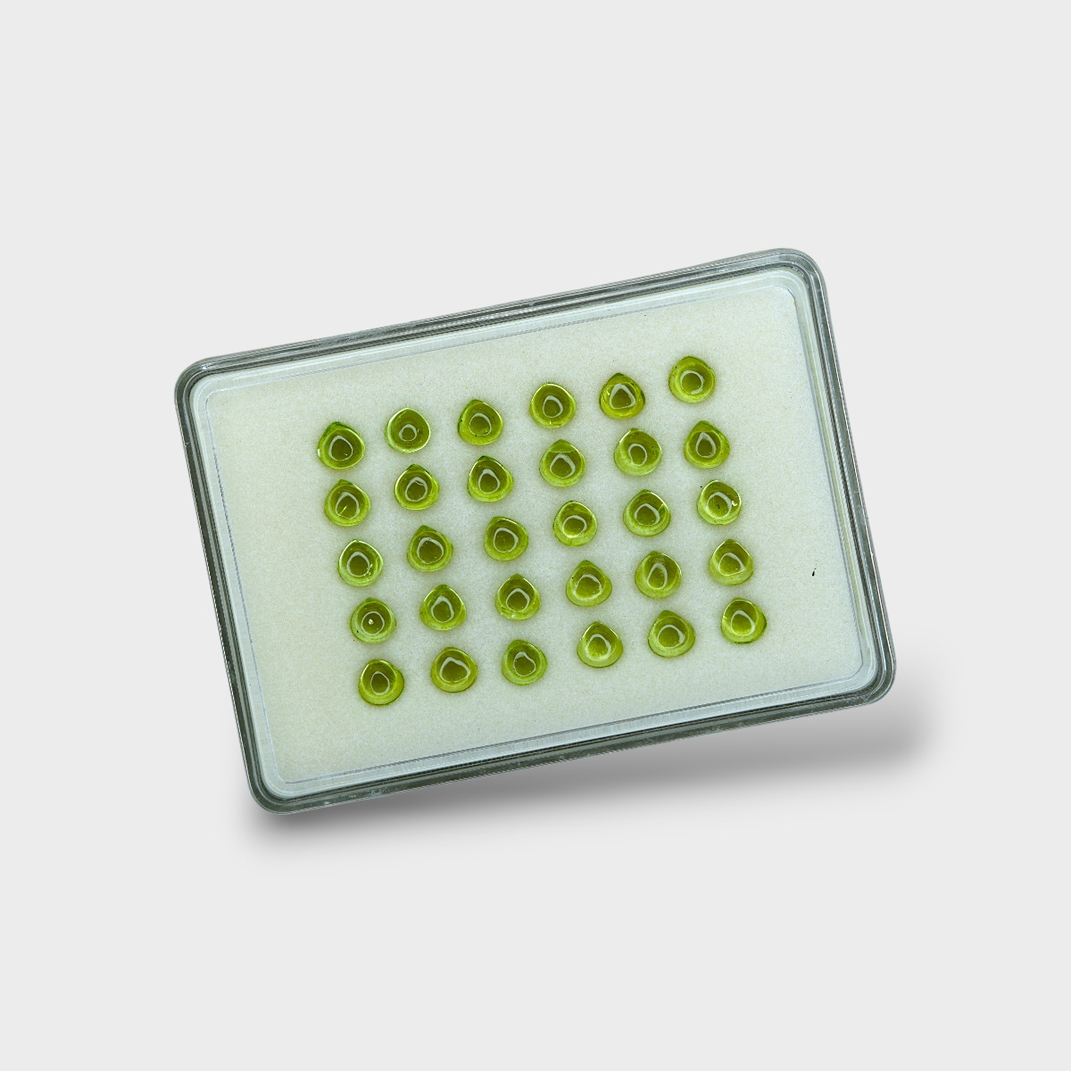 Buy This "AAA" Grade 6mm Smooth Heart Shape Natural Peridot (Un-Treated) Cabochons Parcel. You Will Receive 30 Pcs. With a Total Weight of 26.70 Cts.. This Peridot Stone is Originated From Arizona and Masterfully Handcrafted by The Experienced Artisans of Jaipur (India).