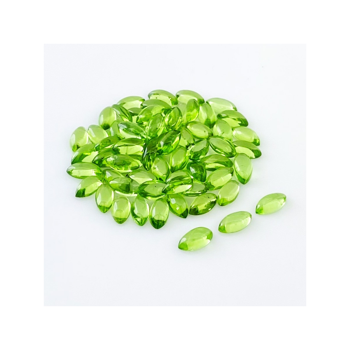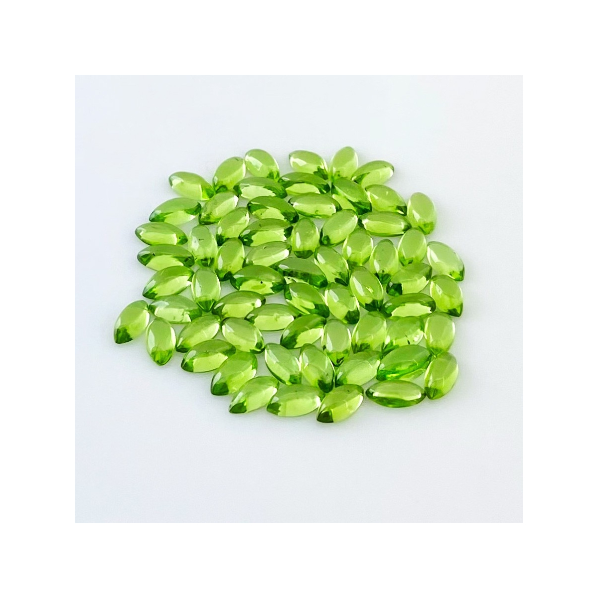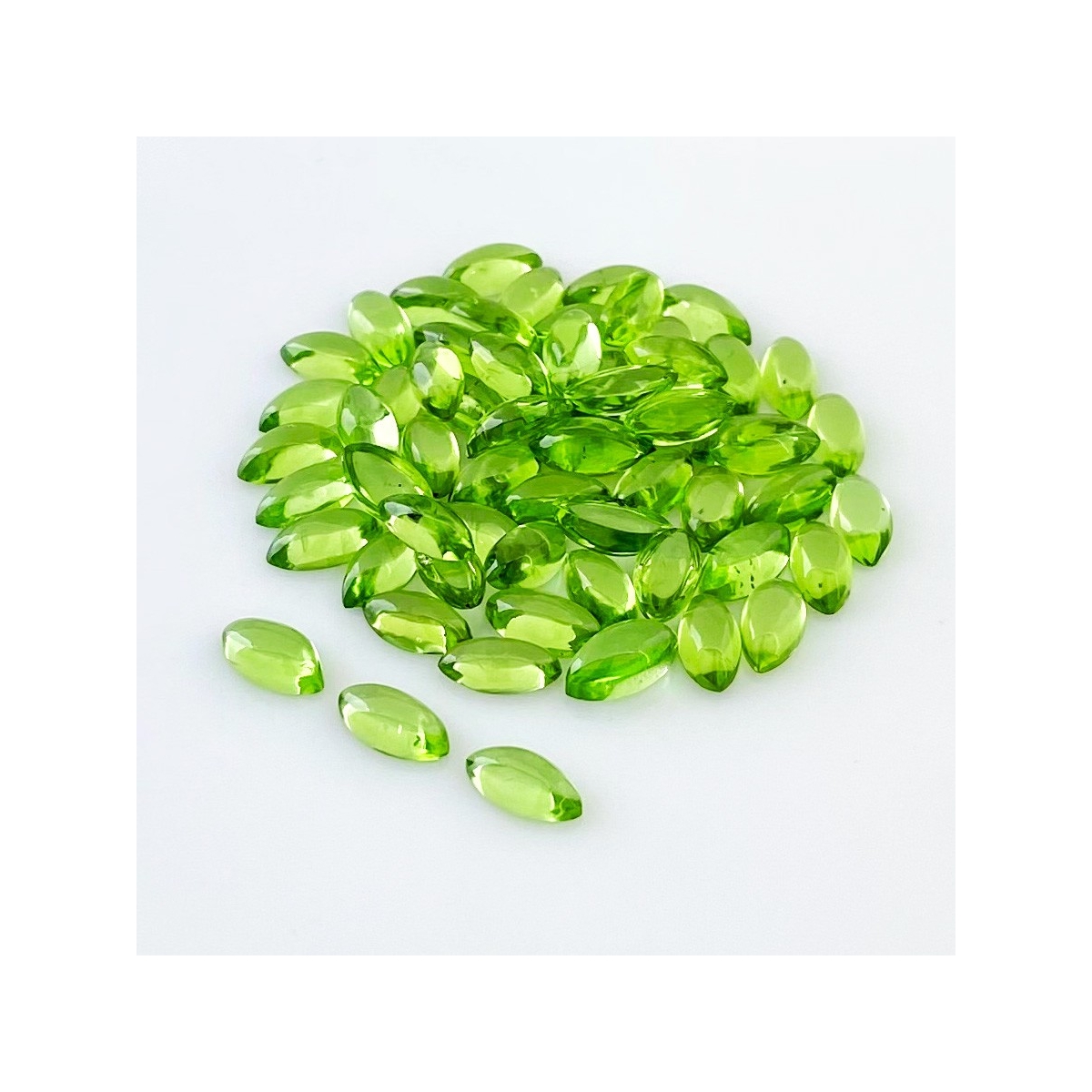 Buy This "AAA" Grade 8x4mm Smooth Marquise Shape Natural Peridot (Un-Treated) Cabochons Parcel. You Will Receive 63 Pcs. With a Total Weight of 46.10 Carat. This Peridot Stone is Originated From Arizona and Masterfully Handcrafted by The Experienced Artisans of Jaipur (India).