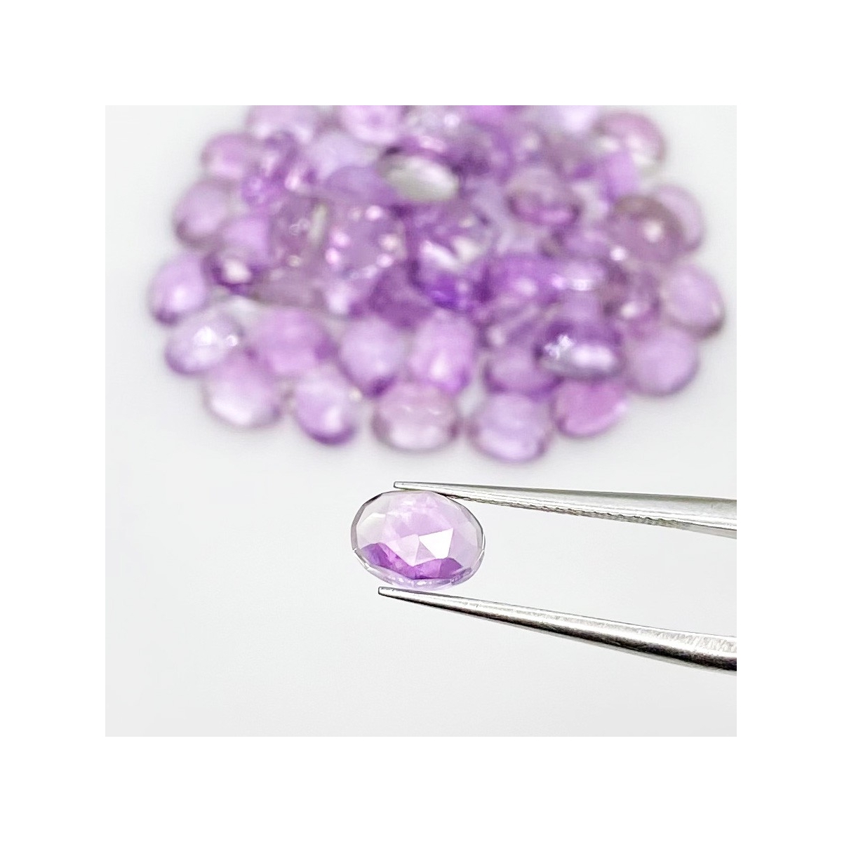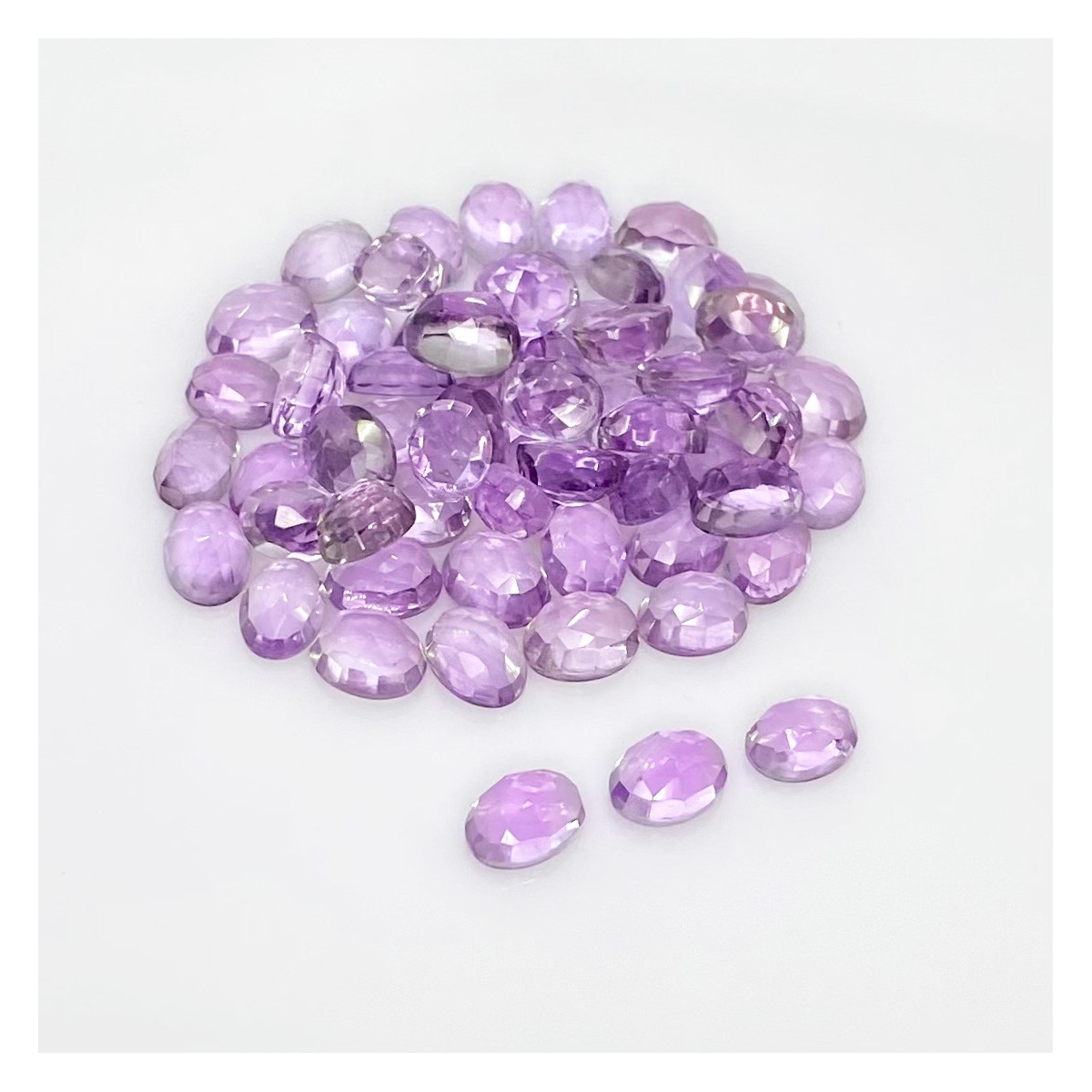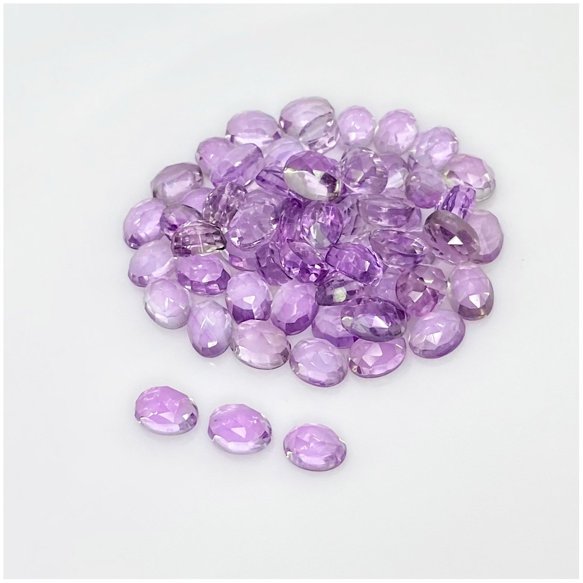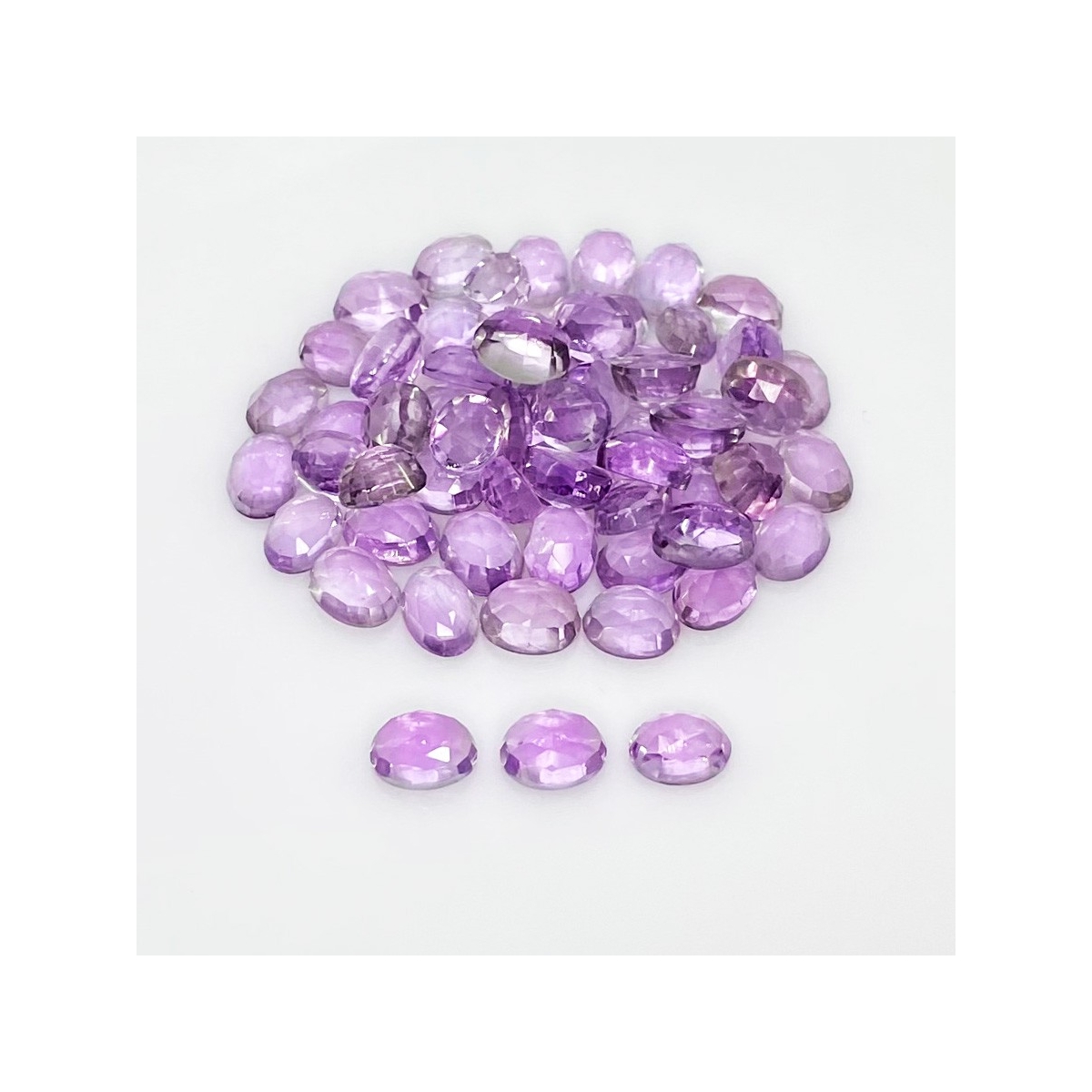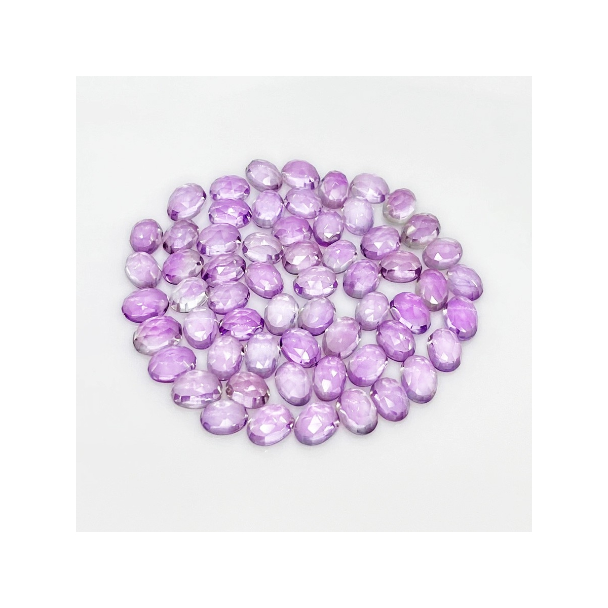 Buy This "AA" Grade 7x5mm Rose Cut Oval Shape Natural Pink Amethyst (Heated) Cabochons Parcel. You Will Receive 60 Pcs. With a Total Weight of 55.40 Carat. This Pink Amethyst Stone is Originated From Brazil and Masterfully Handcrafted by The Experienced Artisans of Jaipur (India).