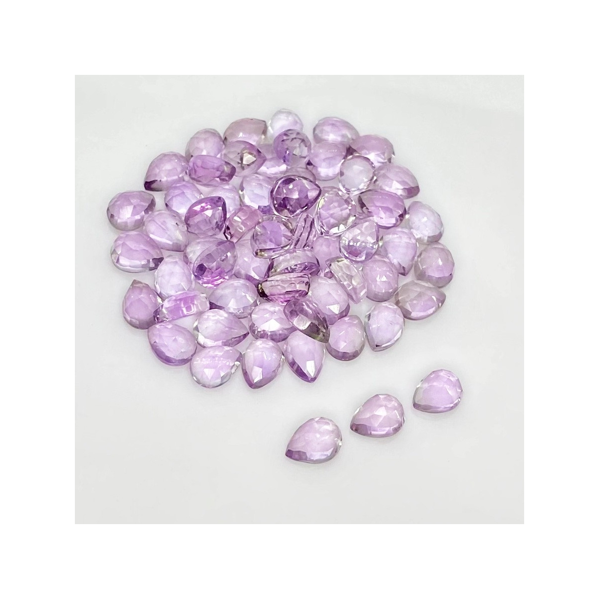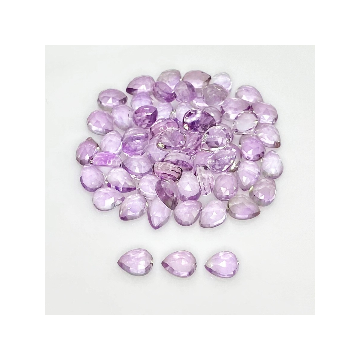 Buy This "AA" Grade 8x6mm Rose Cut Pear Shape Natural Pink Amethyst (Heated) Cabochons Parcel. You Will Receive 60 Pcs. With a Total Weight of 77.15 Carat. This Pink Amethyst Stone is Originated From Brazil and Masterfully Handcrafted by The Experienced Artisans of Jaipur (India).