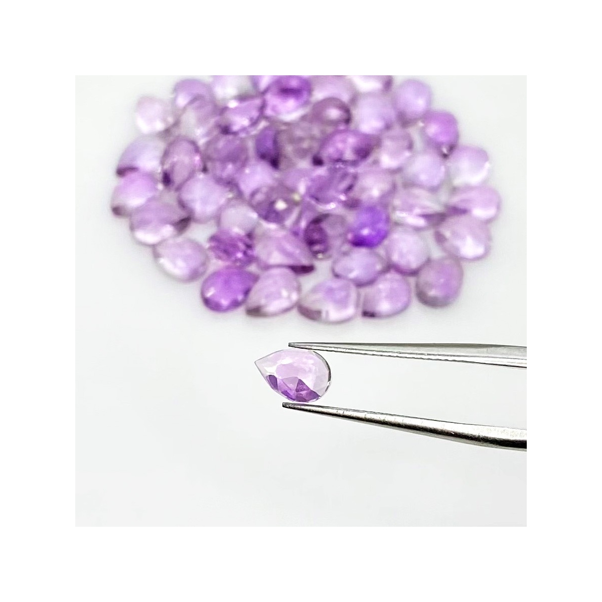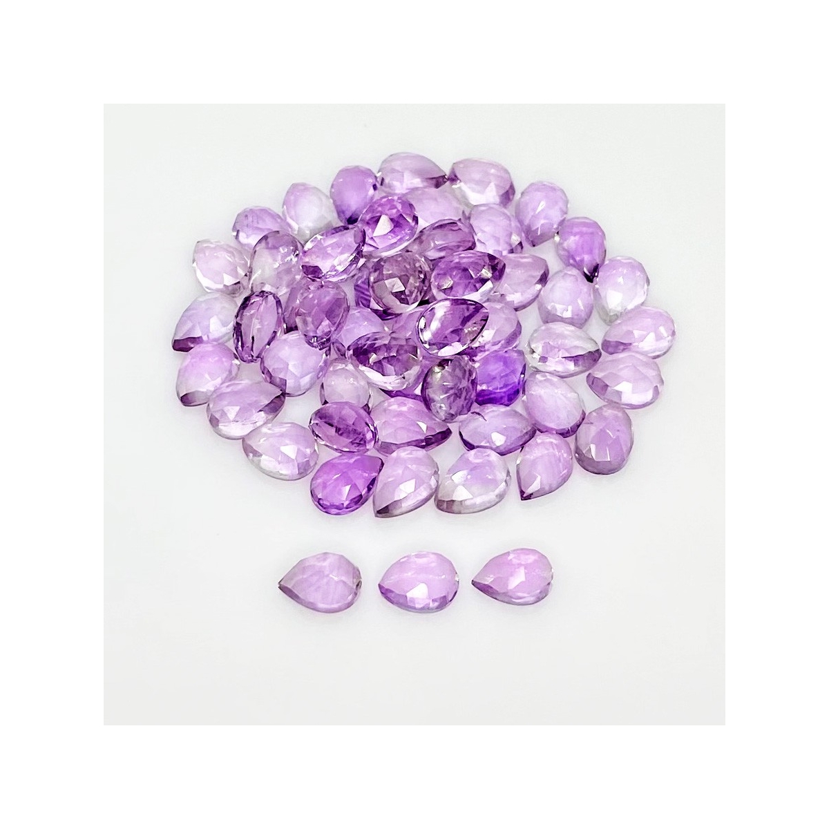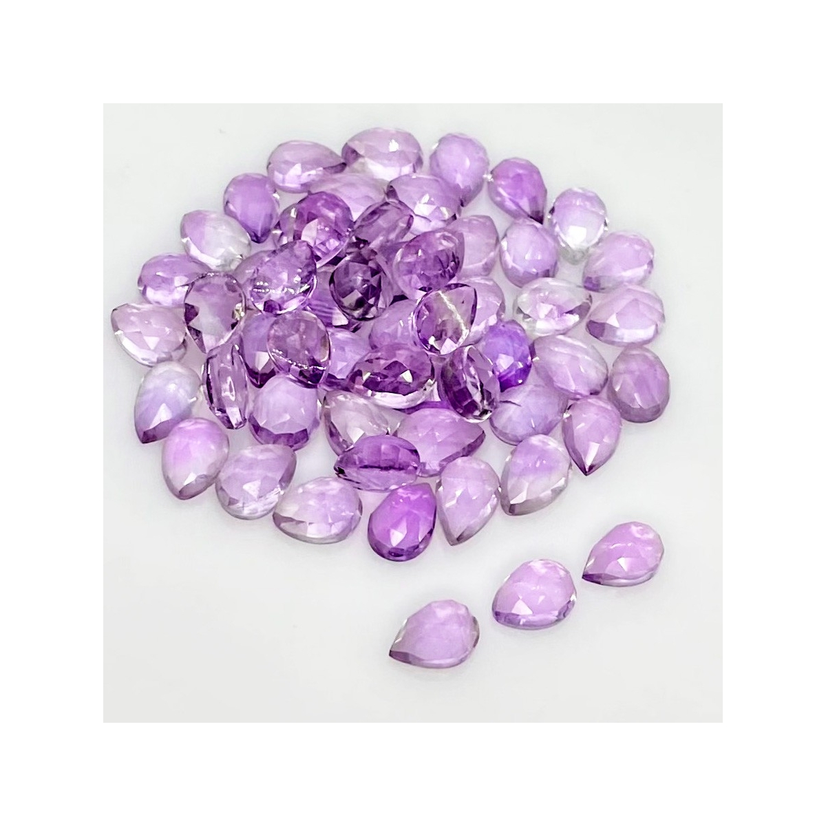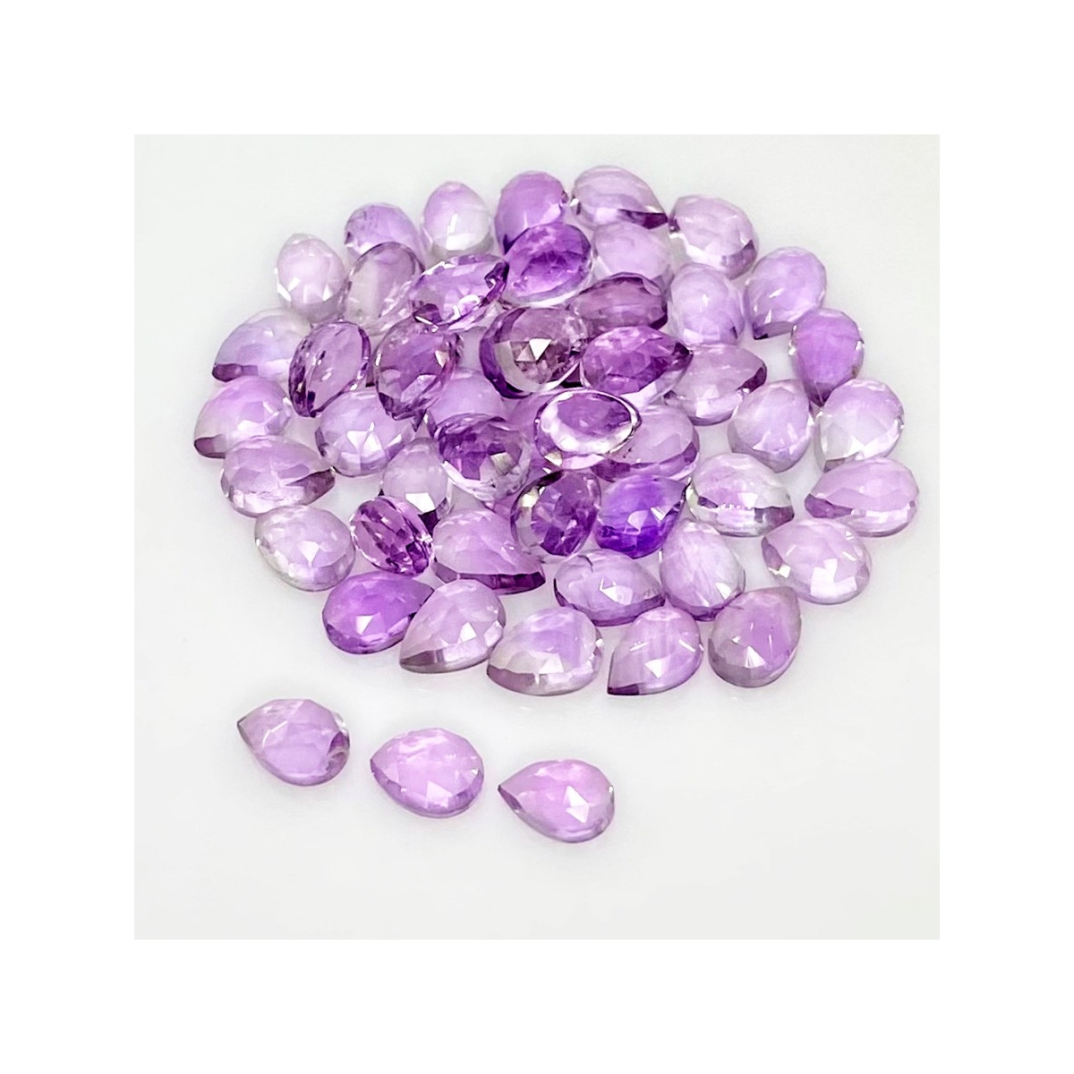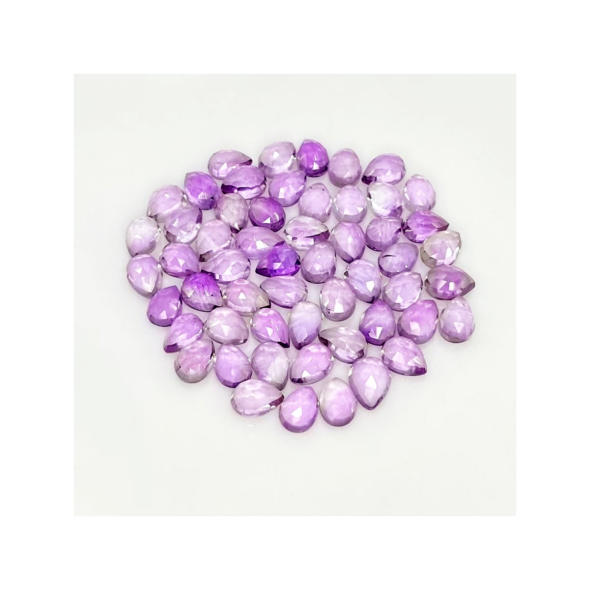 Buy This "AA" Grade 7x5mm Rose Cut Pear Shape Natural Pink Amethyst (Heated) Cabochons Parcel. You Will Receive 55 Pcs. With a Total Weight of 43.70 Carat. This Pink Amethyst Stone is Originated From Brazil and Masterfully Handcrafted by The Experienced Artisans of Jaipur (India).