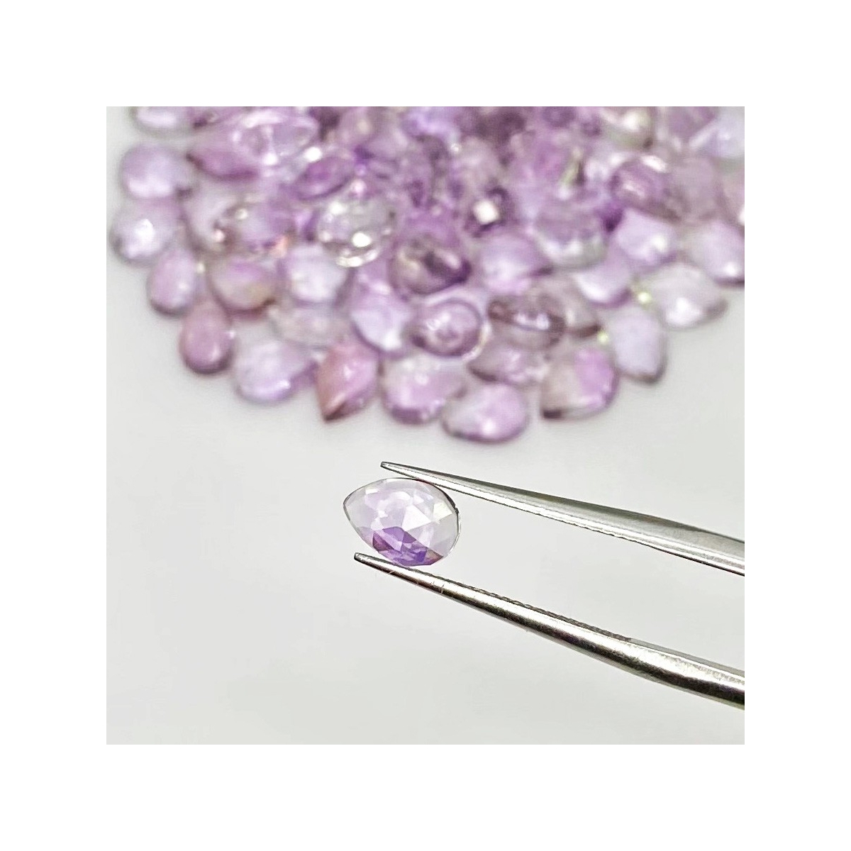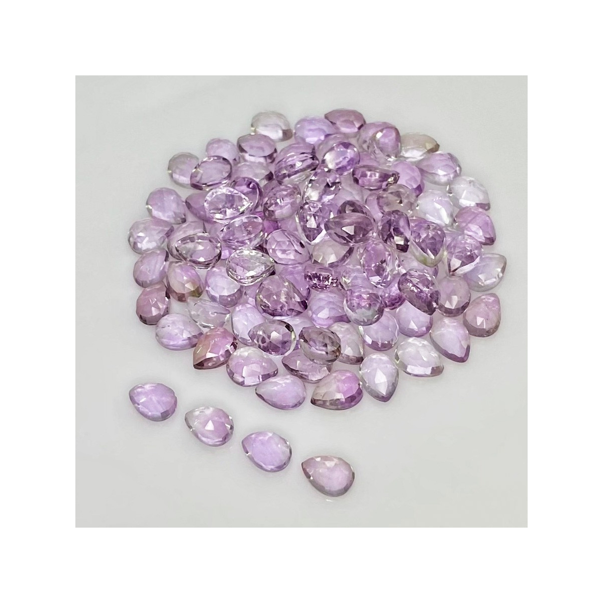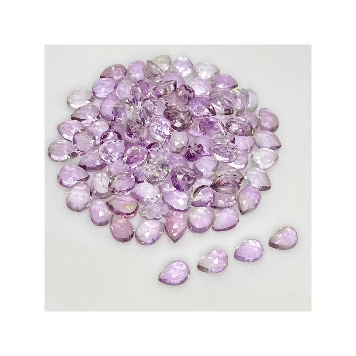 Buy This "AA" Grade 7x5mm Rose Cut Pear Shape Natural Pink Amethyst (Heated) Cabochons Parcel. You Will Receive 93 Pcs. With a Total Weight of 76.30 Carat. This Pink Amethyst Stone is Originated From Brazil and Masterfully Handcrafted by The Experienced Artisans of Jaipur (India).