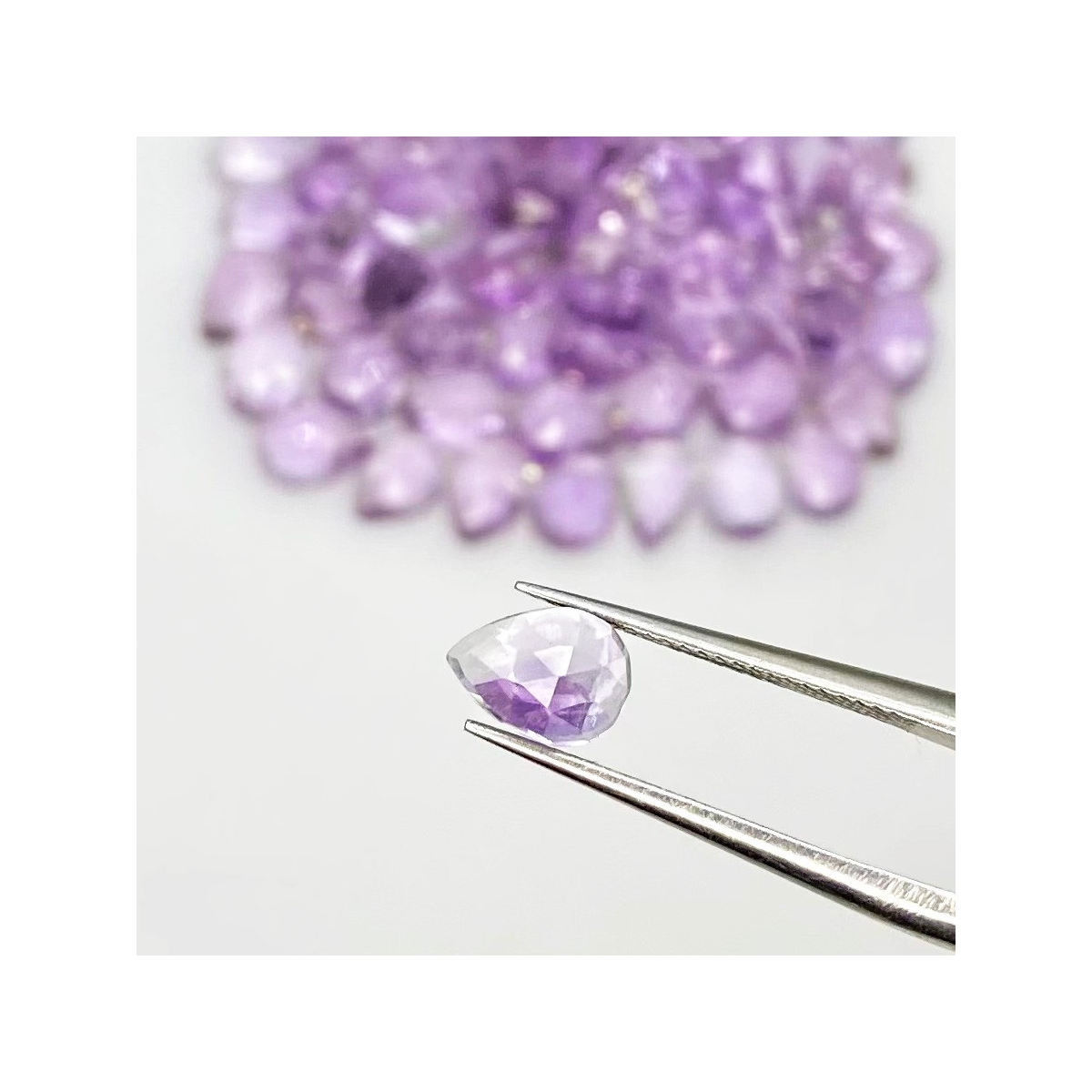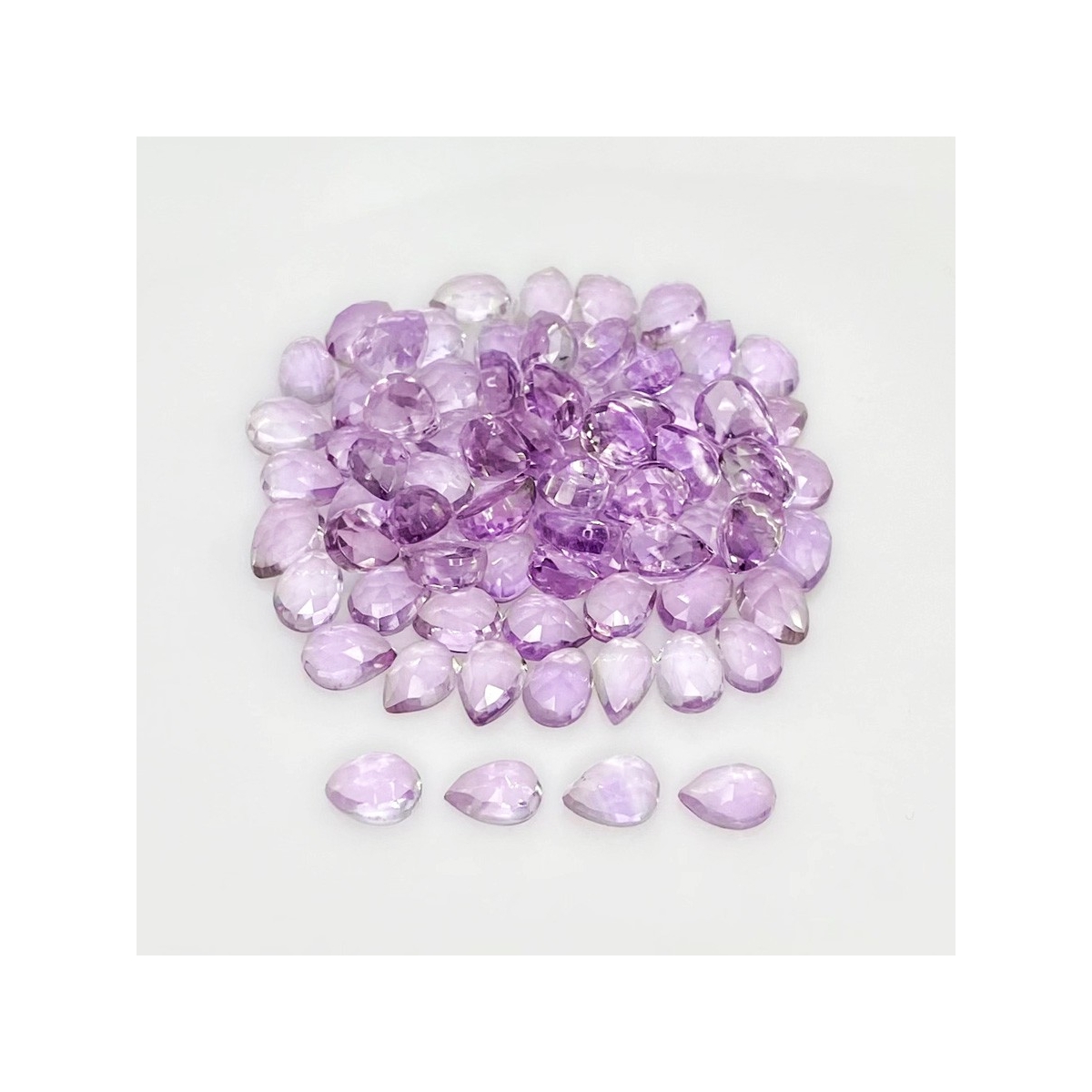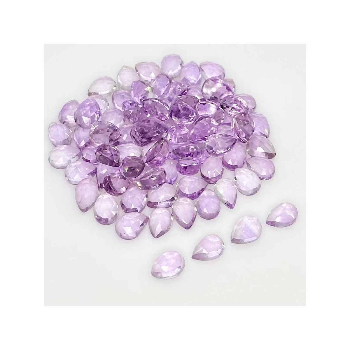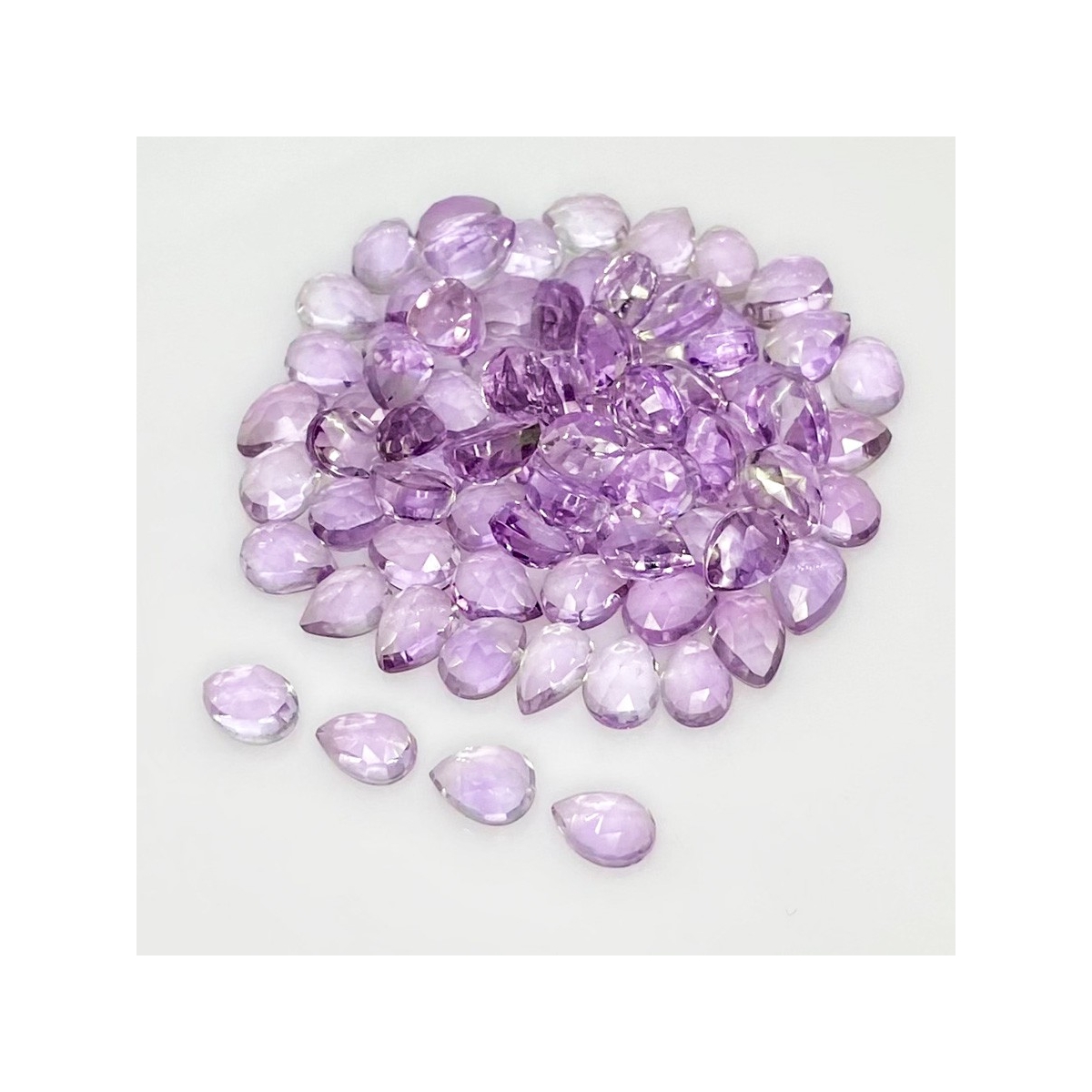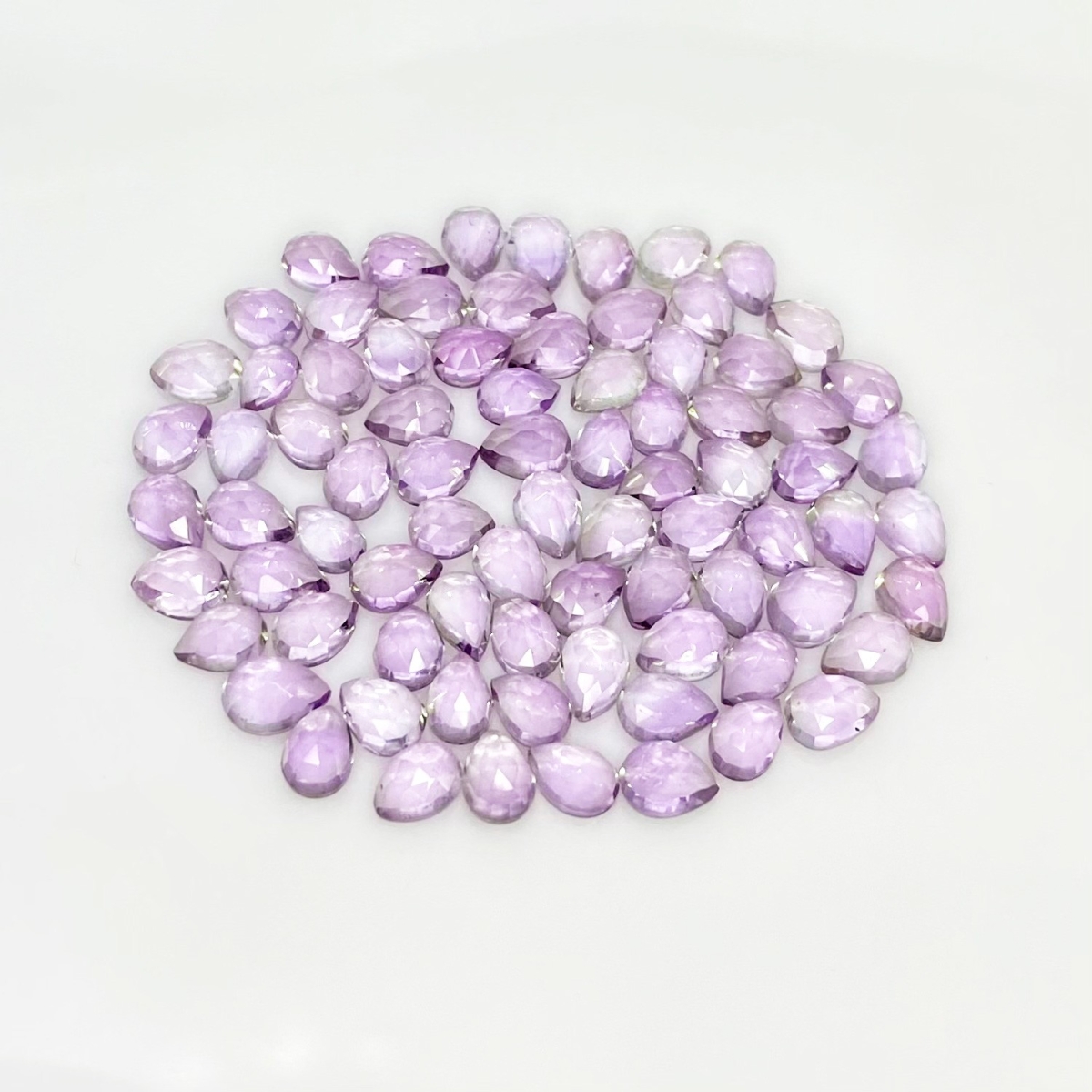 Buy This "AA" Grade 7x5mm Rose Cut Pear Shape Natural Pink Amethyst (Heated) Cabochons Parcel. You Will Receive 80 Pcs. With a Total Weight of 64.75 Carat. This Pink Amethyst Stone is Originated From Brazil and Masterfully Handcrafted by The Experienced Artisans of Jaipur (India).