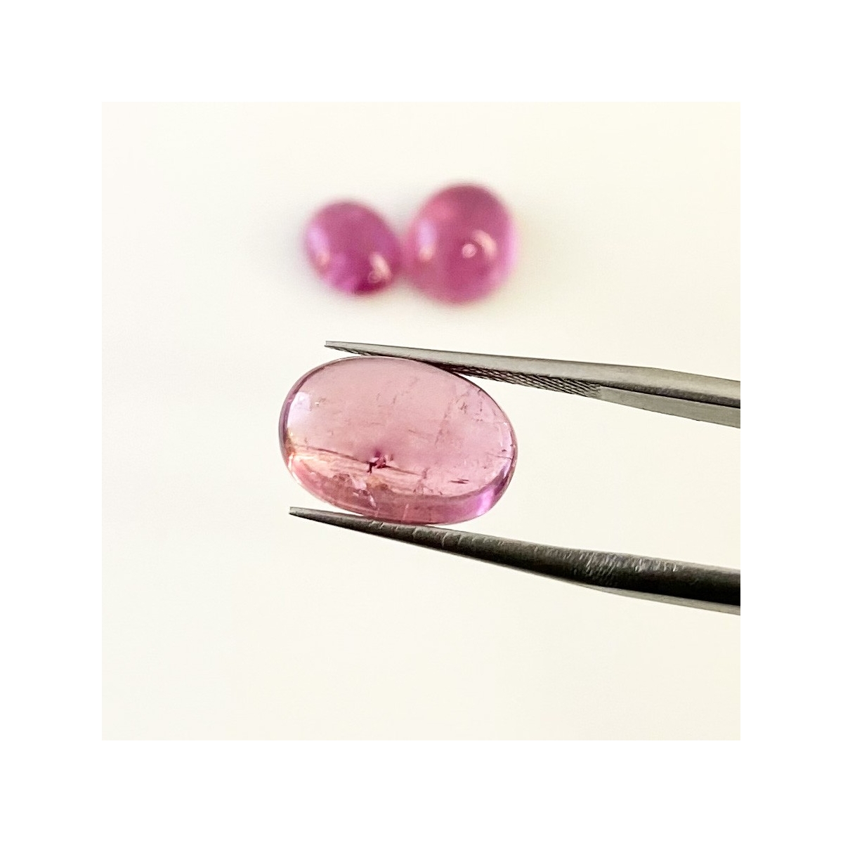 Buy This "A" Grade 10.5x8-13.5x9mm Smooth Oval Shape Natural Pink Tourmaline (Heated) Cabochons Parcel. You Will Receive 3 Pcs. With a Total Weight of 14.38 Carat. This Pink Tourmaline Stone is Originated From Africa and Masterfully Handcrafted by The Experienced Artisans of Jaipur (India).