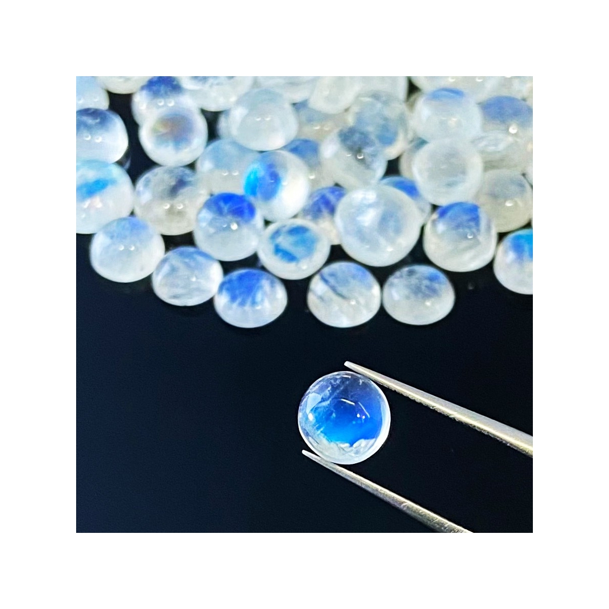 Buy This "AA" Grade 8-12mm Smooth Round Shape Natural Rainbow Moonstone (Un-Treated) Cabochons Parcel. You Will Receive 109 Pcs. With a Total Weight of 280 Cts.. This Rainbow Moonstone Stone is Originated From India and Masterfully Handcrafted by The Experienced Artisans of Jaipur (India).