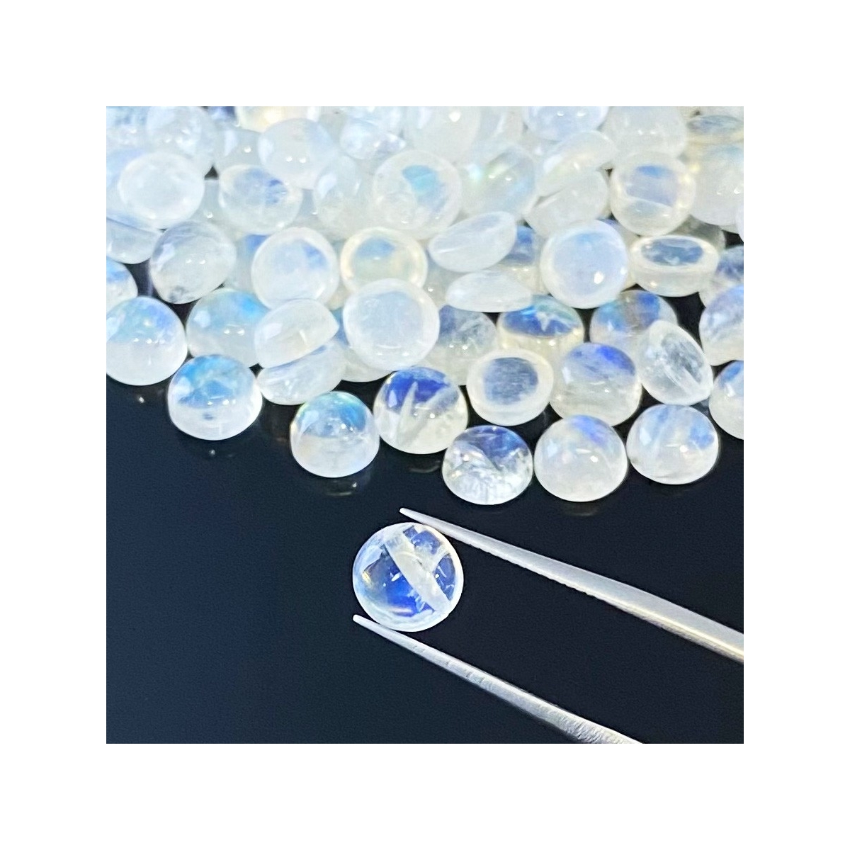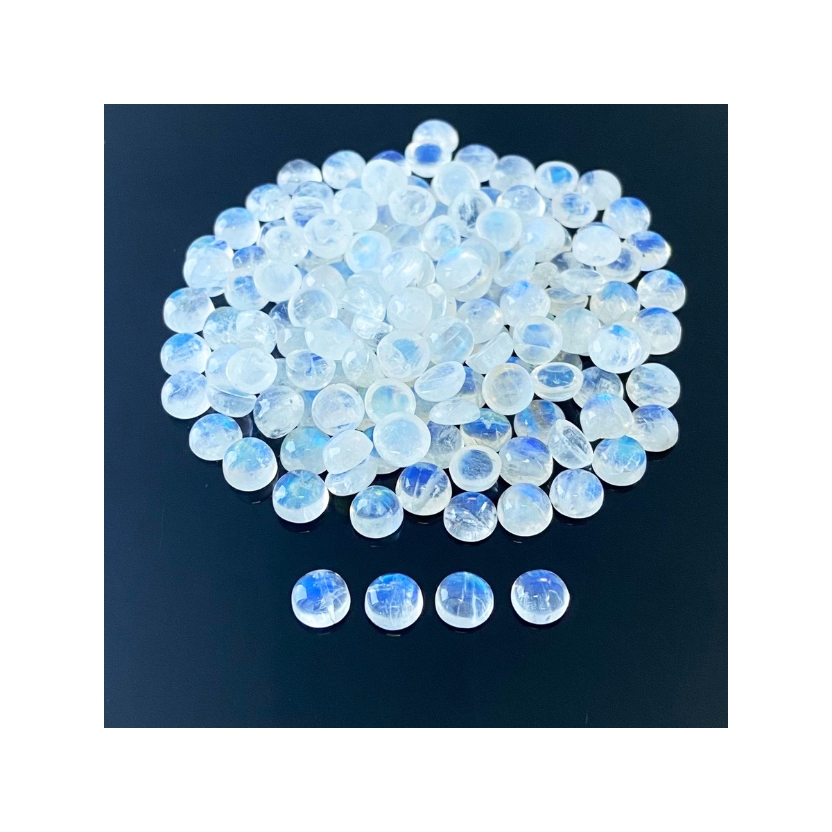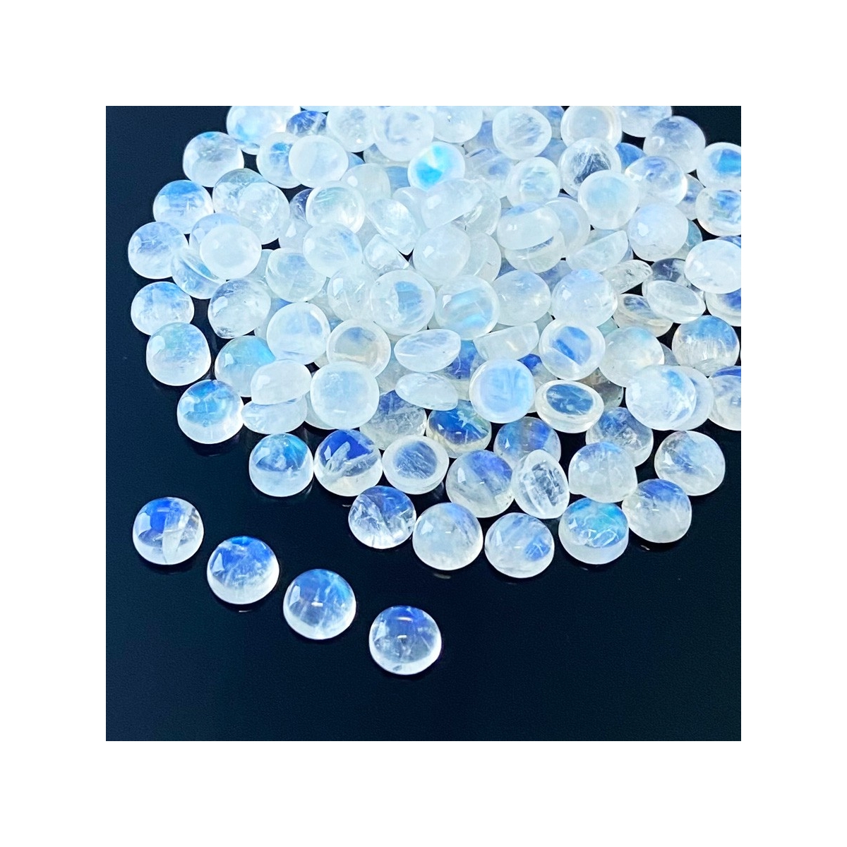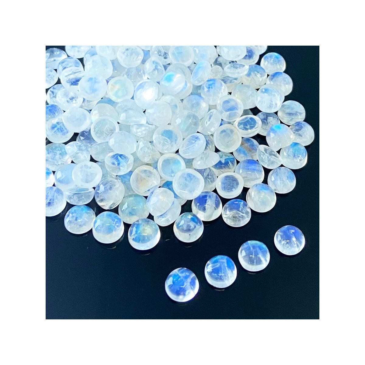 Buy This "AA" Grade 7mm Smooth Round Shape Natural Rainbow Moonstone (Un-Treated) Cabochons Parcel. You Will Receive 185 Pcs. With a Total Weight of 276.40 Cts.. This Rainbow Moonstone Stone is Originated From India and Masterfully Handcrafted by The Experienced Artisans of Jaipur (India).