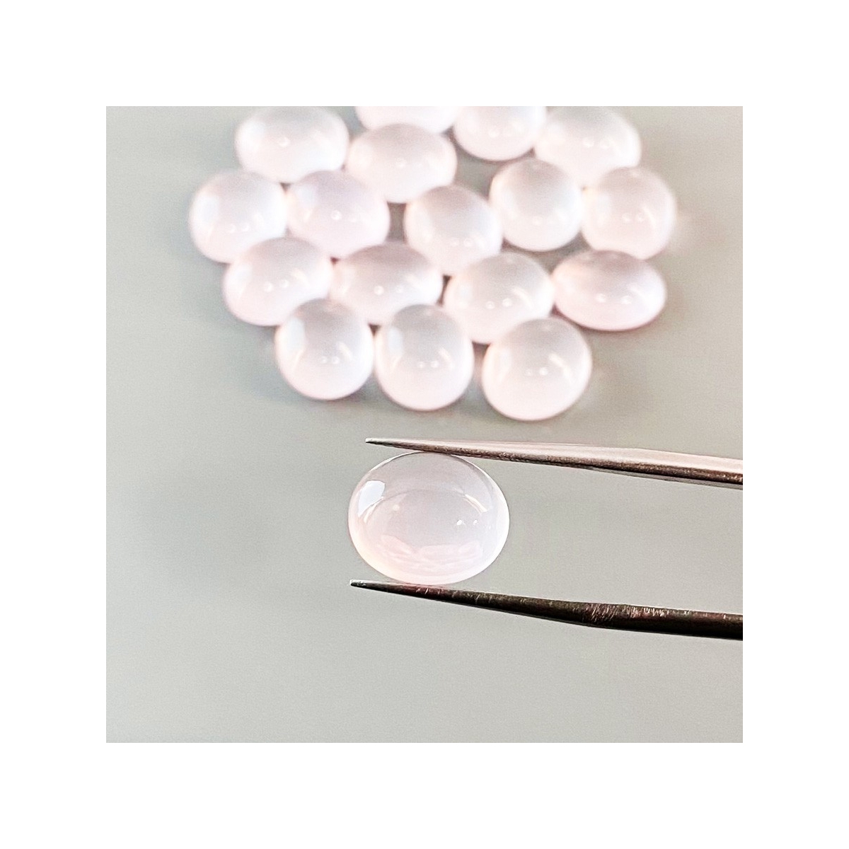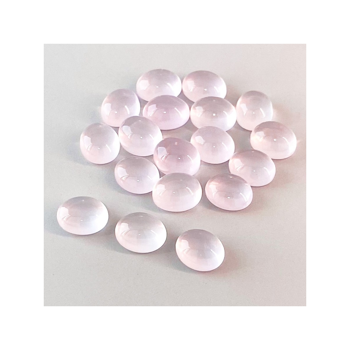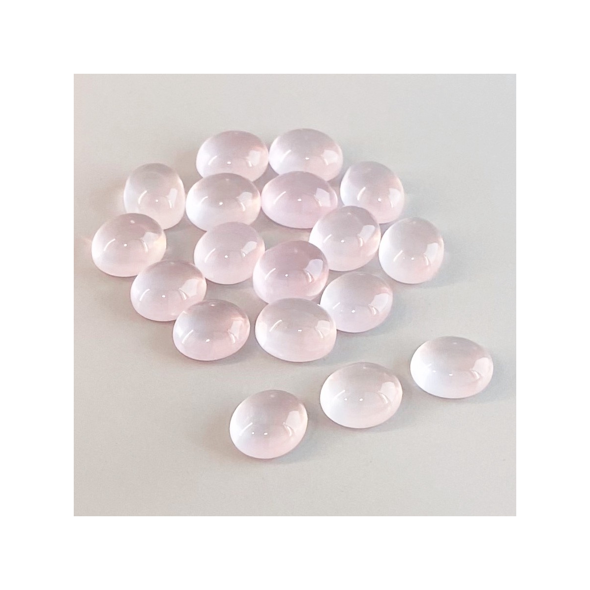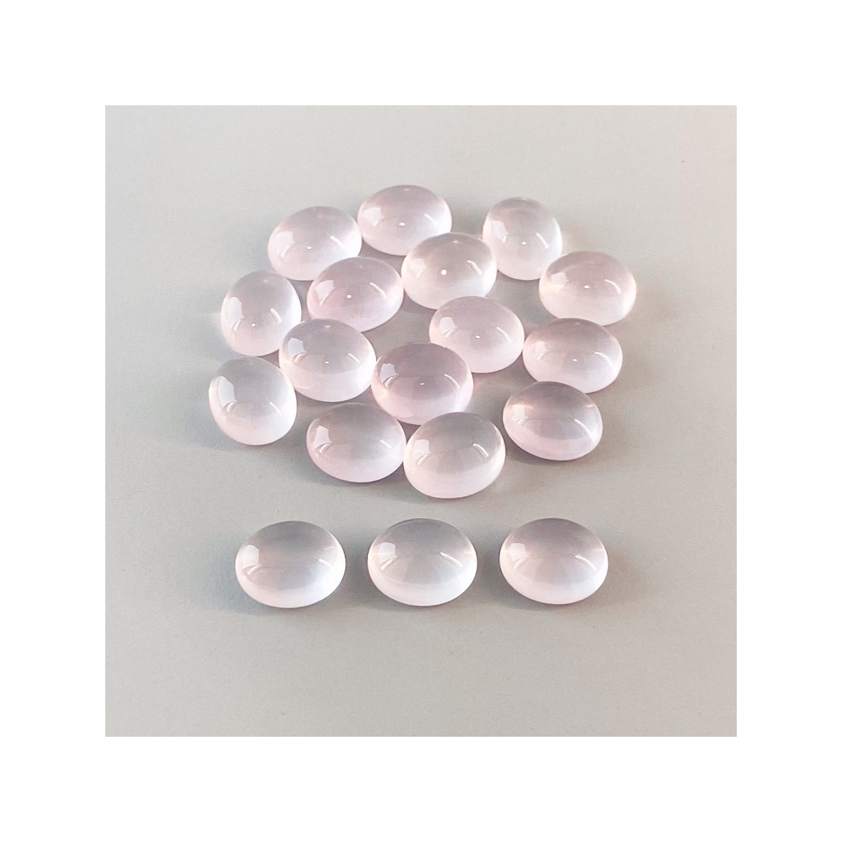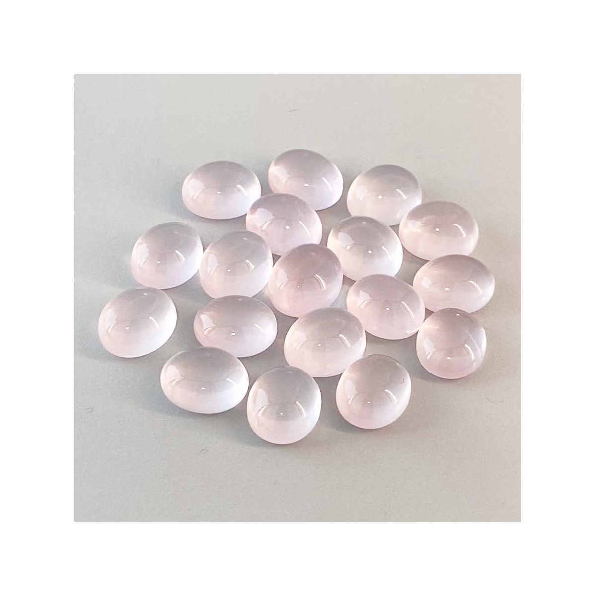 Buy This "AA" Grade 11x9mm Smooth Oval Shape Natural Rose Quartz (Un-Treated) Cabochons Parcel. You Will Receive 18 Pcs. With a Total Weight of 77.95 Cts.. This Rose Quartz Stone is Originated From Africa and Masterfully Handcrafted by The Experienced Artisans of Jaipur (India).