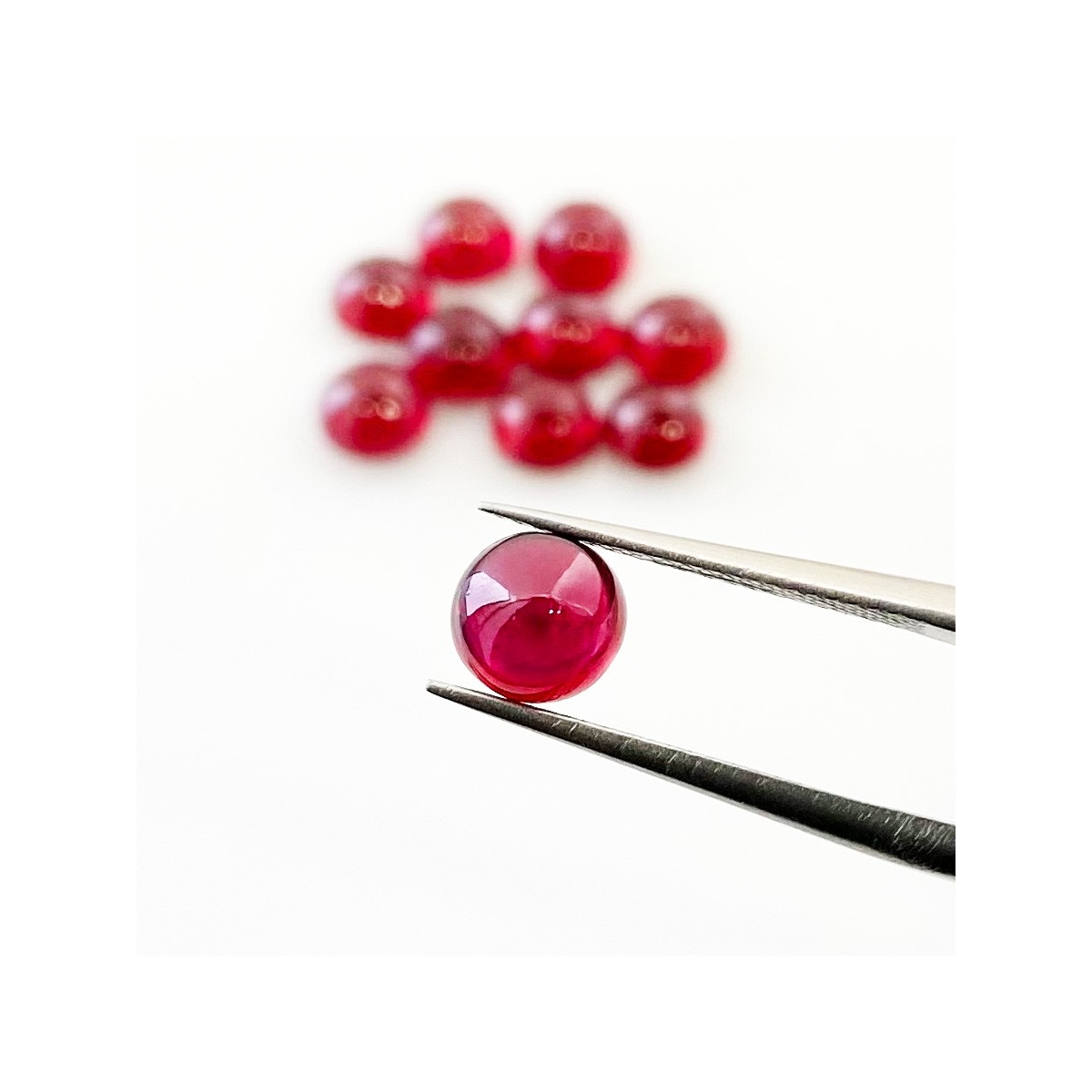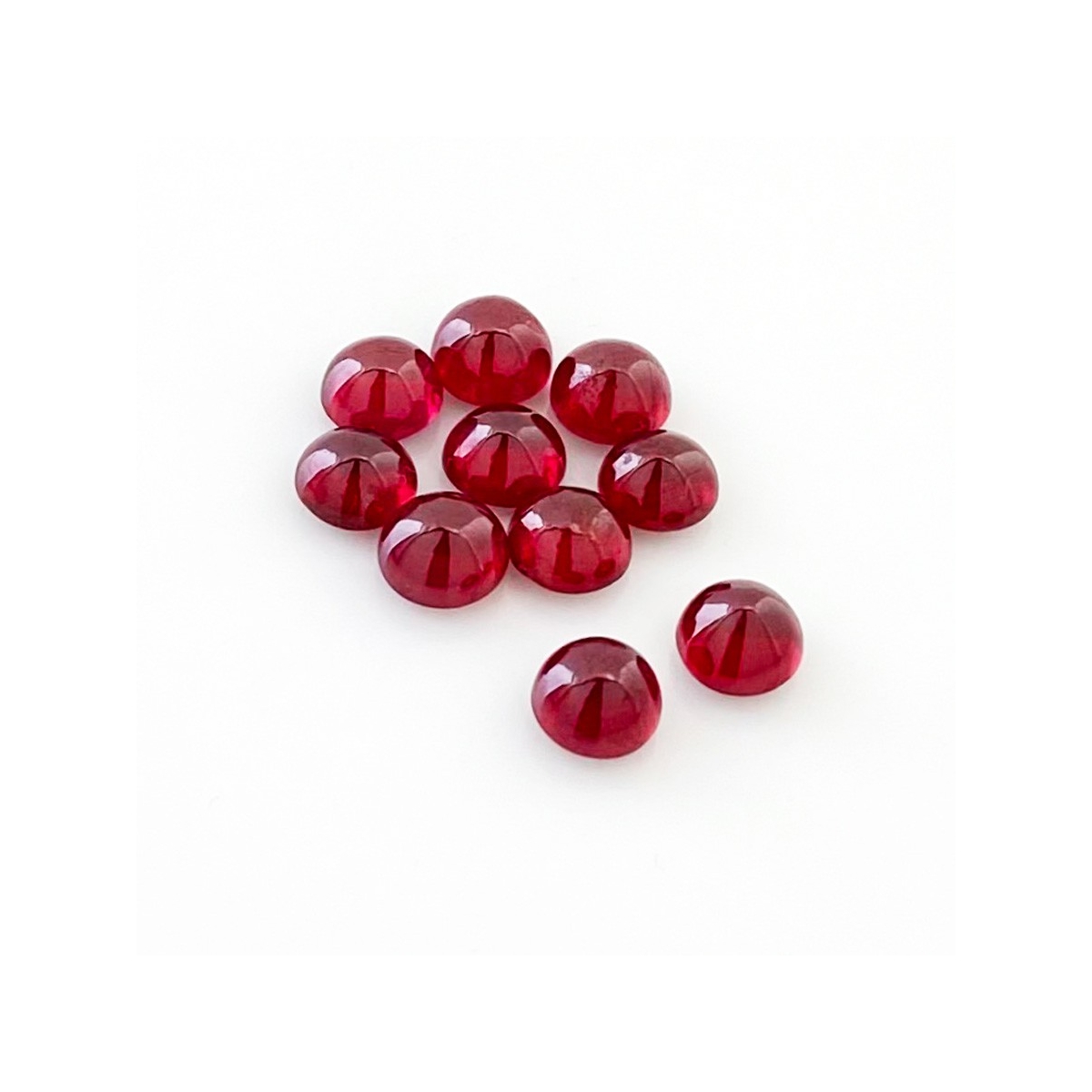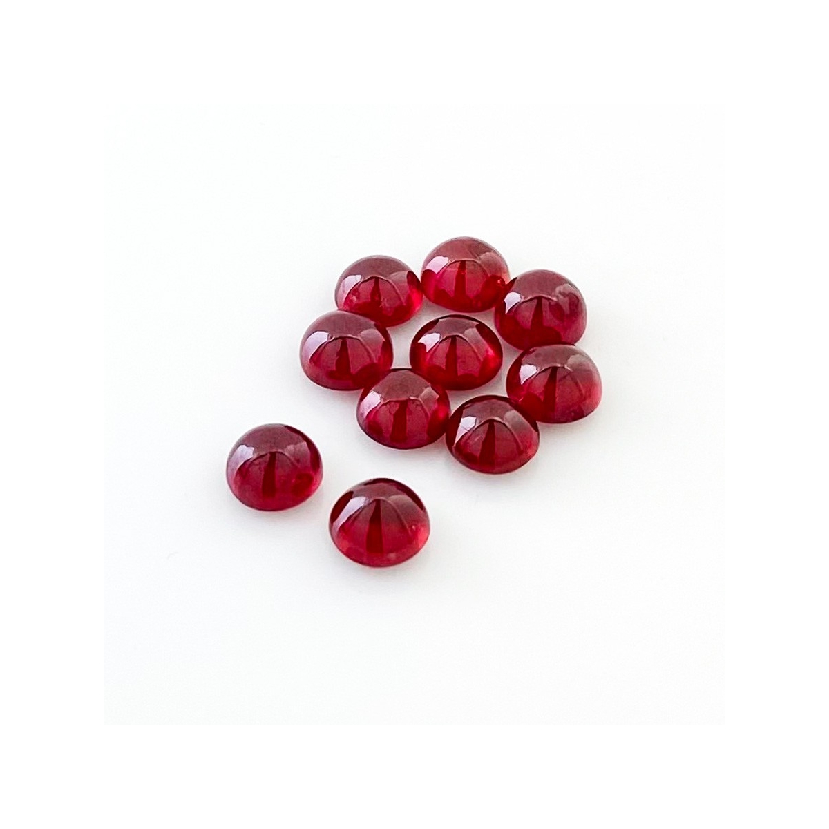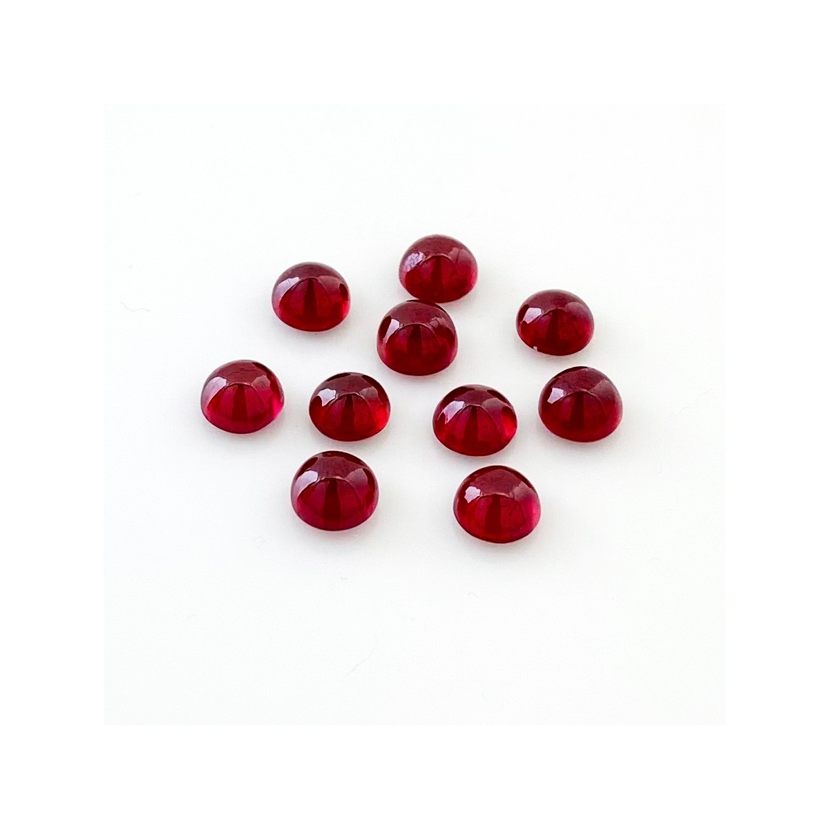Buy This "AA" Grade 6mm Smooth Round Shape Natural Ruby (Glass Filled) Cabochons Parcel. You Will Receive 10 Pcs. With a Total Weight of 14.50 Cts.. This Ruby Stone is Originated From Africa and Masterfully Handcrafted by The Experienced Artisans of Jaipur (India).