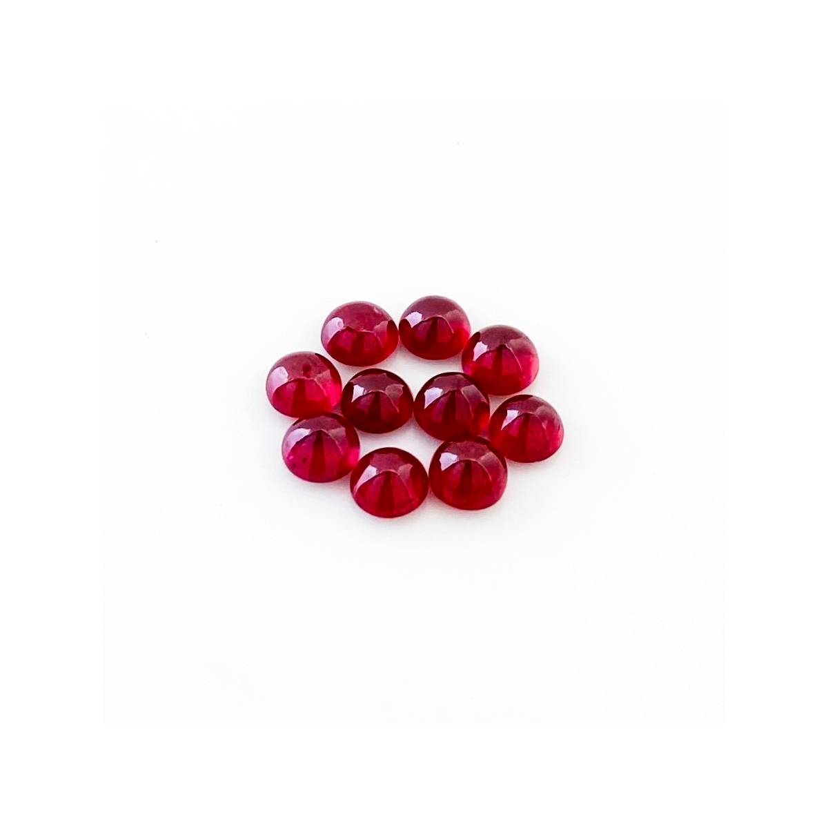 Buy This "AA" Grade 6mm Smooth Round Shape Natural Ruby (Glass Filled) Cabochons Parcel. You Will Receive 10 Pcs. With a Total Weight of 13.45 Cts.. This Ruby Stone is Originated From Africa and Masterfully Handcrafted by The Experienced Artisans of Jaipur (India).