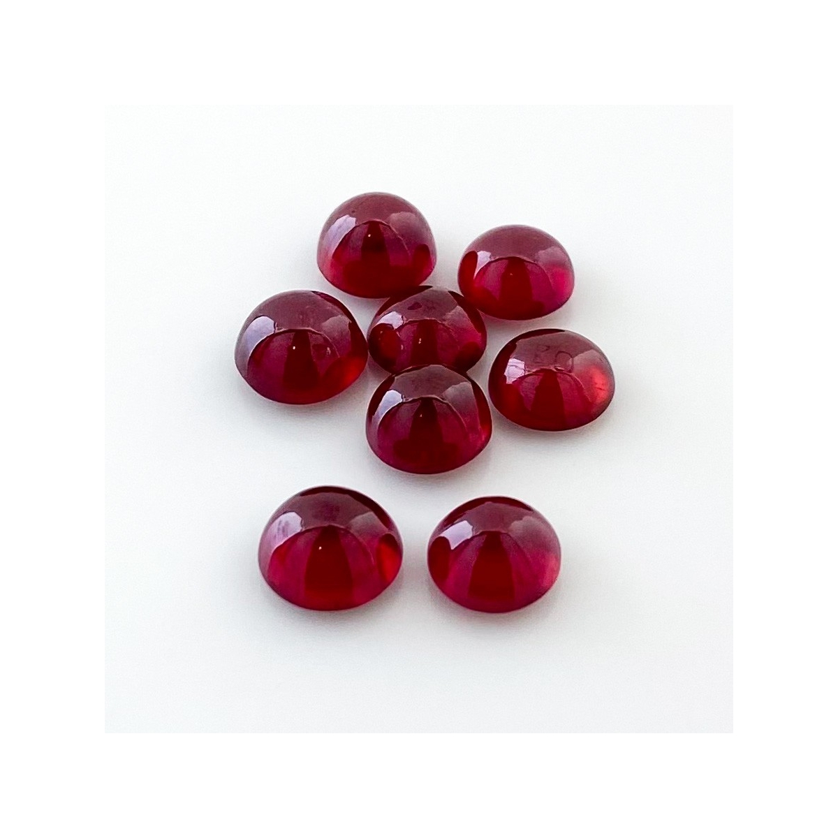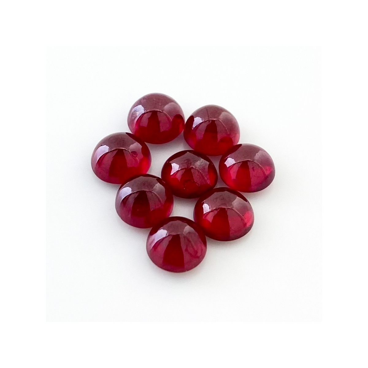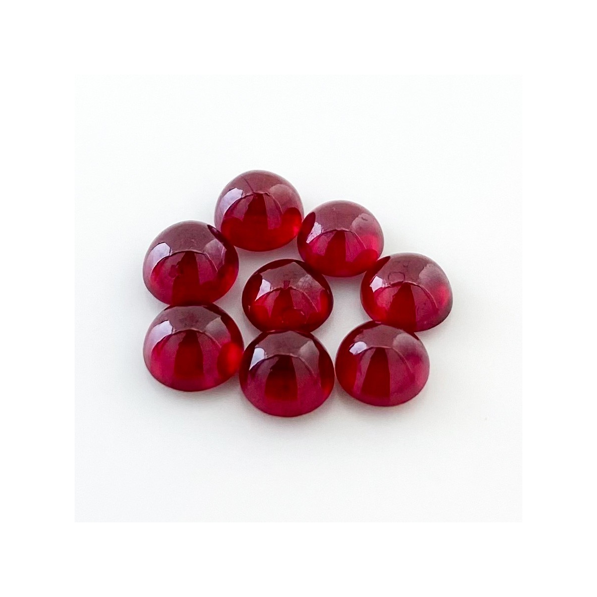 Buy This "AA" Grade 7-7.5mm Smooth Round Shape Natural Ruby (Glass Filled) Cabochons Parcel. You Will Receive 8 Pcs. With a Total Weight of 17.55 Cts.. This Ruby Stone is Originated From Africa and Masterfully Handcrafted by The Experienced Artisans of Jaipur (India).