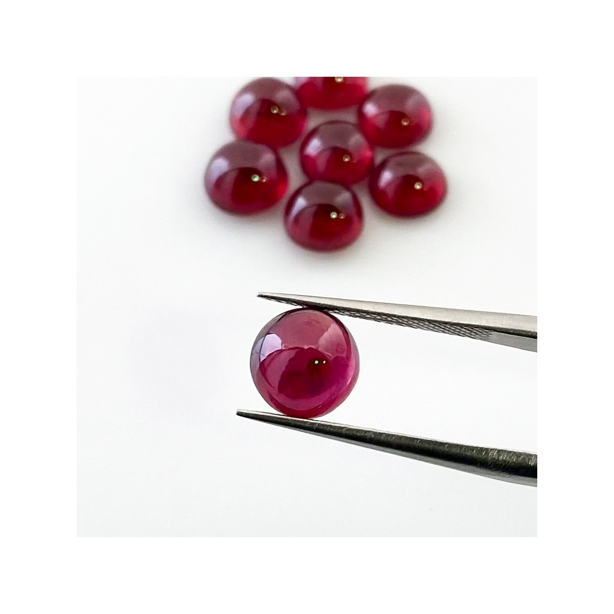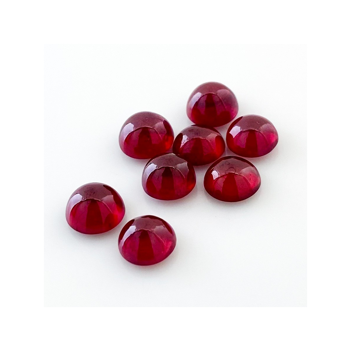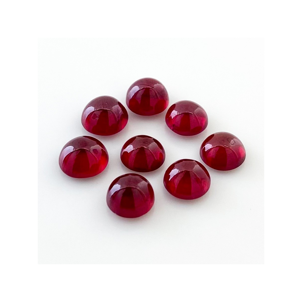 Buy This "AA" Grade 7-7.5mm Smooth Round Shape Natural Ruby (Glass Filled) Cabochons Parcel. You Will Receive 8 Pcs. With a Total Weight of 17.55 Cts.. This Ruby Stone is Originated From Africa and Masterfully Handcrafted by The Experienced Artisans of Jaipur (India).