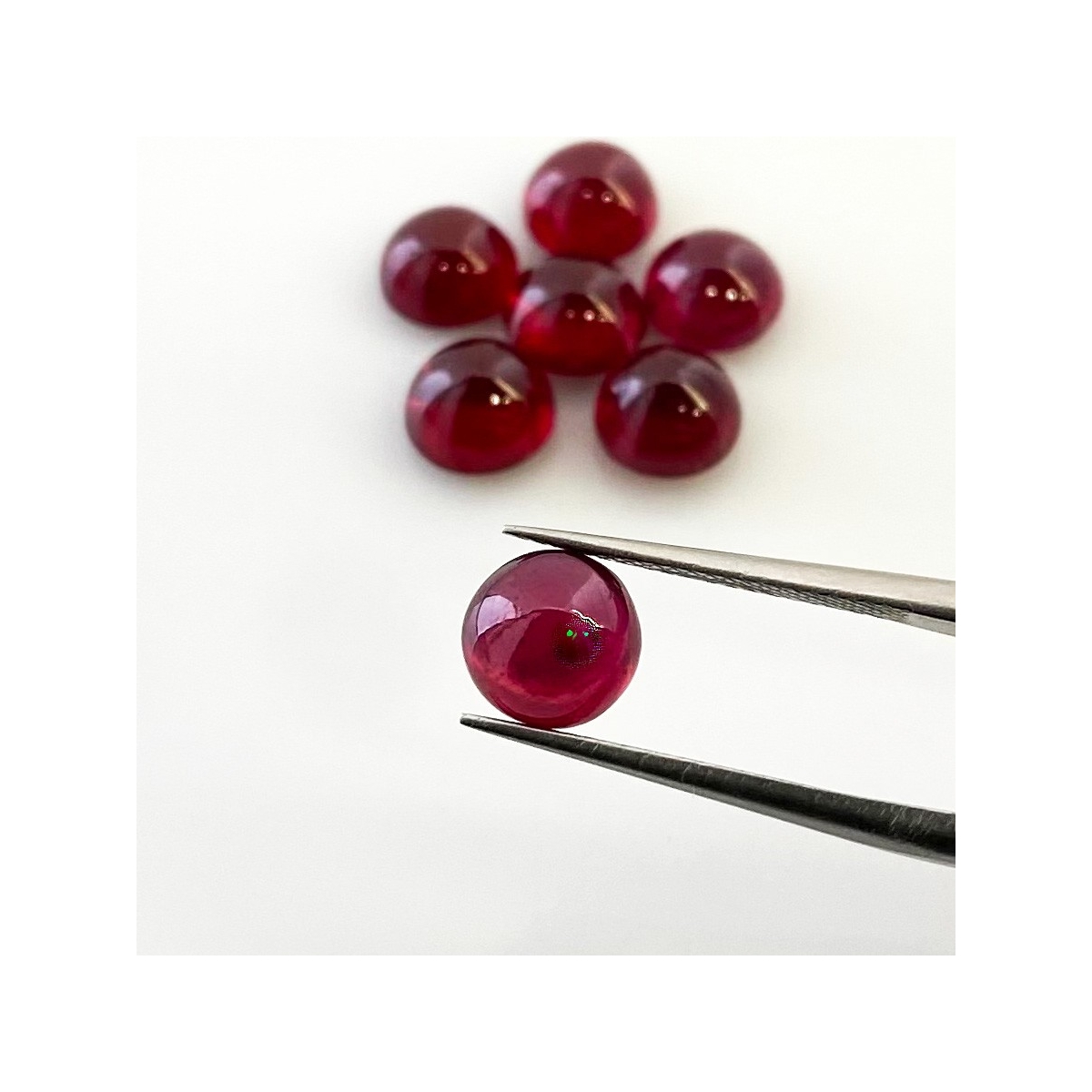 Buy This "AA" Grade 7mm Smooth Round Shape Natural Ruby (Glass Filled) Cabochons Parcel. You Will Receive 7 Pcs. With a Total Weight of 15 Cts.. This Ruby Stone is Originated From Africa and Masterfully Handcrafted by The Experienced Artisans of Jaipur (India).
