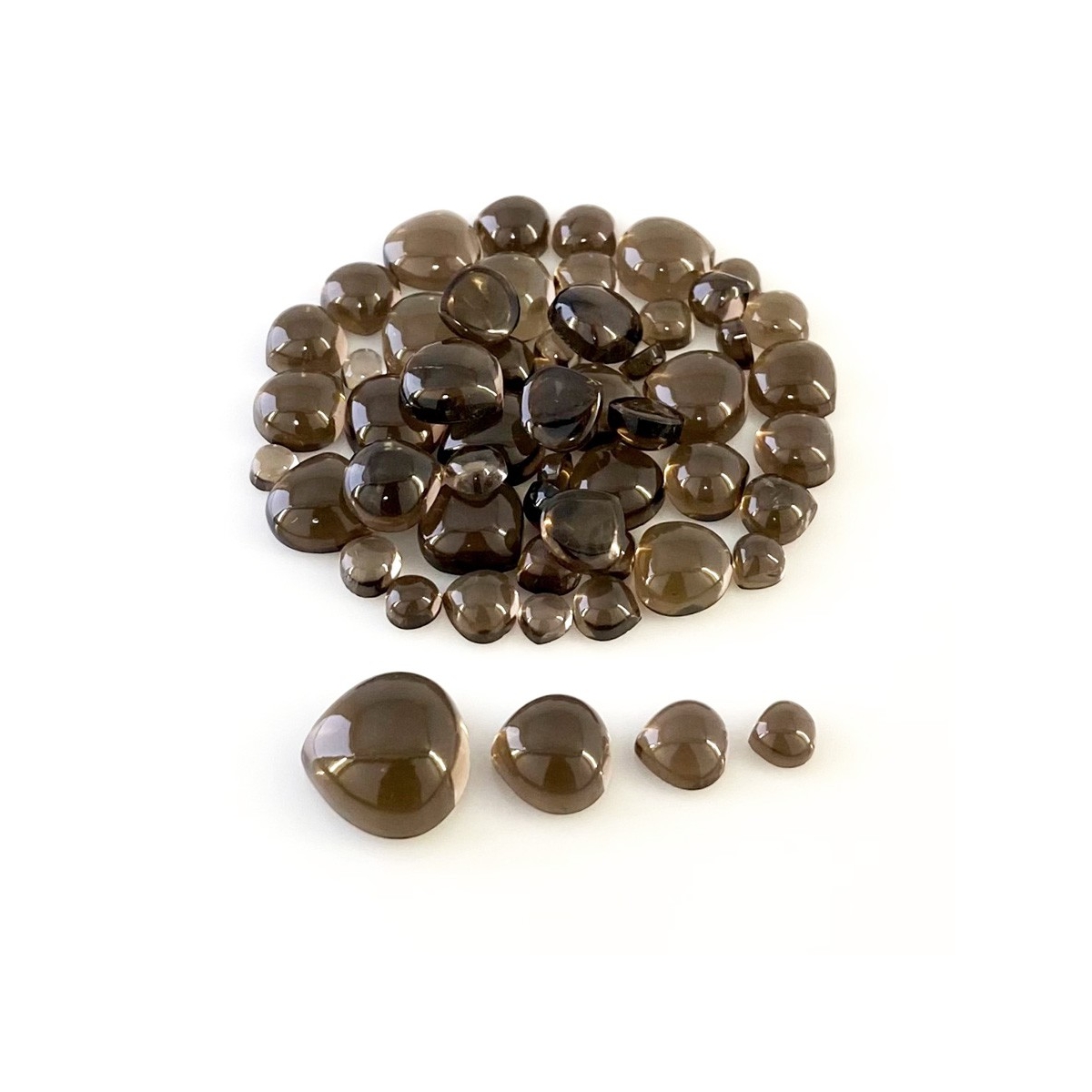 Buy This "AAA" Grade 4-14mm Smooth Heart Shape Natural Smoky Quartz (Heated) Cabochons Parcel. You Will Receive 55 Pcs. With a Total Weight of 105.10 Carat. This Smoky Quartz Stone is Originated From Brazil and Masterfully Handcrafted by The Experienced Artisans of Jaipur (India).