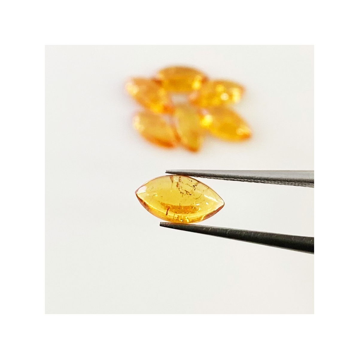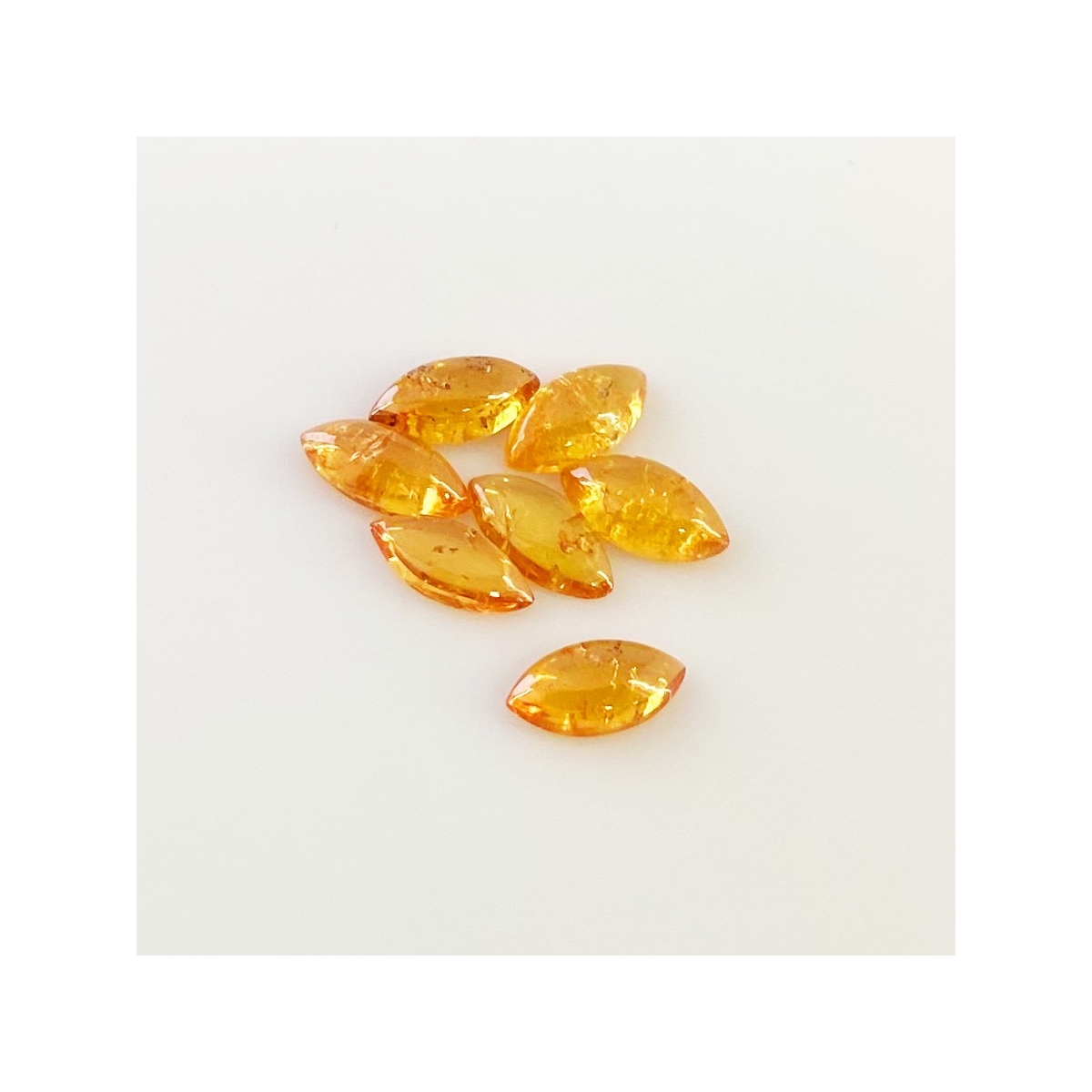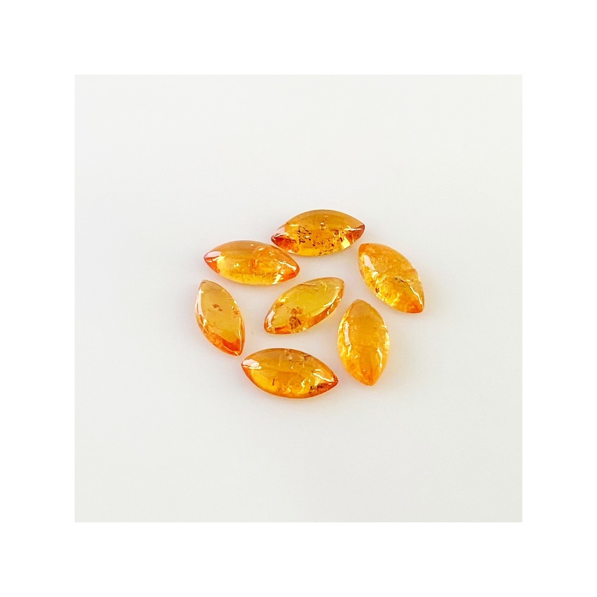Buy This "AA" Grade 10x5mm Smooth Marquise Shape Natural Spessartite Garnet (Un-Treated) Cabochons Parcel. You Will Receive 7 Pcs. With a Total Weight of 8.40 Carat. This Spessartite Garnet Stone is Originated From Africa and Masterfully Handcrafted by The Experienced Artisans of Jaipur (India).