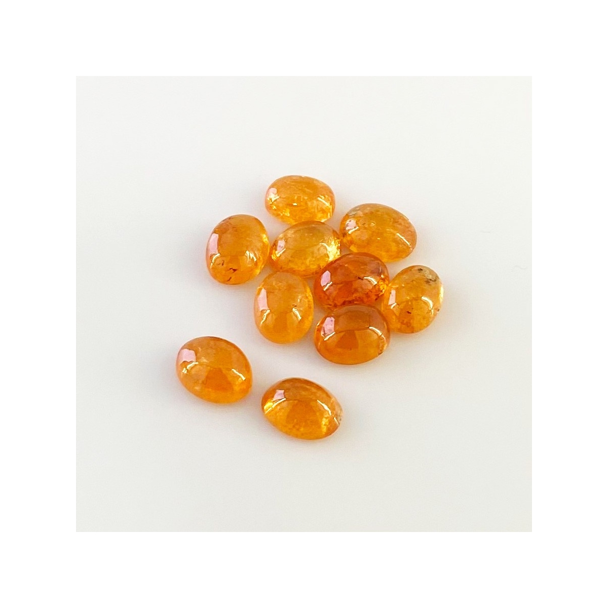 Buy This "A" Grade 8x6mm Smooth Oval Shape Natural Spessartite Garnet (Un-Treated) Cabochons Parcel. You Will Receive 10 Pcs. With a Total Weight of 18.20 Carat. This Spessartite Garnet Stone is Originated From Africa and Masterfully Handcrafted by The Experienced Artisans of Jaipur (India).
