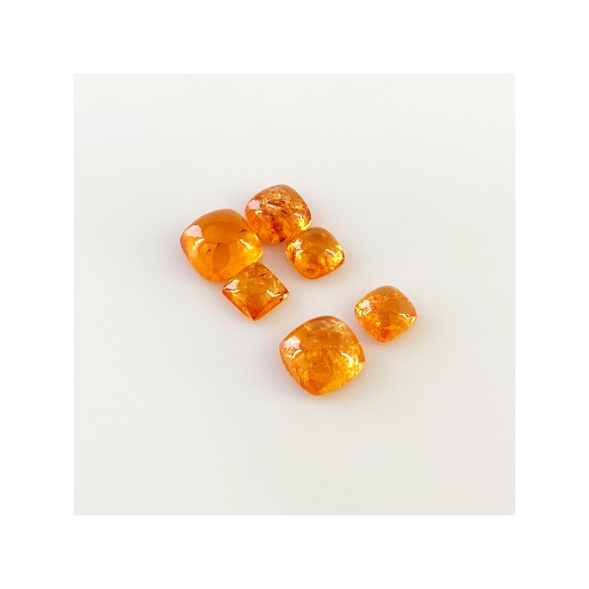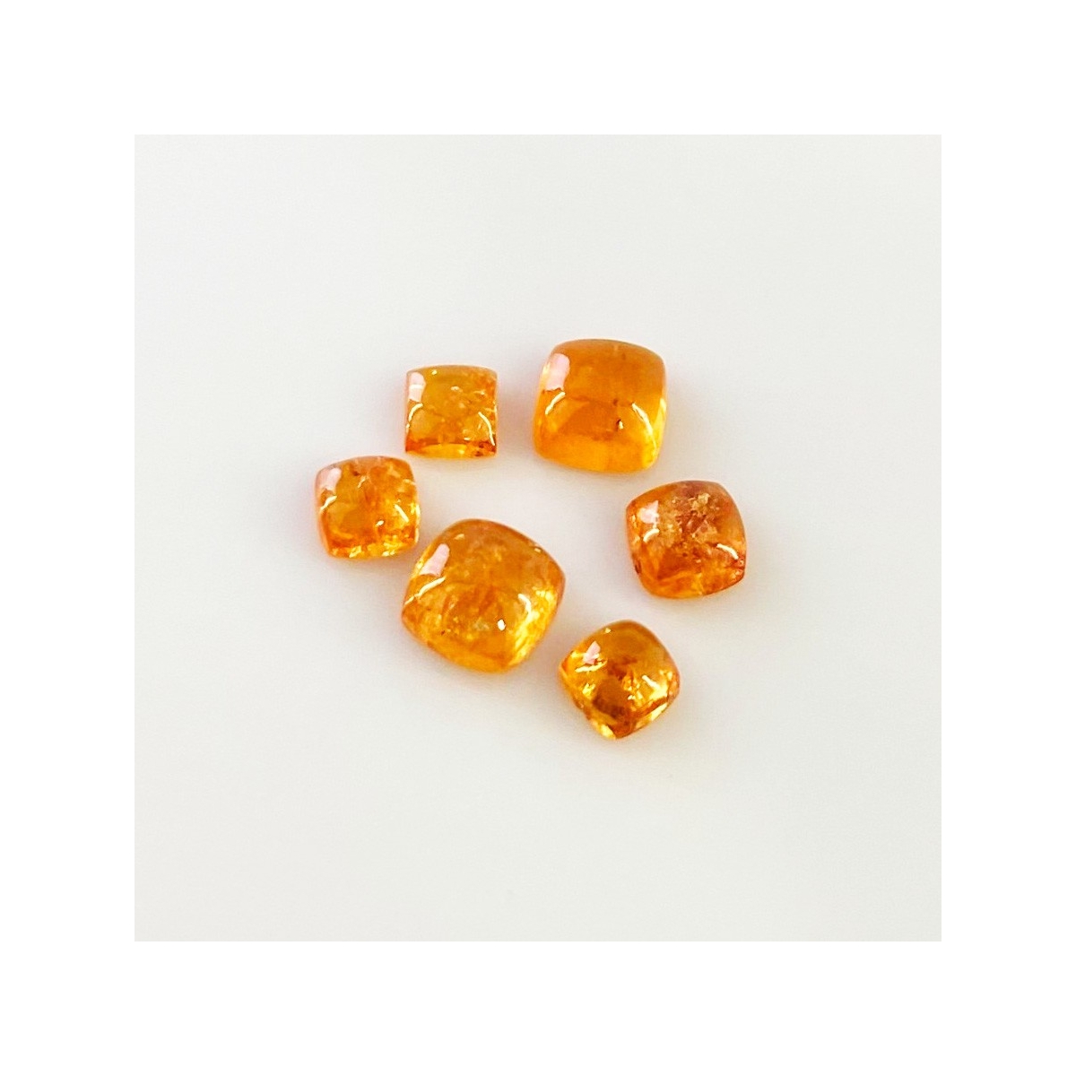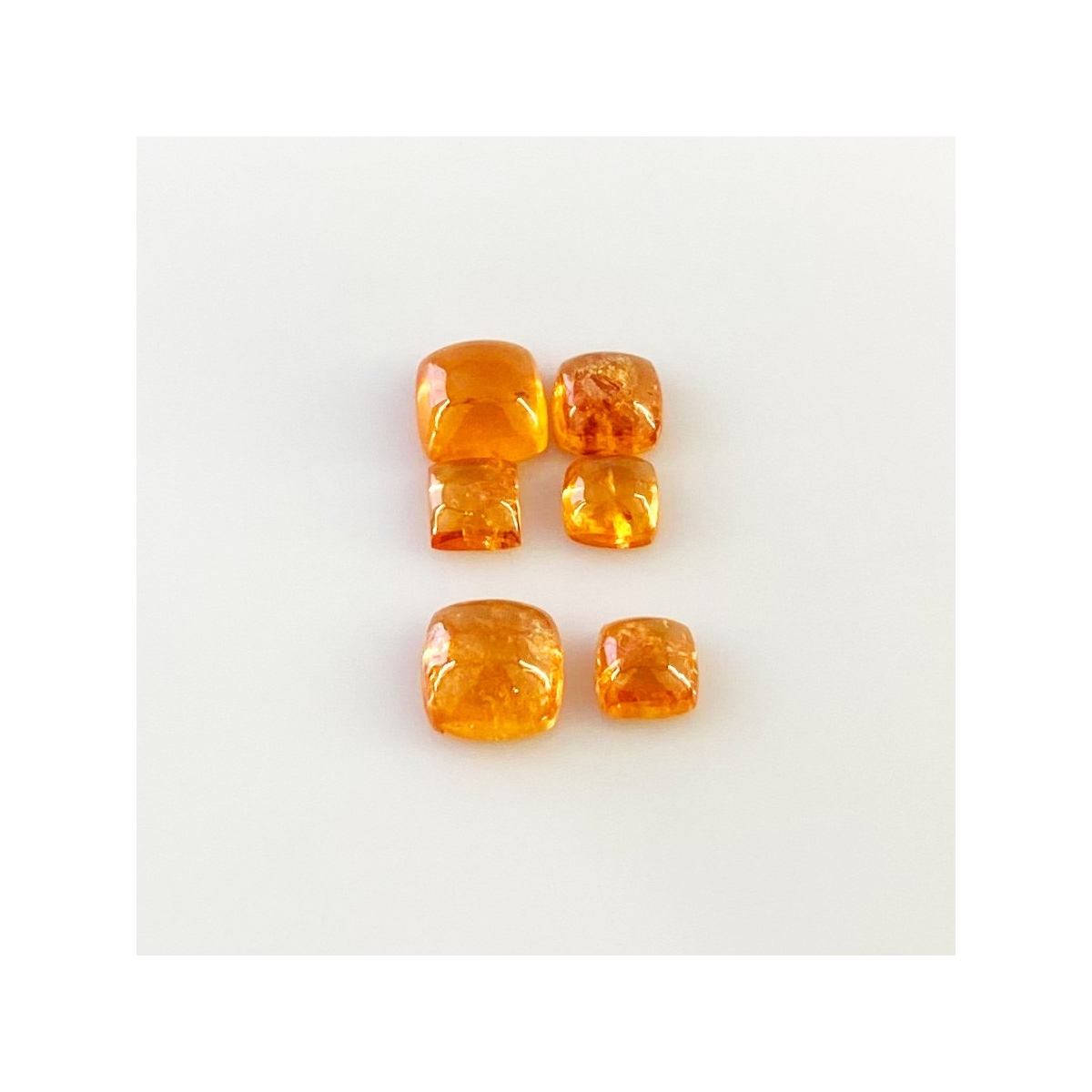 Buy This "AA" Grade 5-7mm Smooth Square Cushion Shape Natural Spessartite Garnet (Un-Treated) Cabochons Parcel. You Will Receive 6 Pcs. With a Total Weight of 9.50 Carat. This Spessartite Garnet Stone is Originated From Africa and Masterfully Handcrafted by The Experienced Artisans of Jaipur (India).