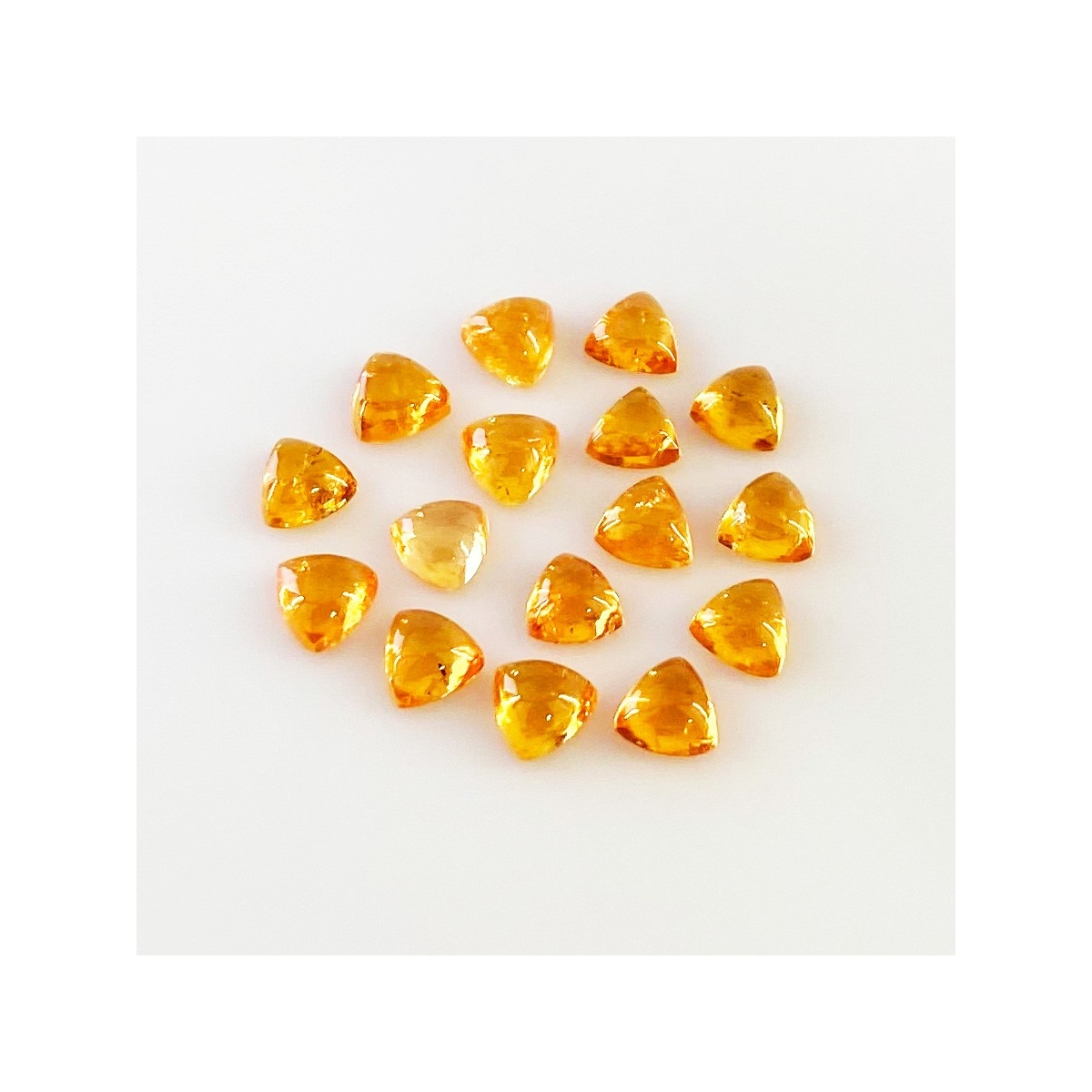 Buy This "AA" Grade 5mm Smooth Trillion Shape Natural Spessartite Garnet (Un-Treated) Cabochons Parcel. You Will Receive 16 Pcs. With a Total Weight of 11.50 Carat. This Spessartite Garnet Stone is Originated From Africa and Masterfully Handcrafted by The Experienced Artisans of Jaipur (India).