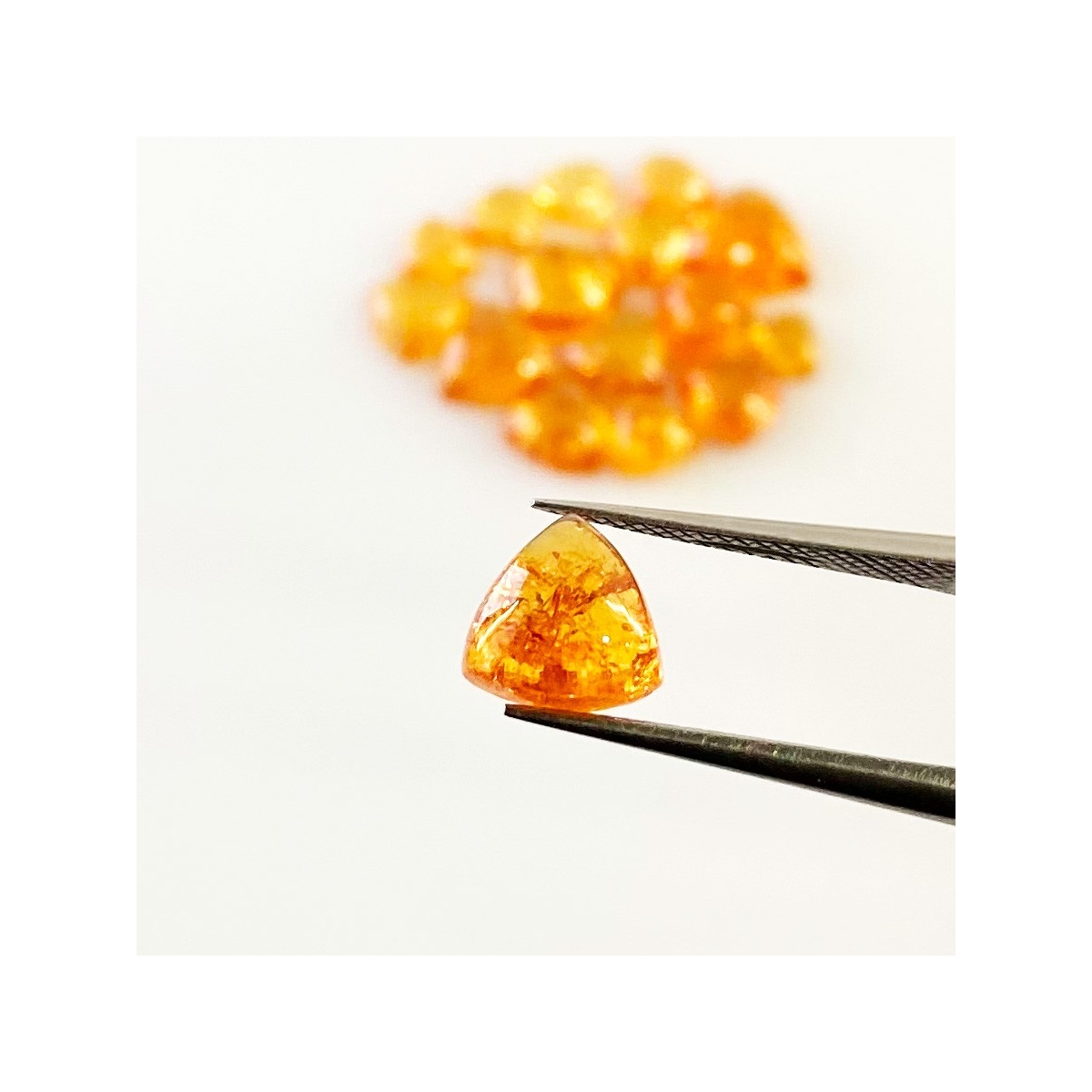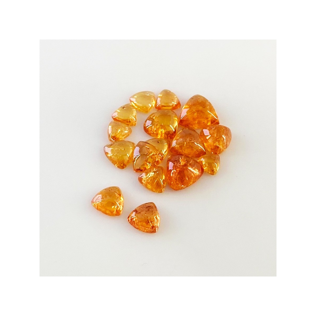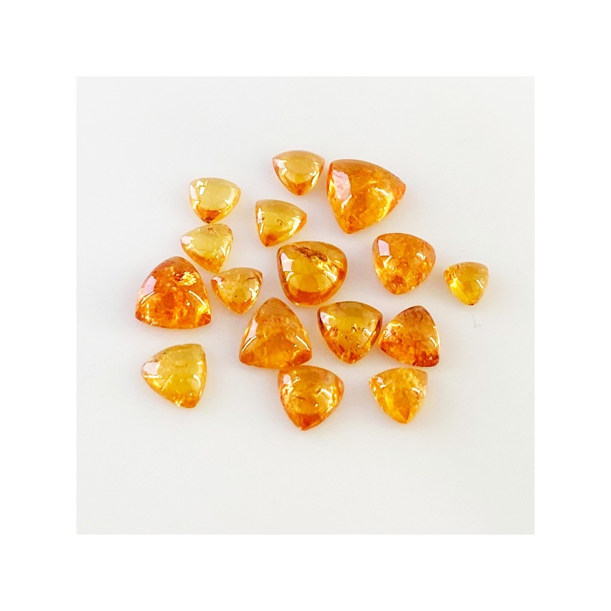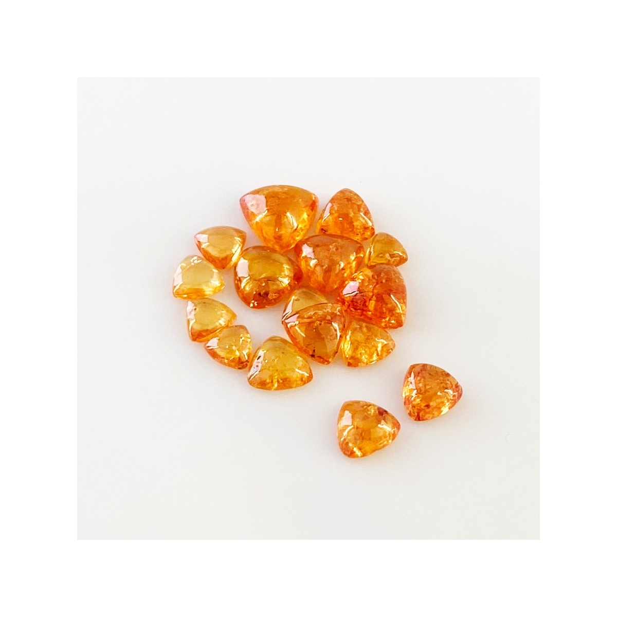 Buy This "AA" Grade 4-8 Smooth Trillion Shape Natural Spessartite Garnet (Un-Treated) Cabochons Parcel. You Will Receive 16 Pcs. With a Total Weight of 15.45 Carat. This Spessartite Garnet Stone is Originated From Africa and Masterfully Handcrafted by The Experienced Artisans of Jaipur (India).