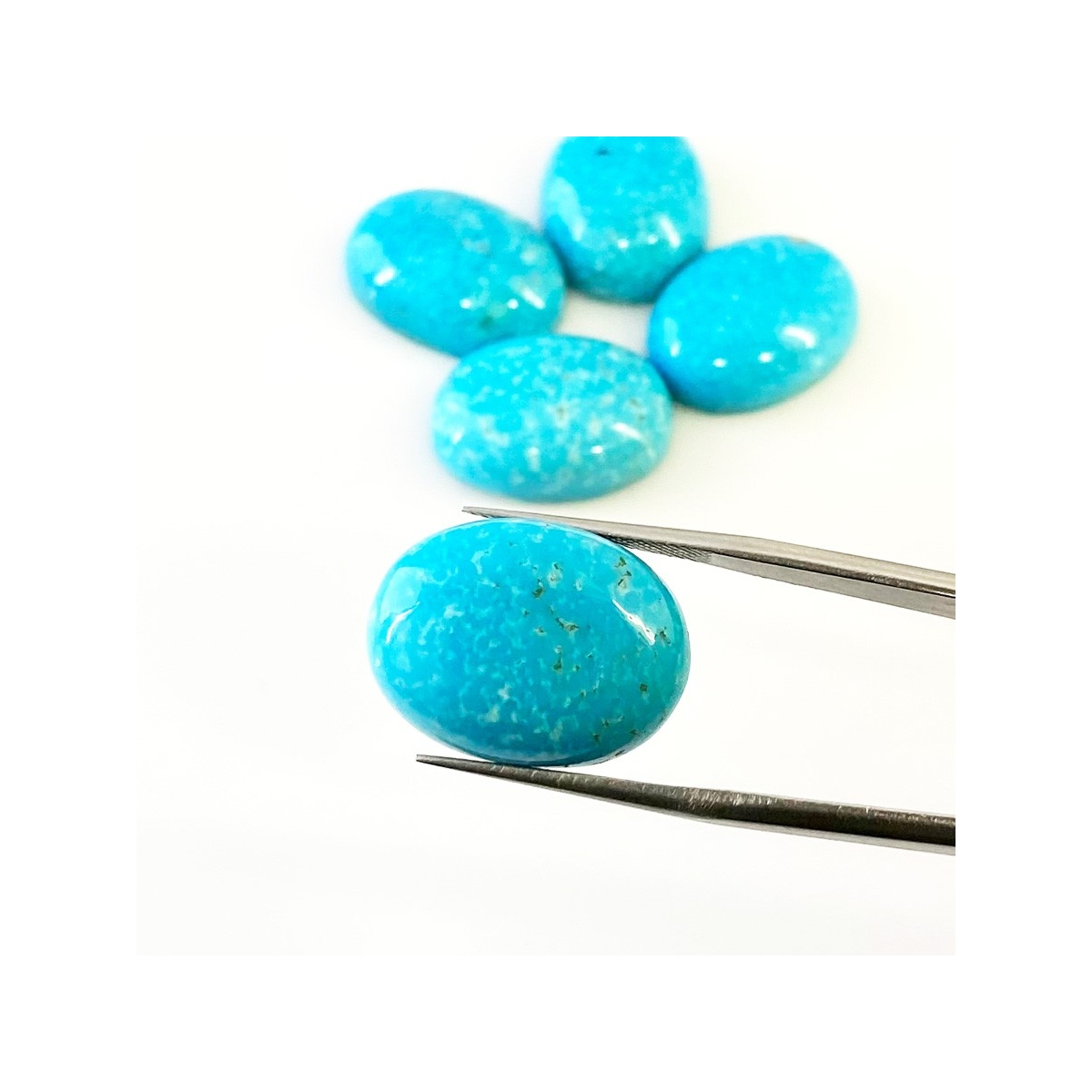 Buy This "AA" Grade 20x15mm Smooth Oval Shape Natural Turquoise (Stabilized) Cabochons Parcel. You Will Receive 5 Pcs. With a Total Weight of 78.85 Carat. This Turquoise Stone is Originated From Arizona and Masterfully Handcrafted by The Experienced Artisans of Jaipur (India).