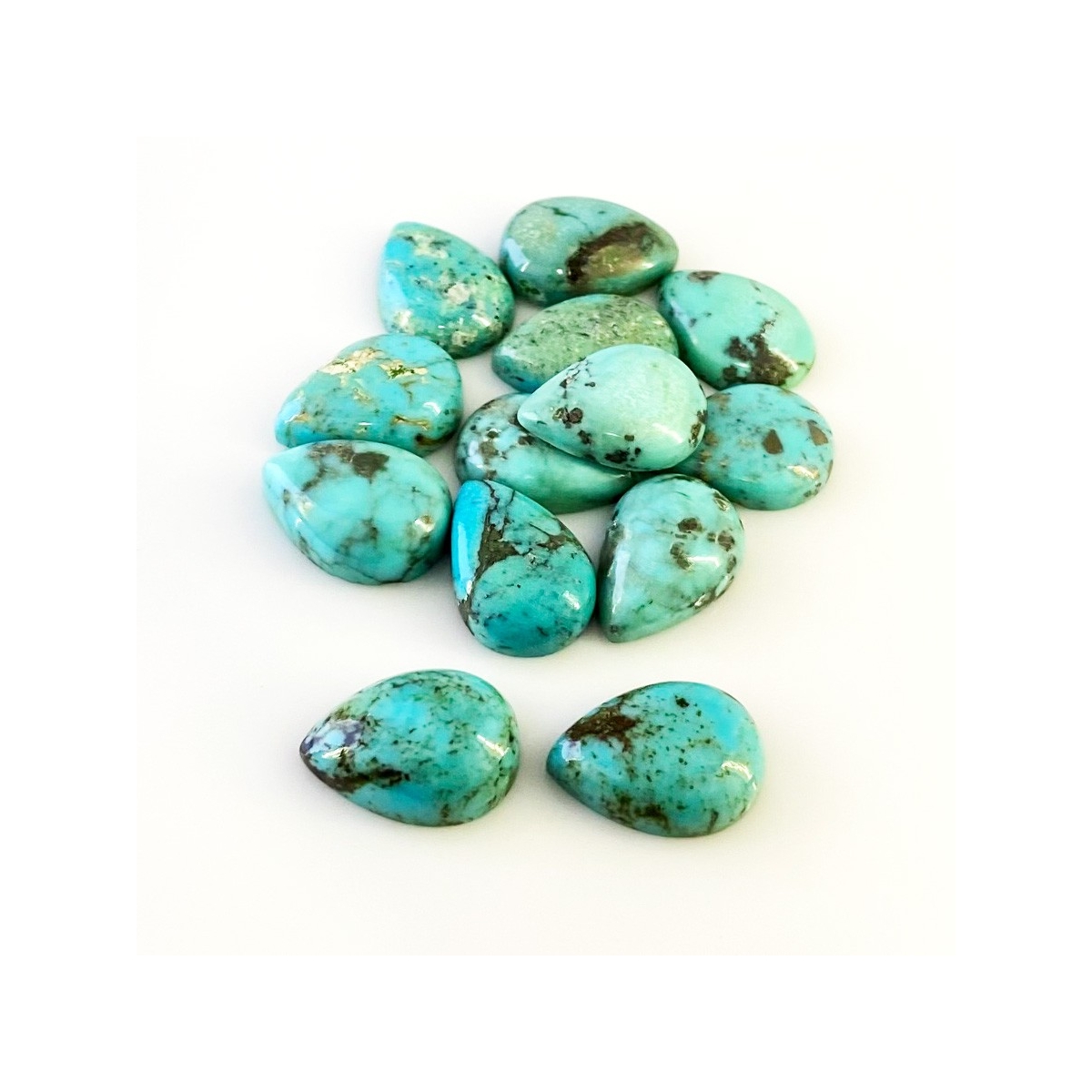 Buy This "A" Grade 18x13mm Smooth Pear Shape Natural Turquoise (Stabilized) Cabochons Parcel. You Will Receive 13 Pcs. With a Total Weight of 108.6 Carat. This Turquoise Stone is Originated From Arizona and Masterfully Handcrafted by The Experienced Artisans of Jaipur (India).