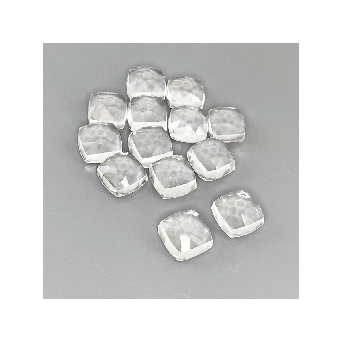 Buy This "AAA" Grade 9mm Rose Cut Square Cushion Shape Natural White Topaz (Un-Treated) Cabochons Parcel. You Will Receive 13 Pcs. With a Total Weight of 60.20 Cts.. This White Topaz Stone is Originated From Brazil and Masterfully Handcrafted by The Experienced Artisans of Jaipur (India).