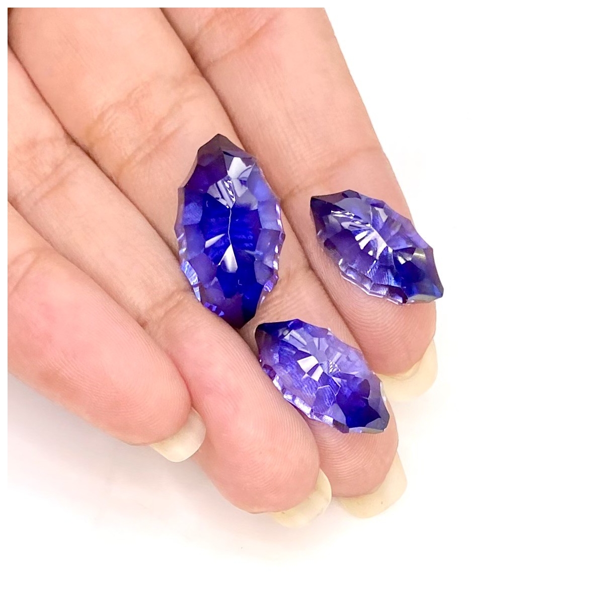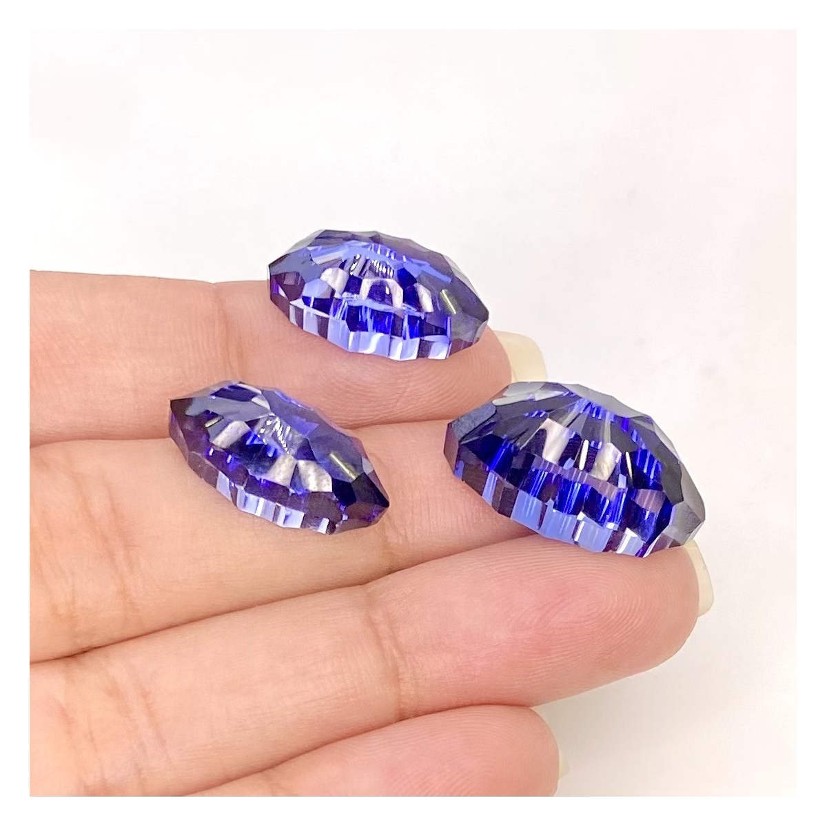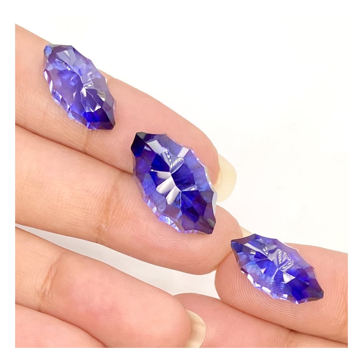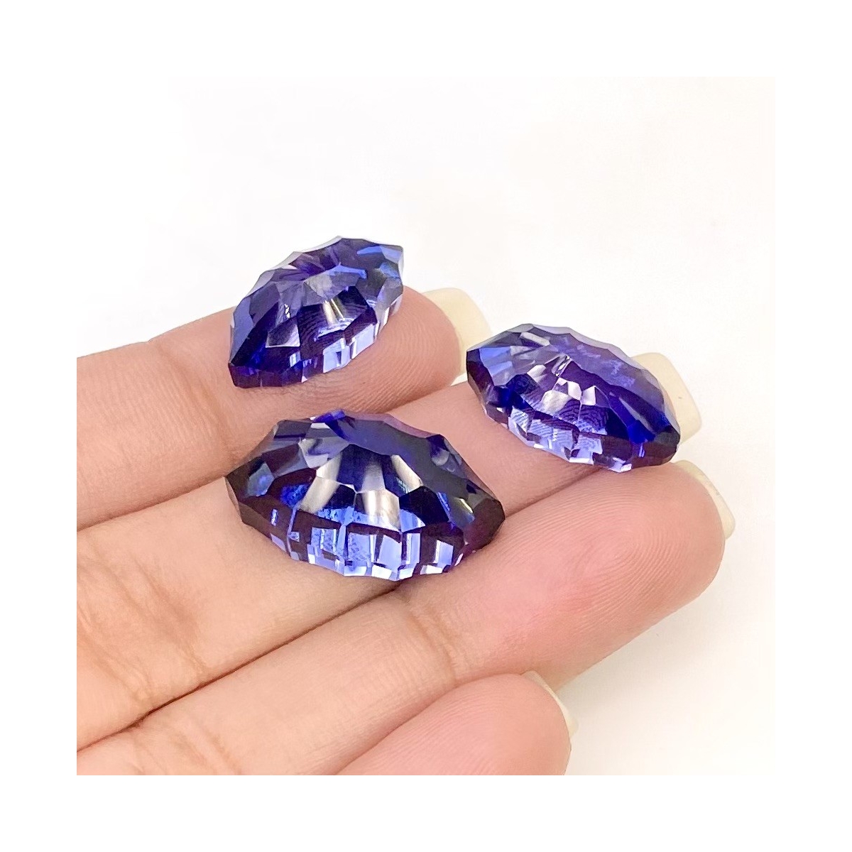 Buy This "AAA" Grade 20x11.5-17.5x8mm Concave Cut Marquise Shape Created Lab Blue Sapphire (Lab Grown) Matched Cabochons Set. You Will Receive 3 Pcs. With a Total Weight of 42.60 Carat. This Lab Blue Sapphire Stone is Originated From Russia and Masterfully Handcrafted by The Experienced Artisans of Jaipur (India).